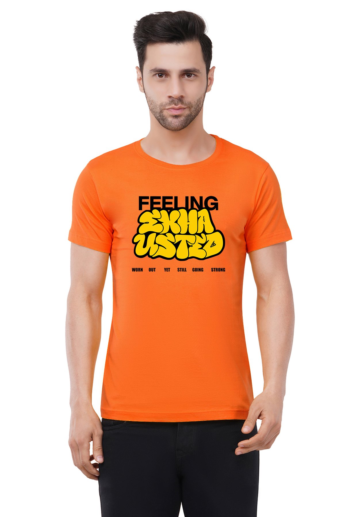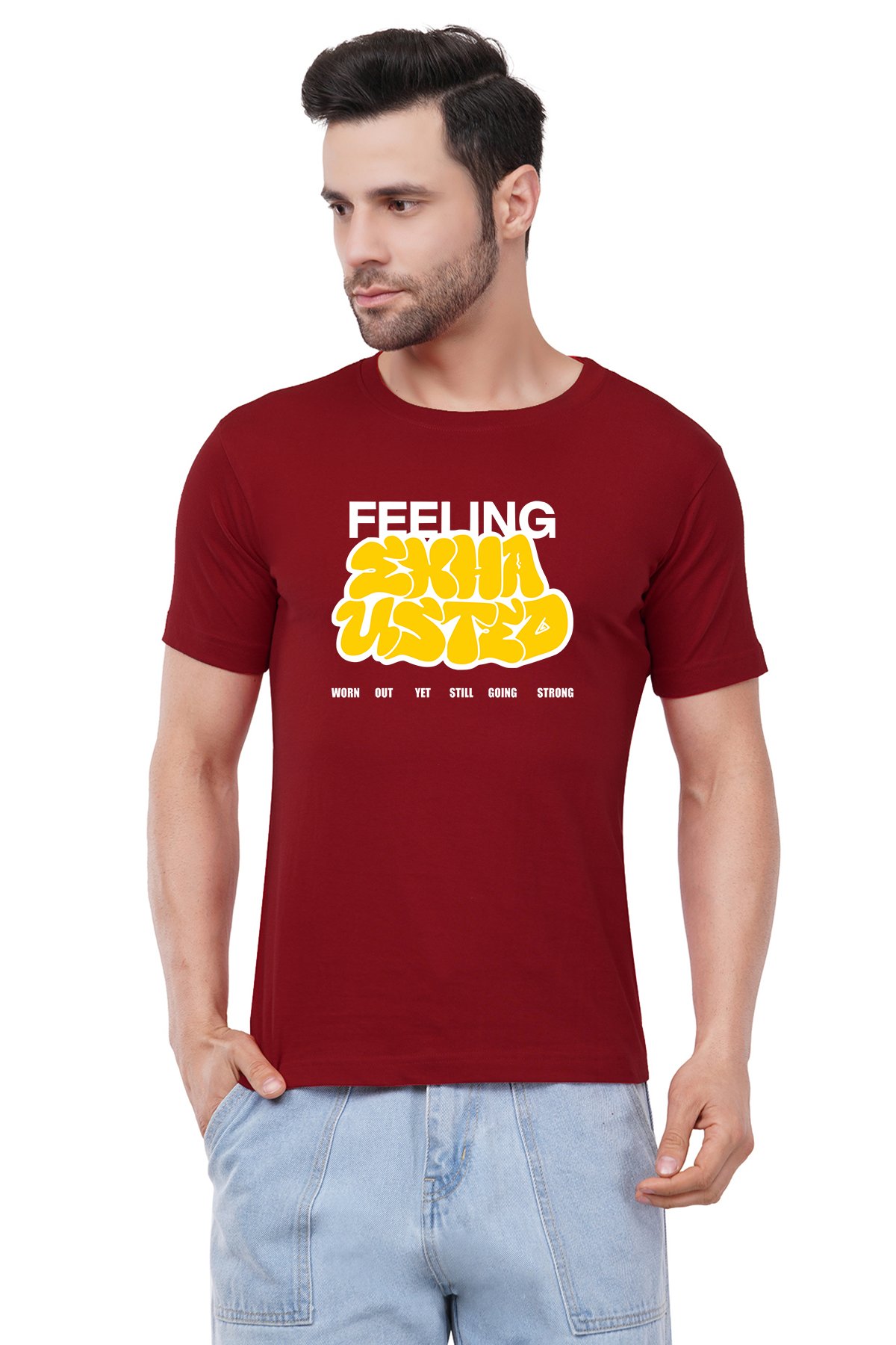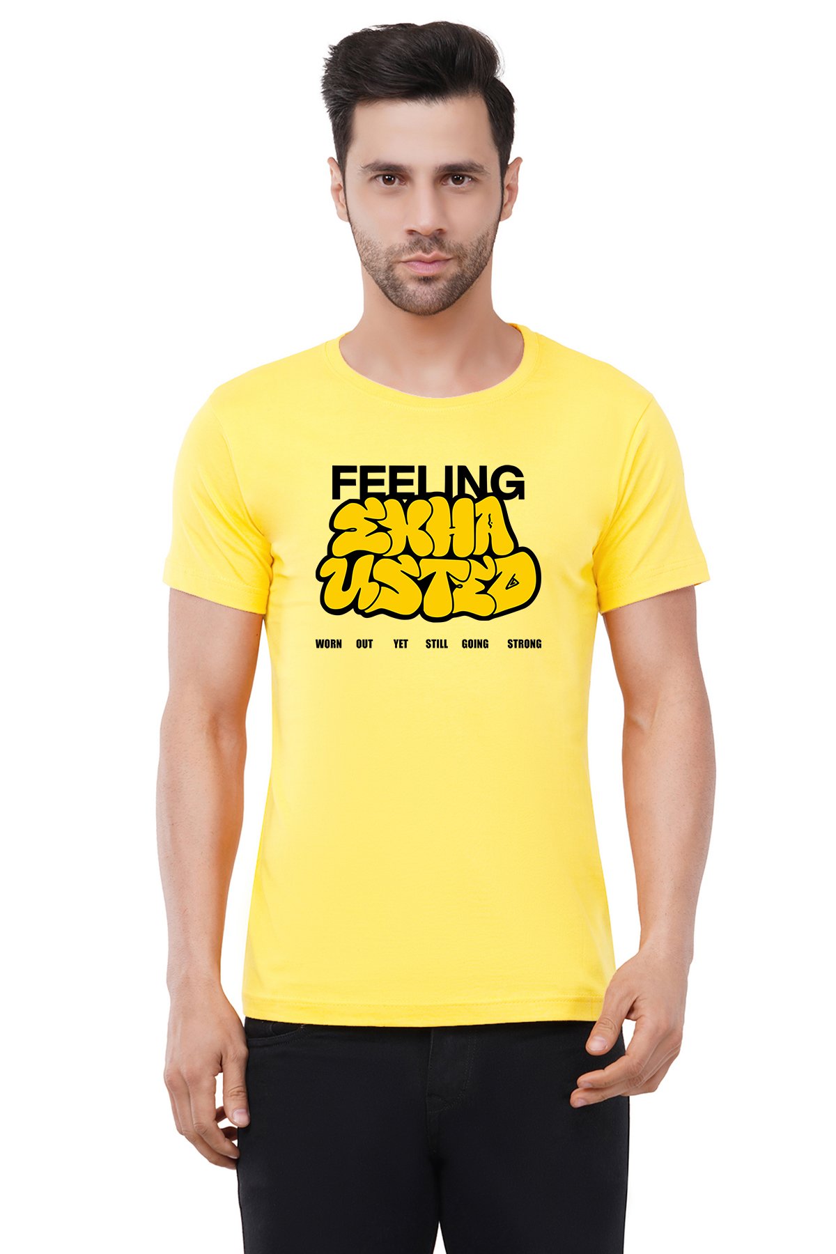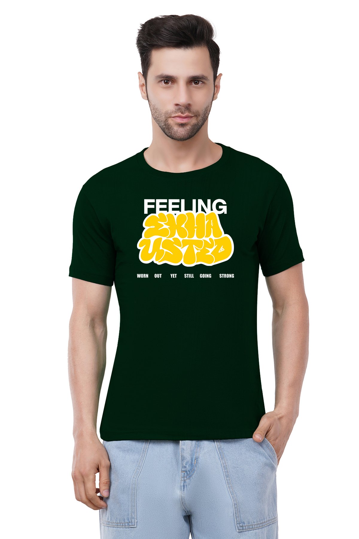 Caseria Men's Cotton Graphic Printed Half Sleeve T-Shirt - Feeling Exhausted