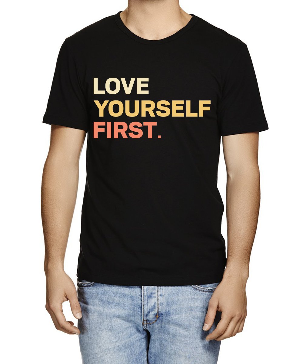 Caseria Men's Cotton Graphic Printed Half Sleeve T-Shirt - First Love Yourself