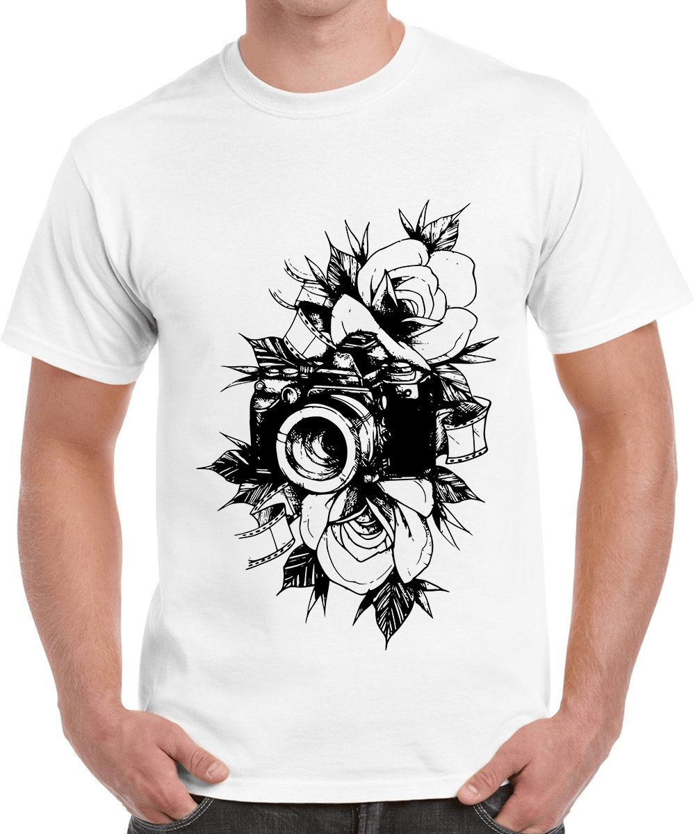 Caseria Men's Cotton Graphic Printed Half Sleeve T-Shirt - Flower Camera