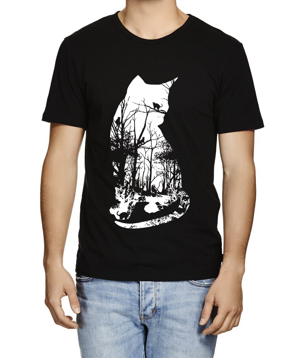 Caseria Men's Cotton Graphic Printed Half Sleeve T-Shirt - Forest Cat