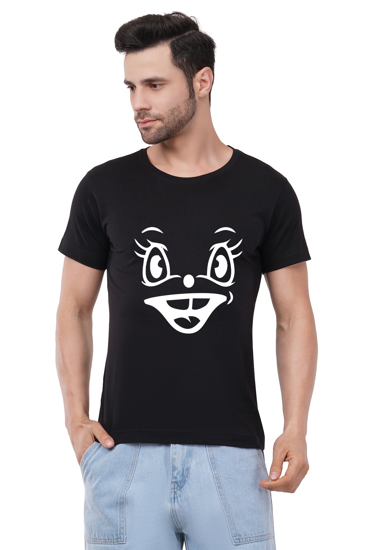 Caseria Men's Cotton Graphic Printed Half Sleeve T-Shirt - Funny Face 2
