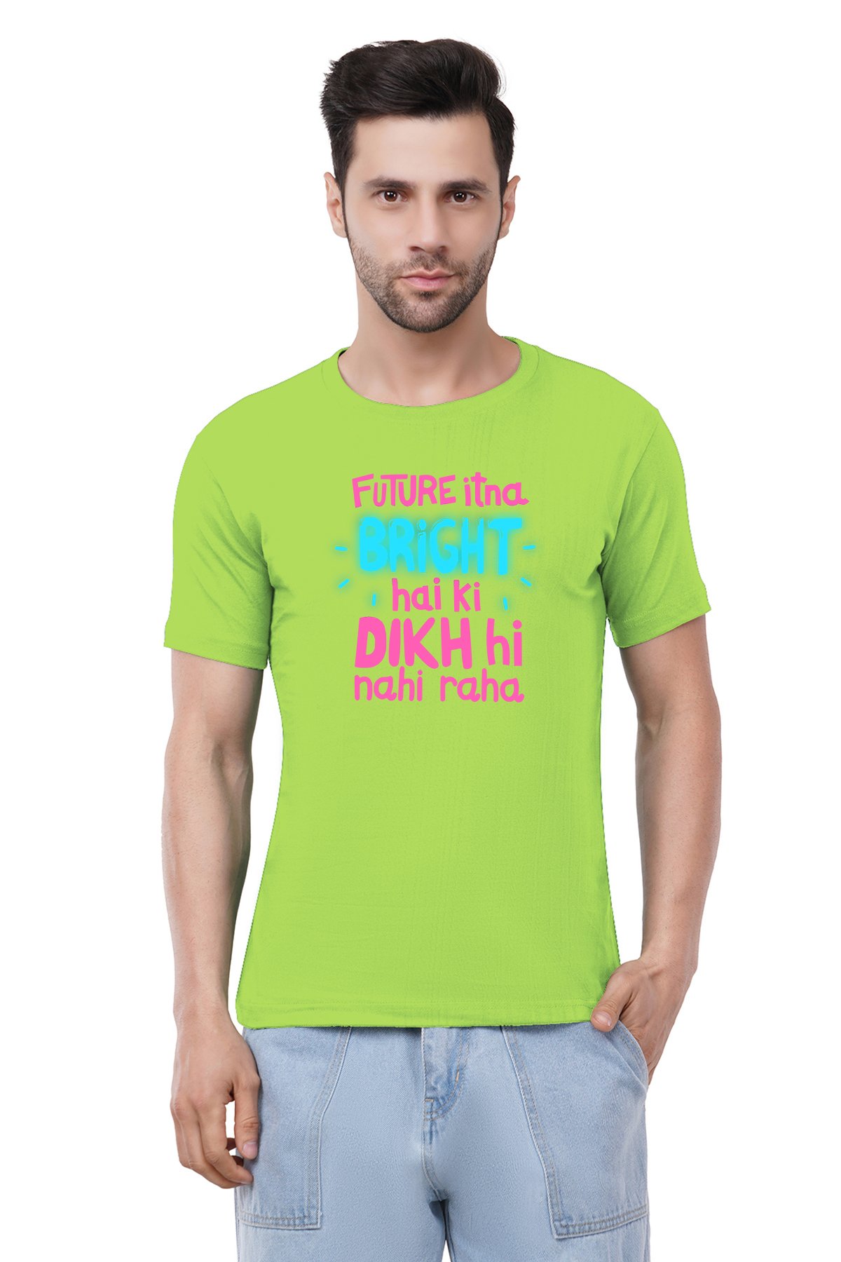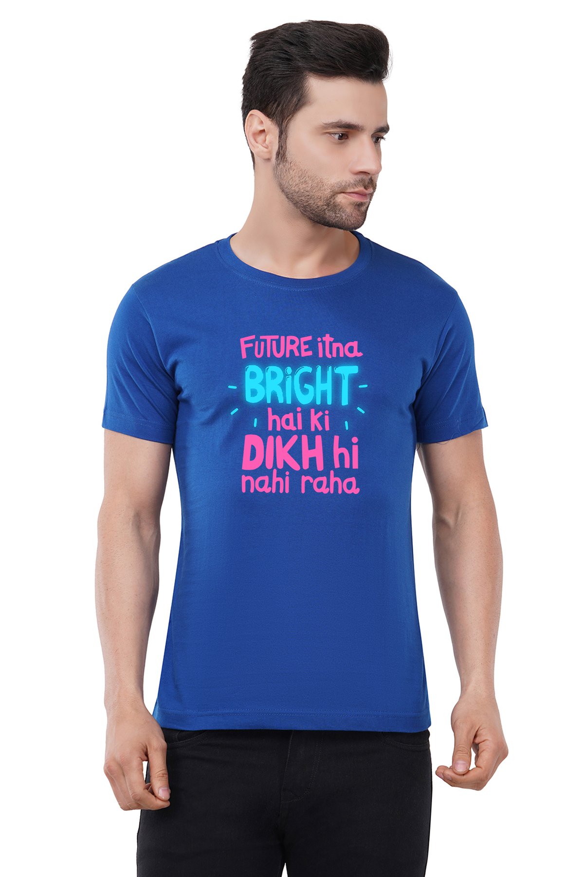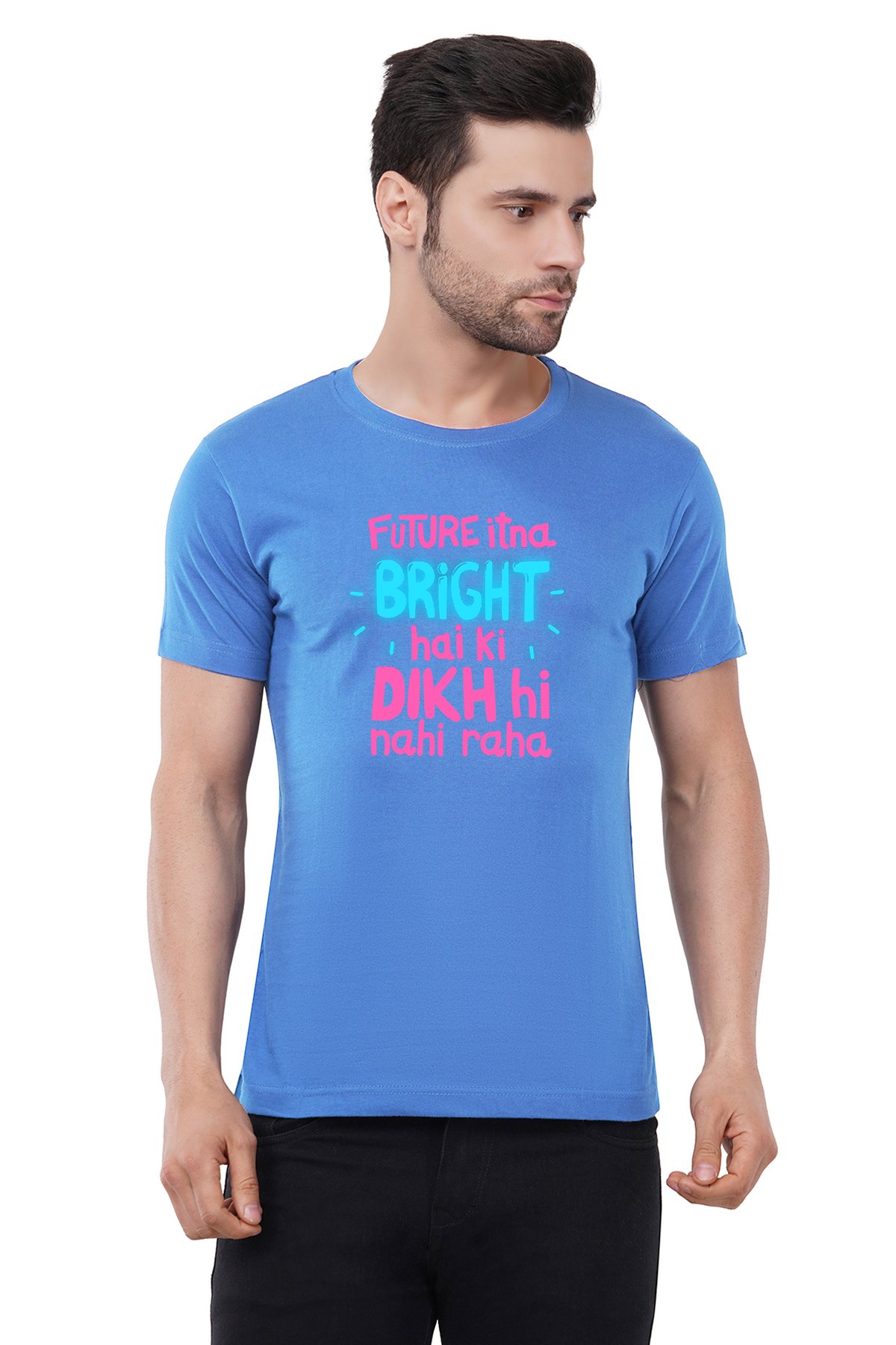 Caseria Men's Cotton Graphic Printed Half Sleeve T-Shirt - Future Itna Bright
