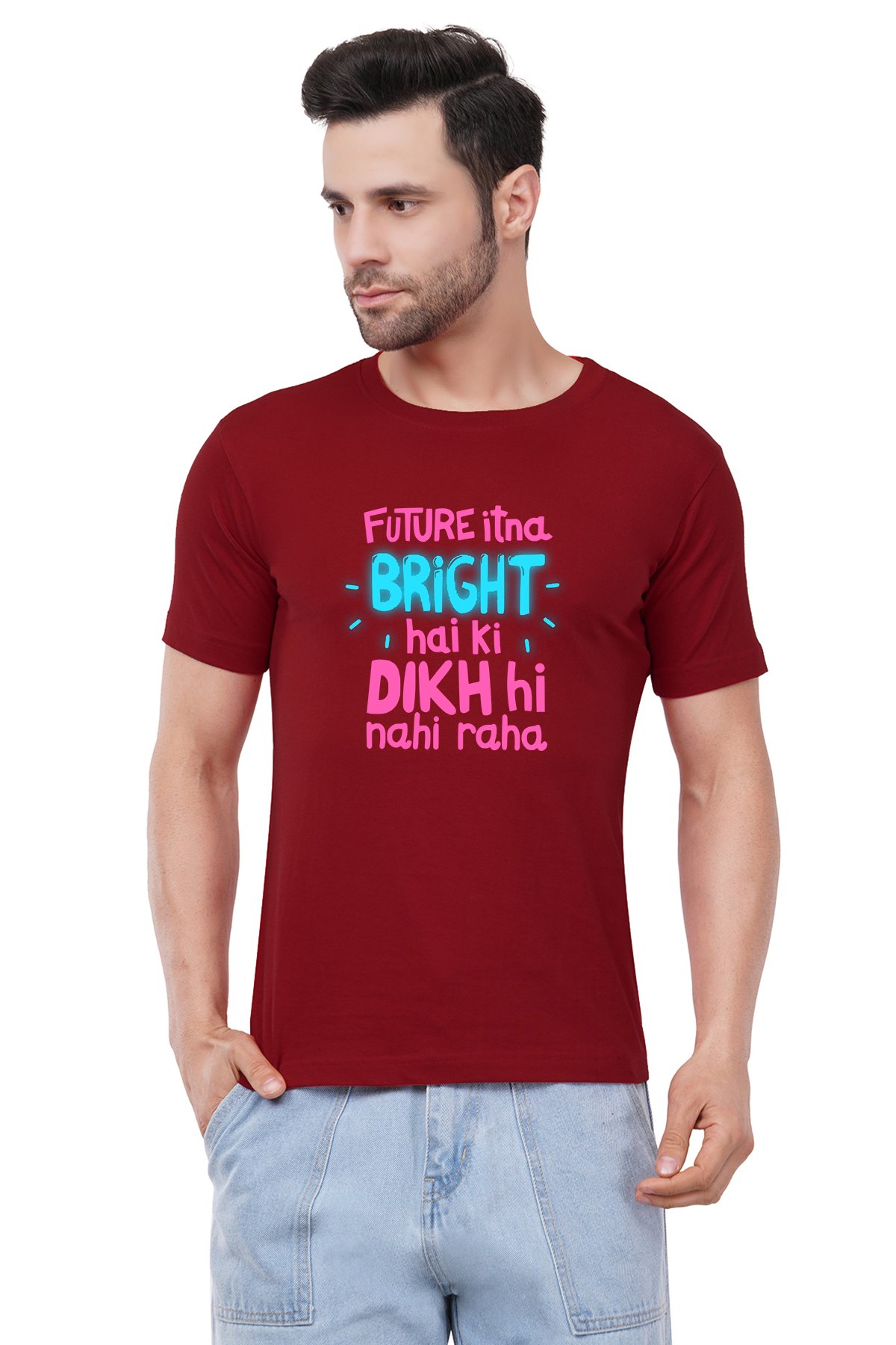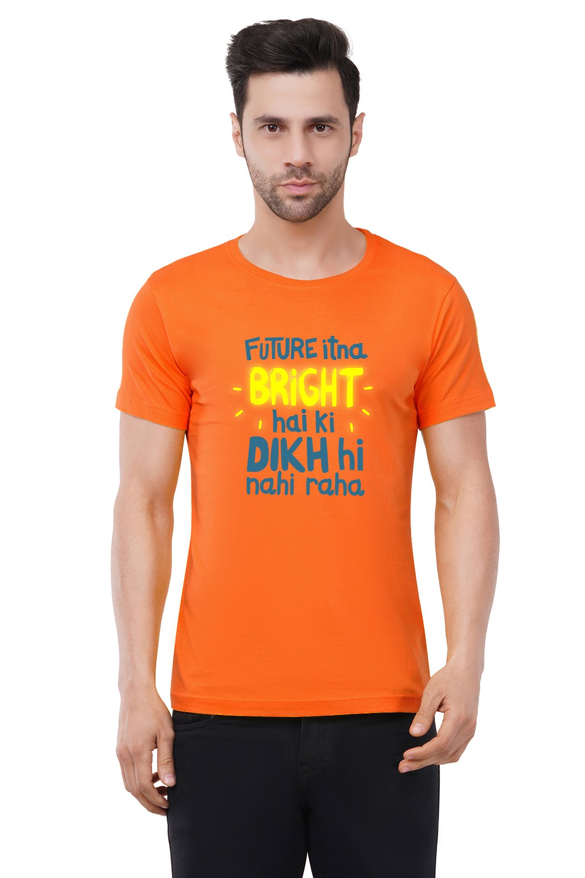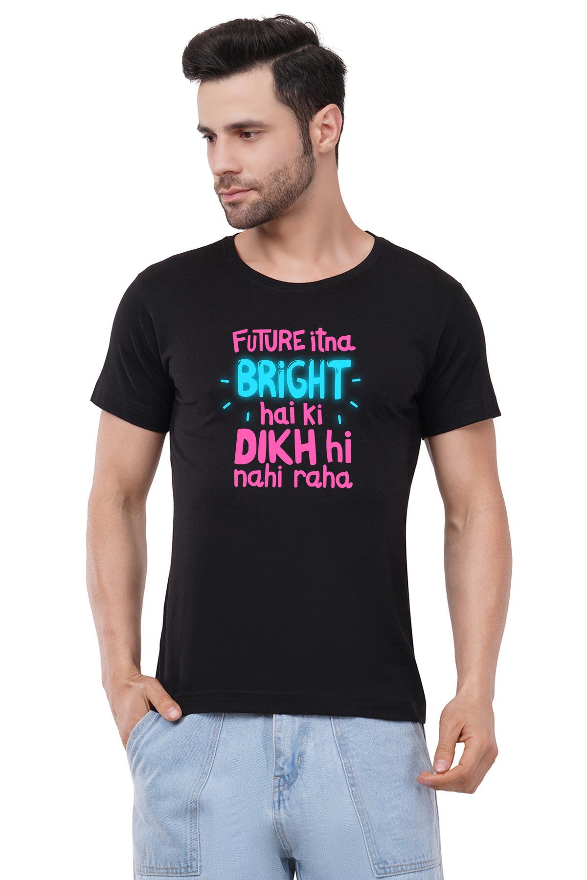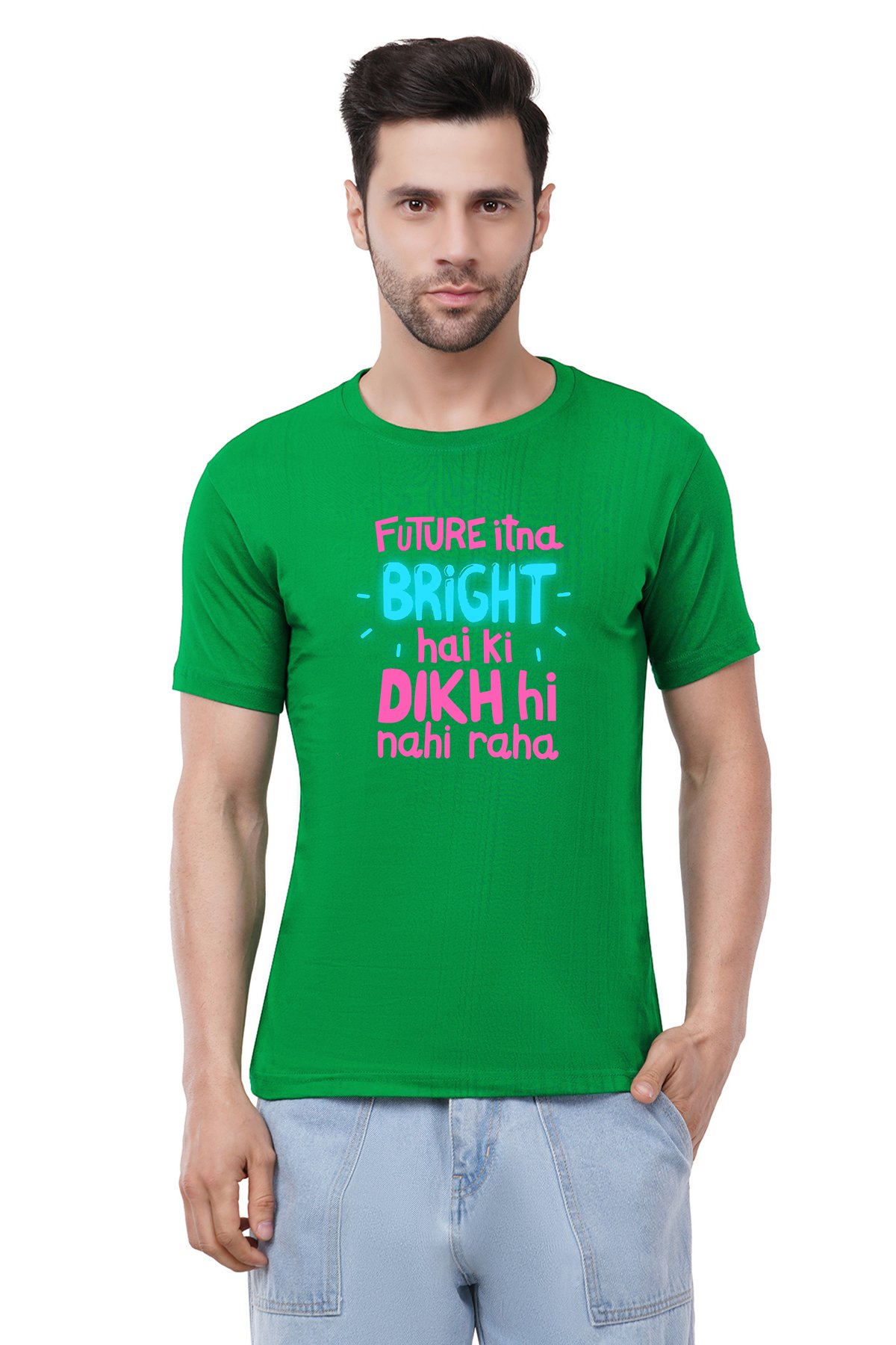 Caseria Men's Cotton Graphic Printed Half Sleeve T-Shirt - Future Itna Bright