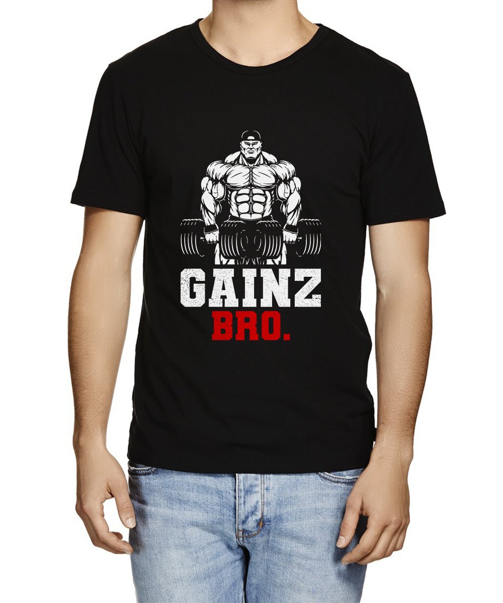 Caseria Men's Cotton Graphic Printed Half Sleeve T-Shirt - Gainz Bro