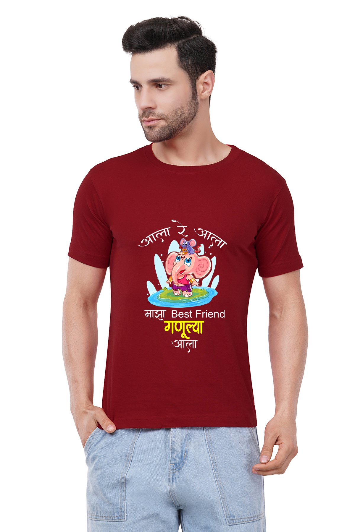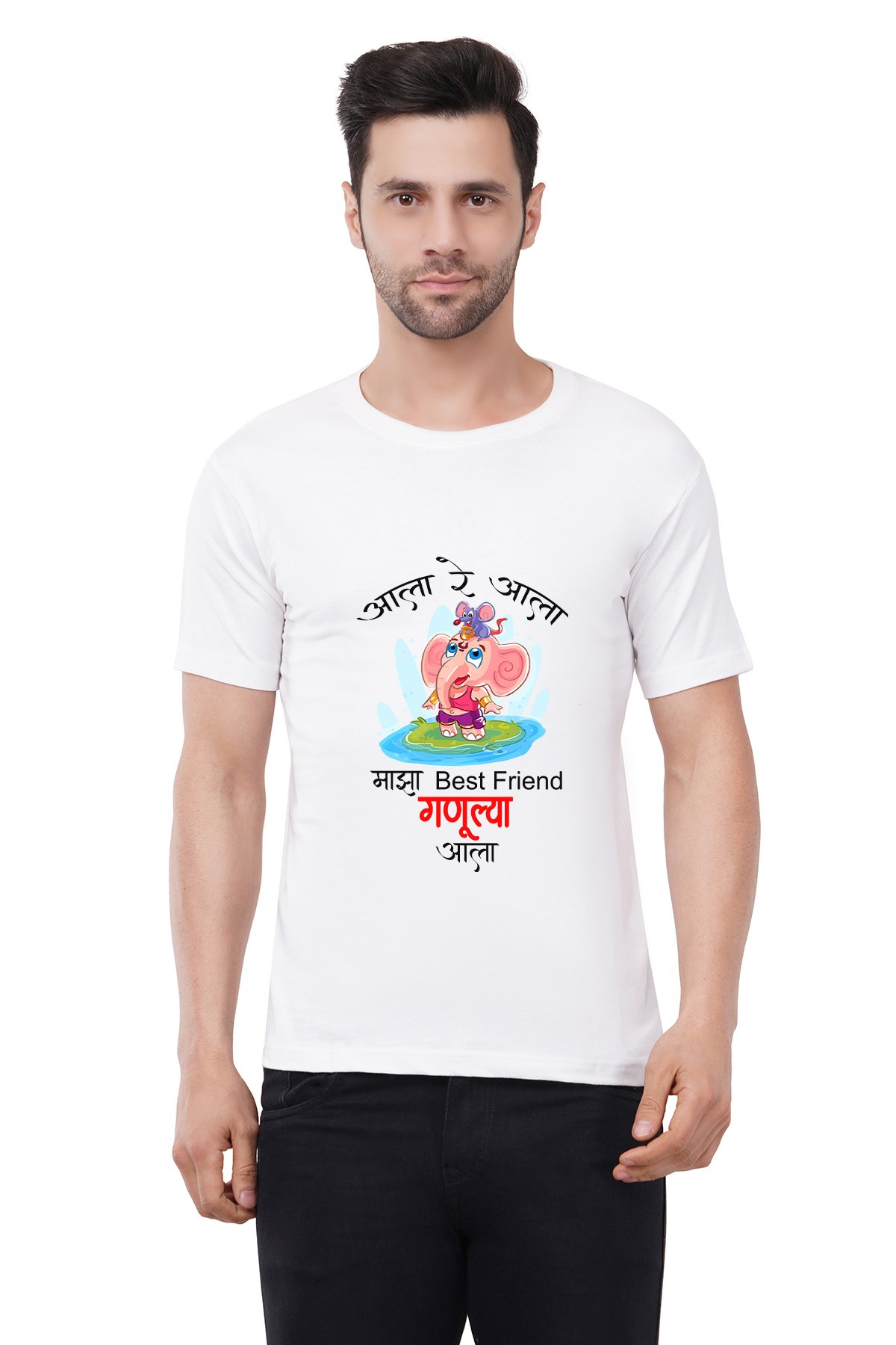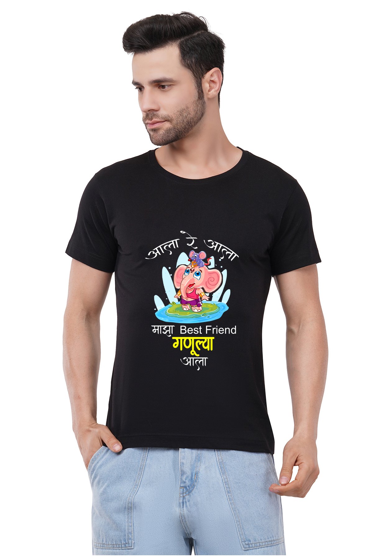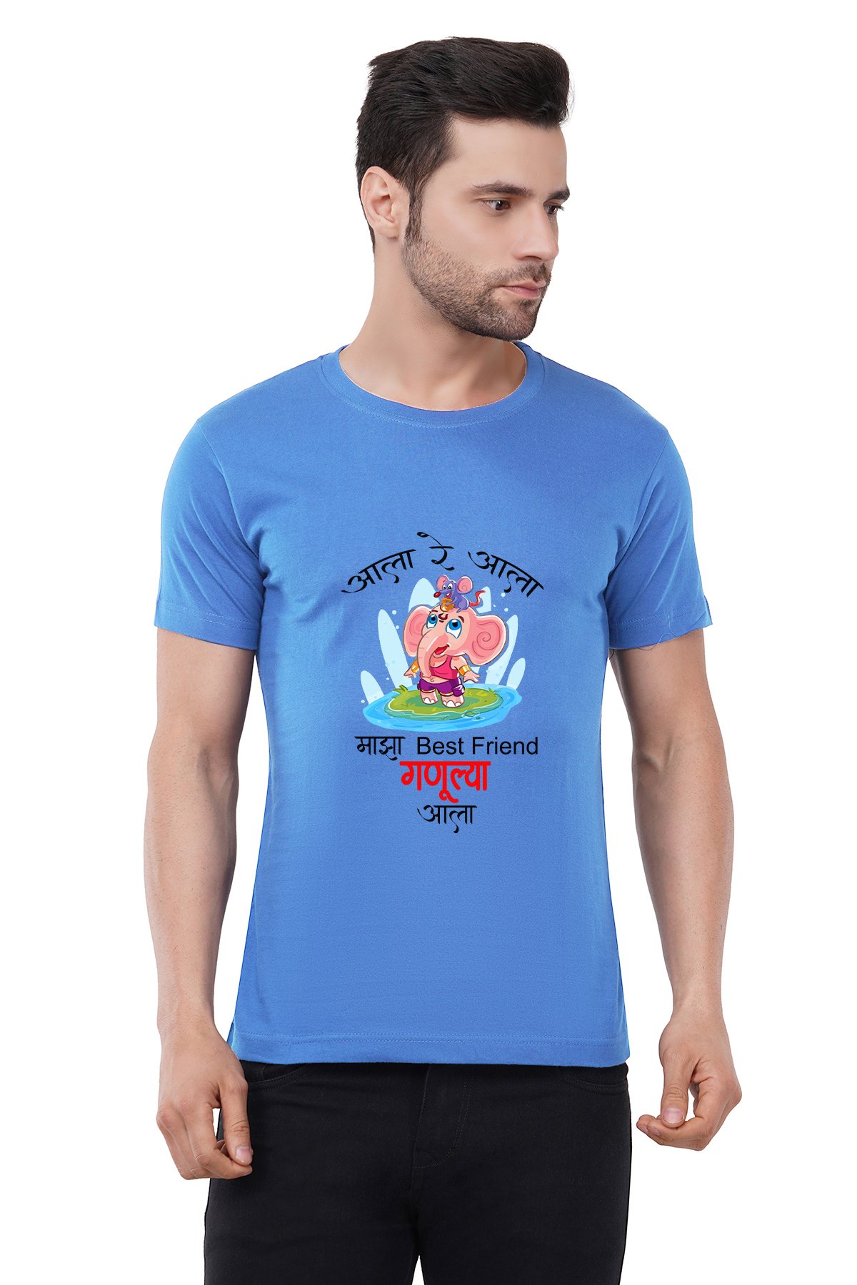 Caseria Men's Cotton Graphic Printed Half Sleeve T-Shirt - Ganulya Aala (Marathi)