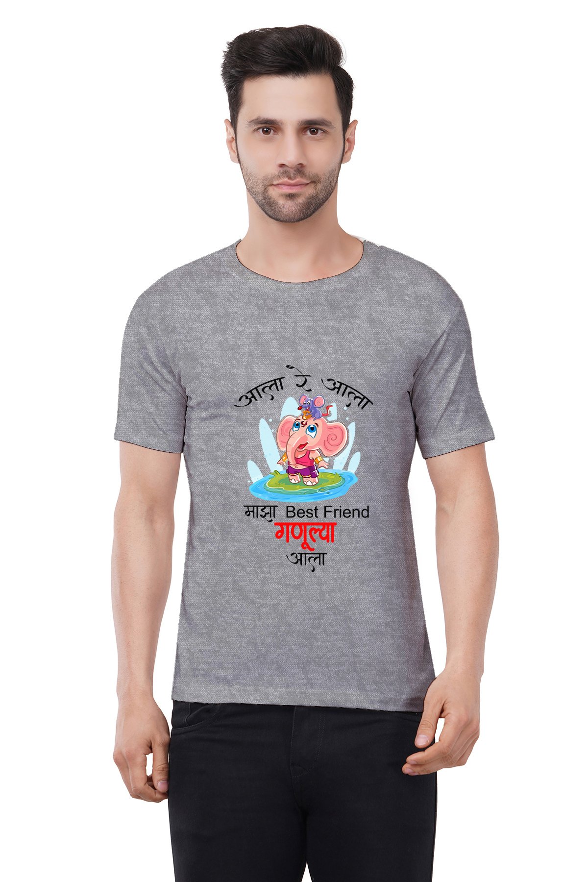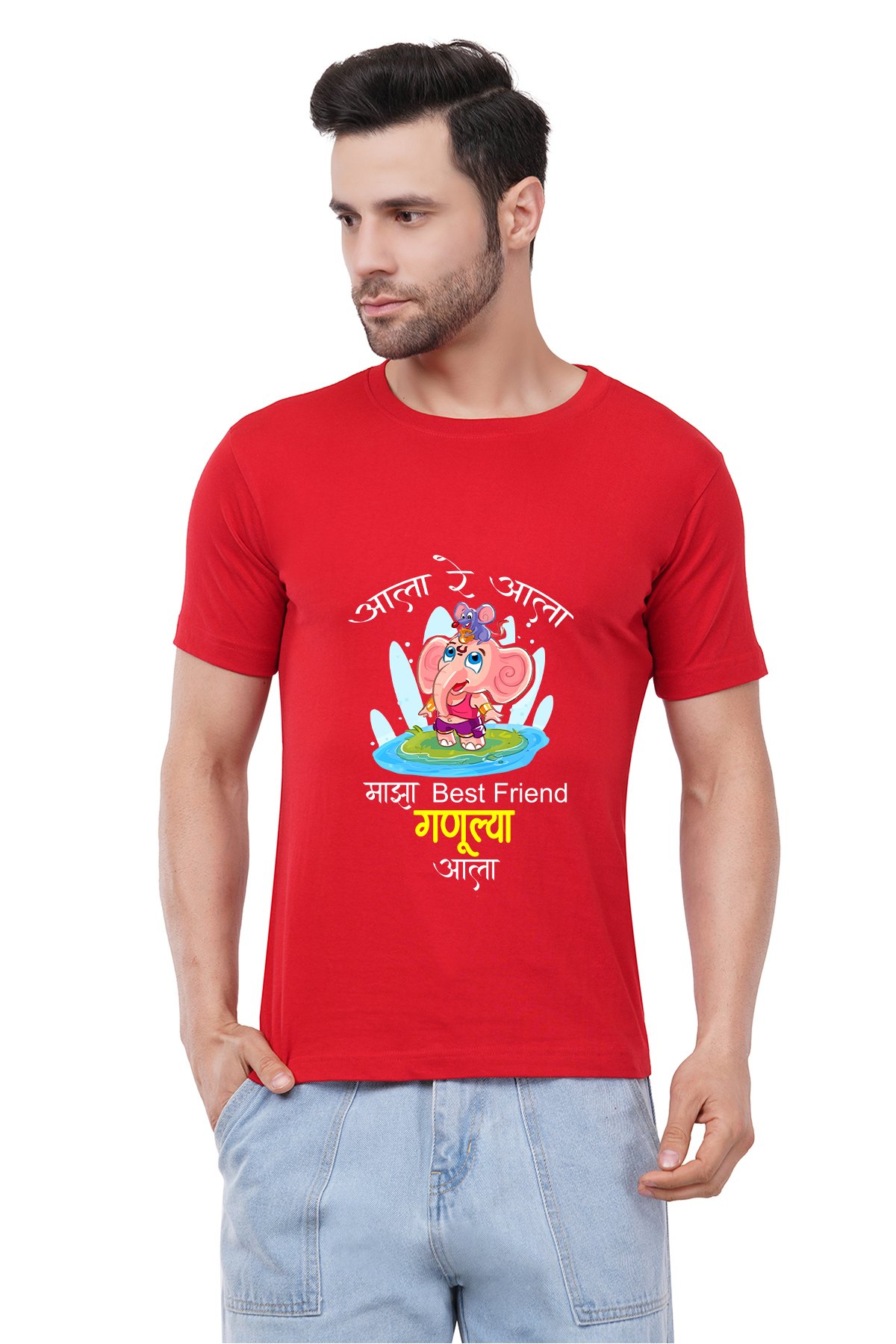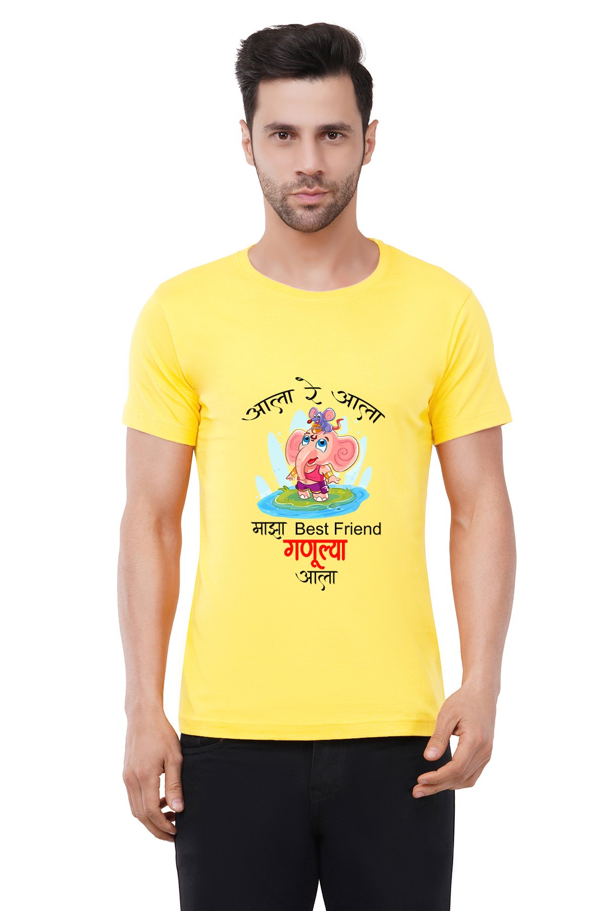 Caseria Men's Cotton Graphic Printed Half Sleeve T-Shirt - Ganulya Aala (Marathi)