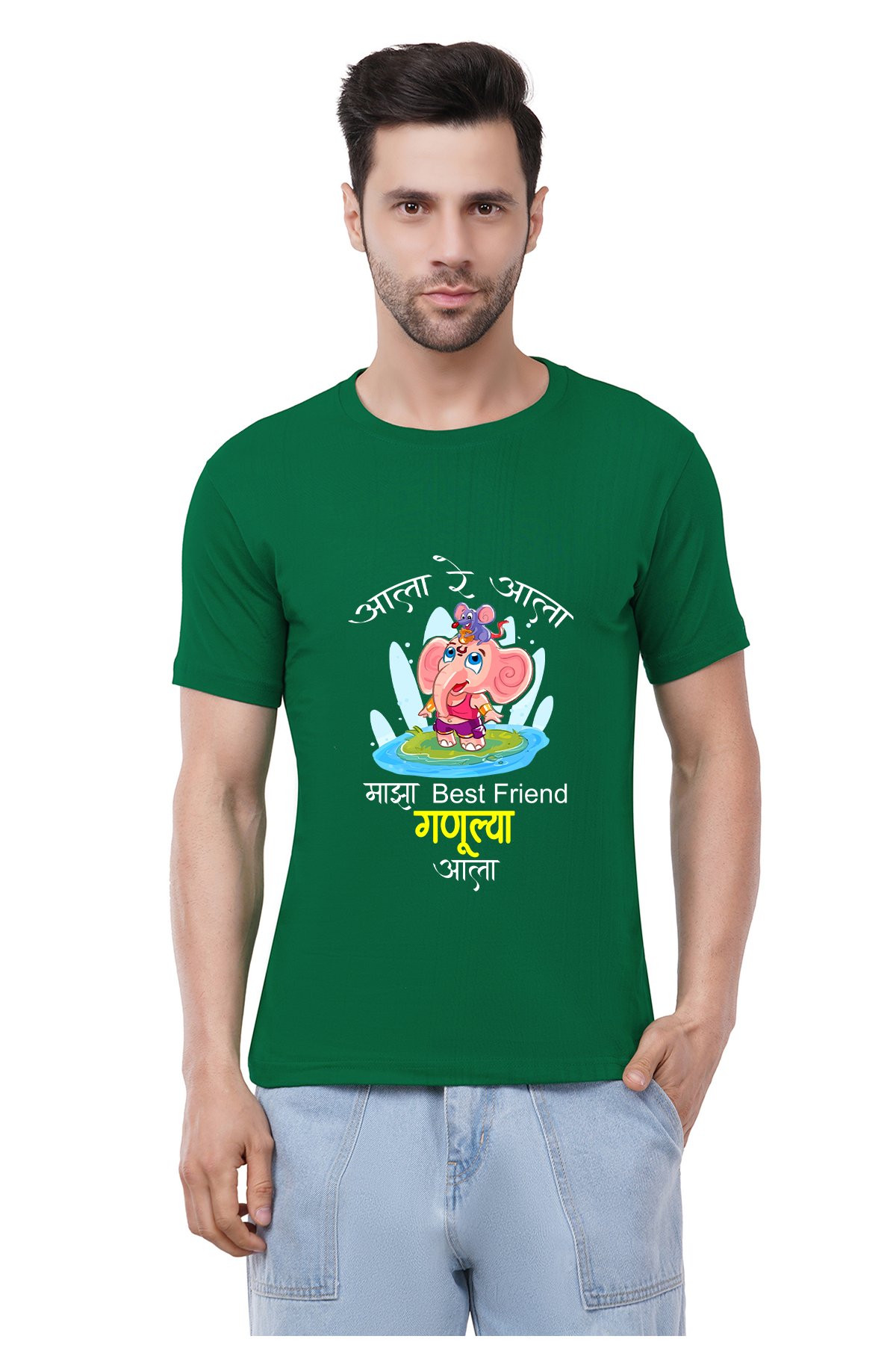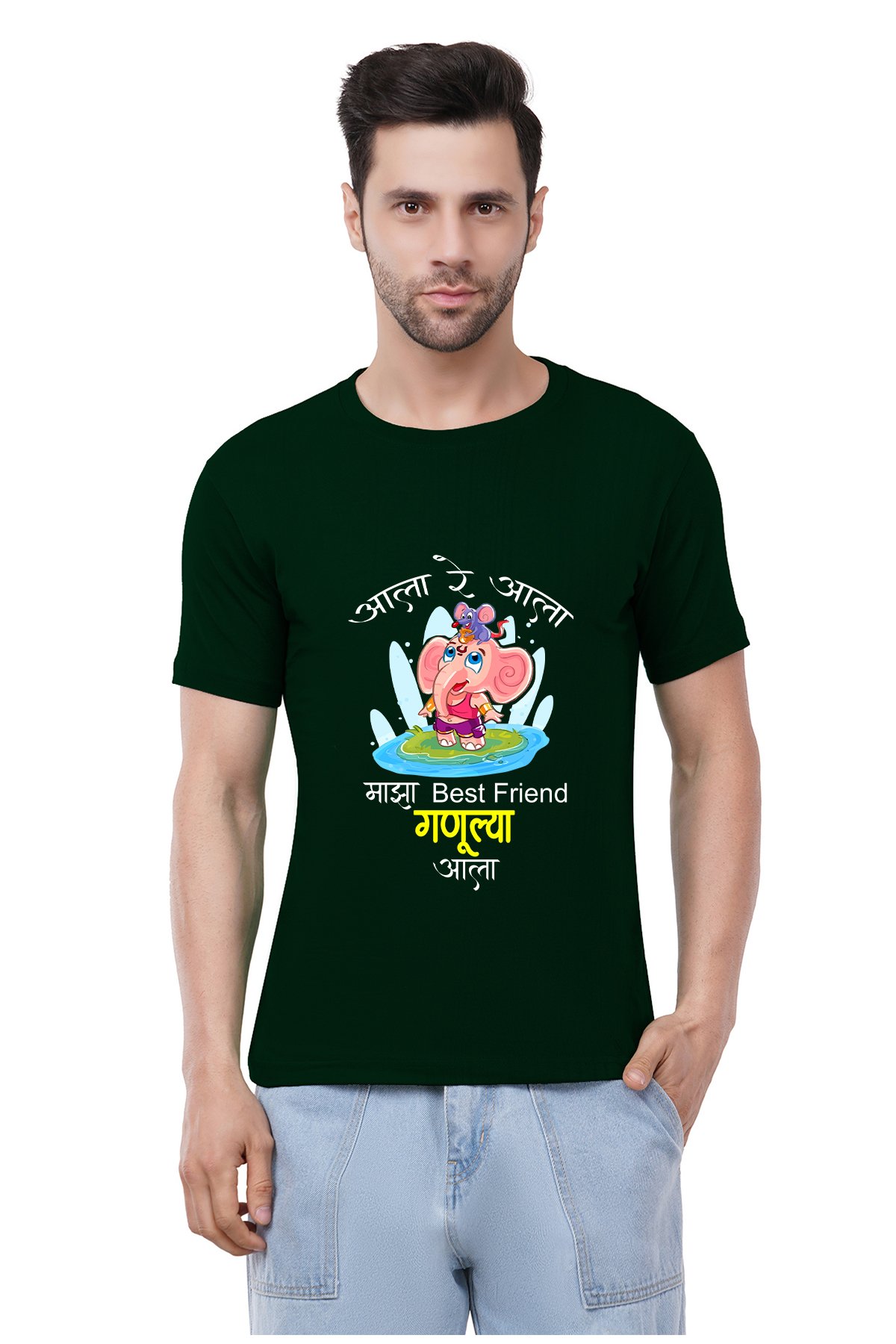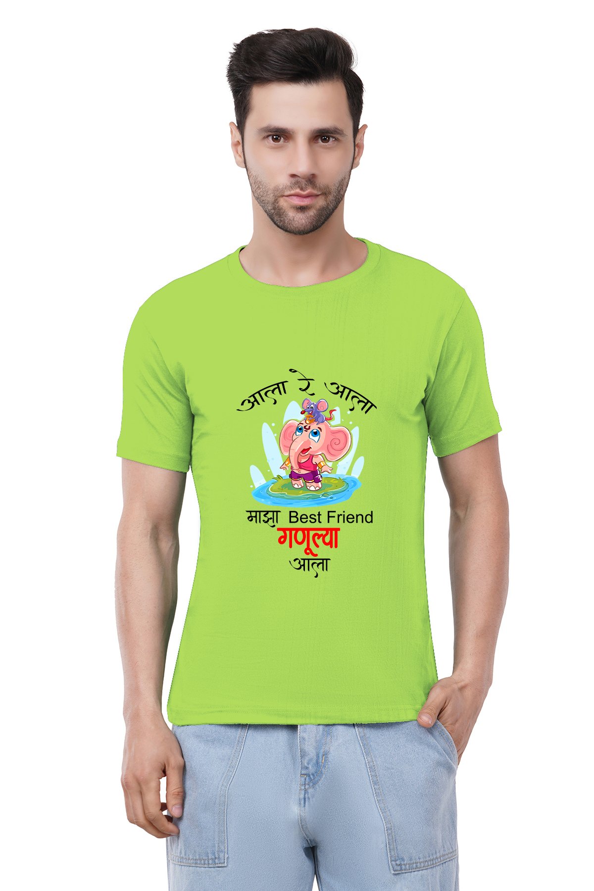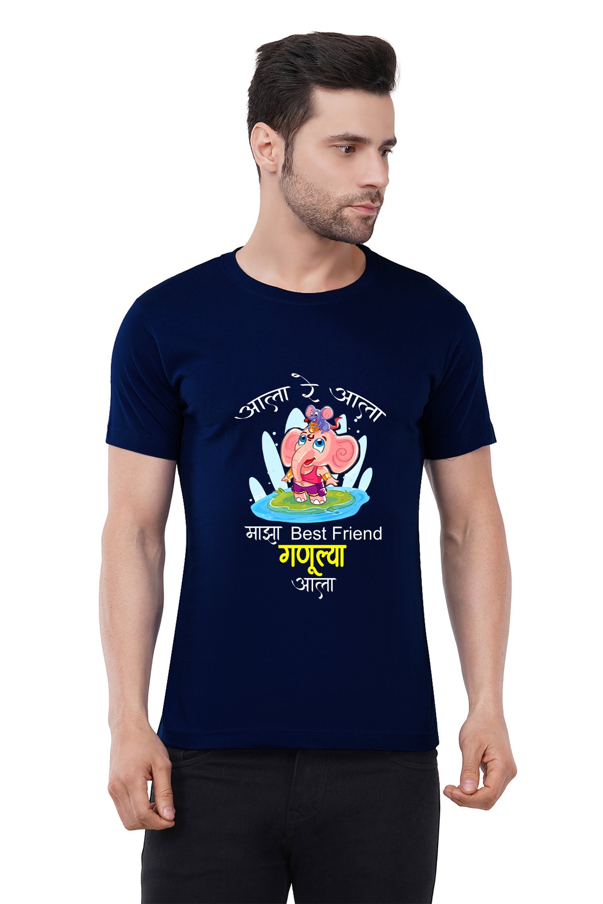 Caseria Men's Cotton Graphic Printed Half Sleeve T-Shirt - Ganulya Aala (Marathi)