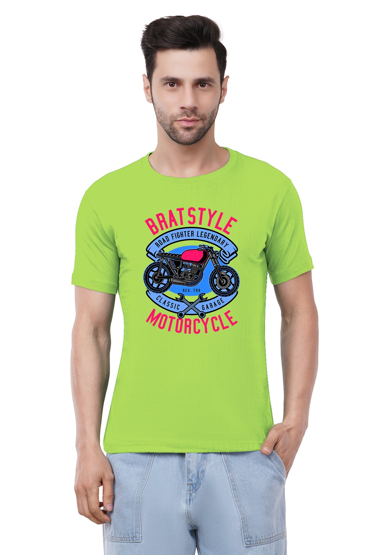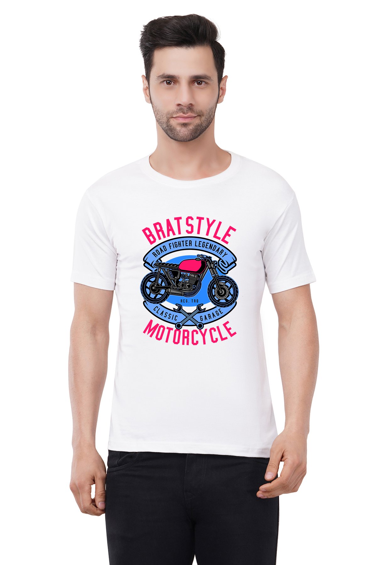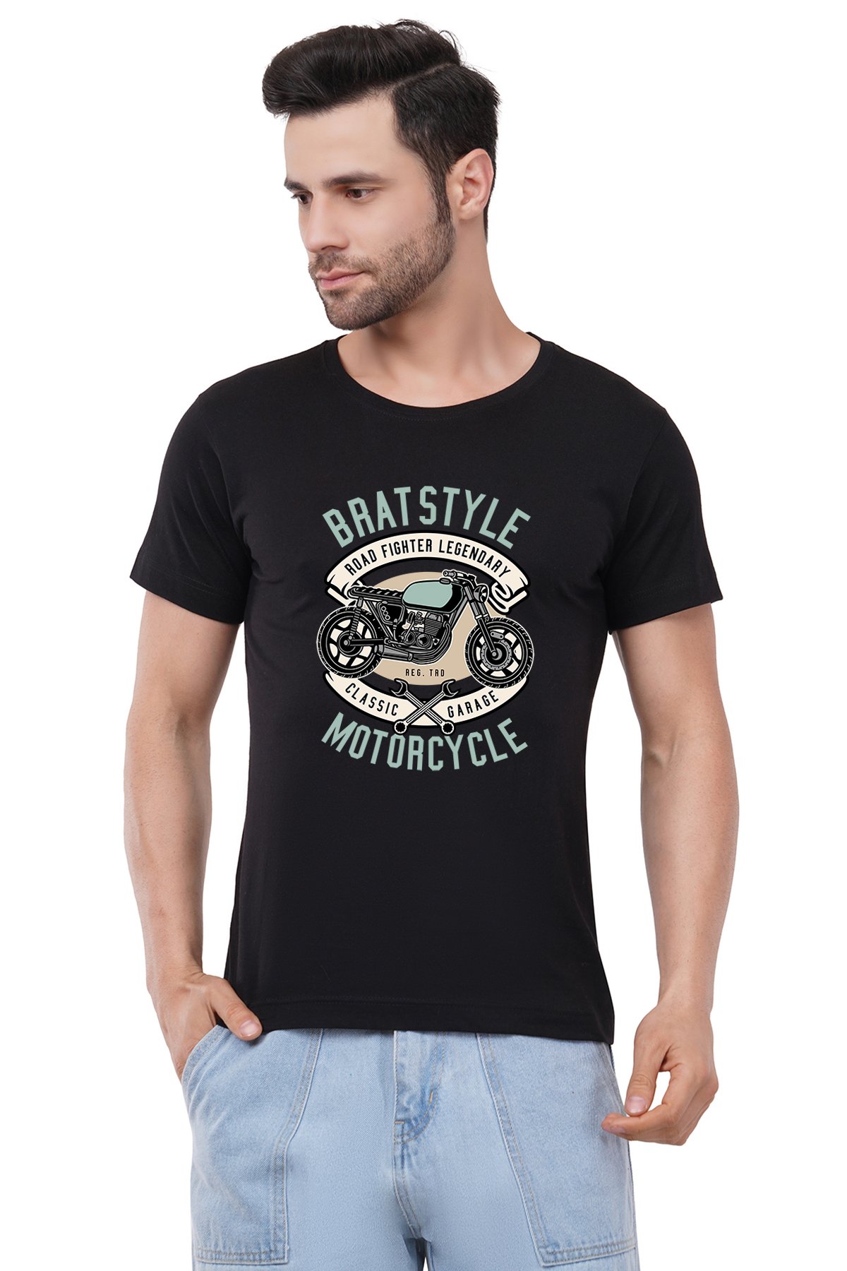 Caseria Men's Cotton Graphic Printed Half Sleeve T-Shirt - Garage Motorcycle
