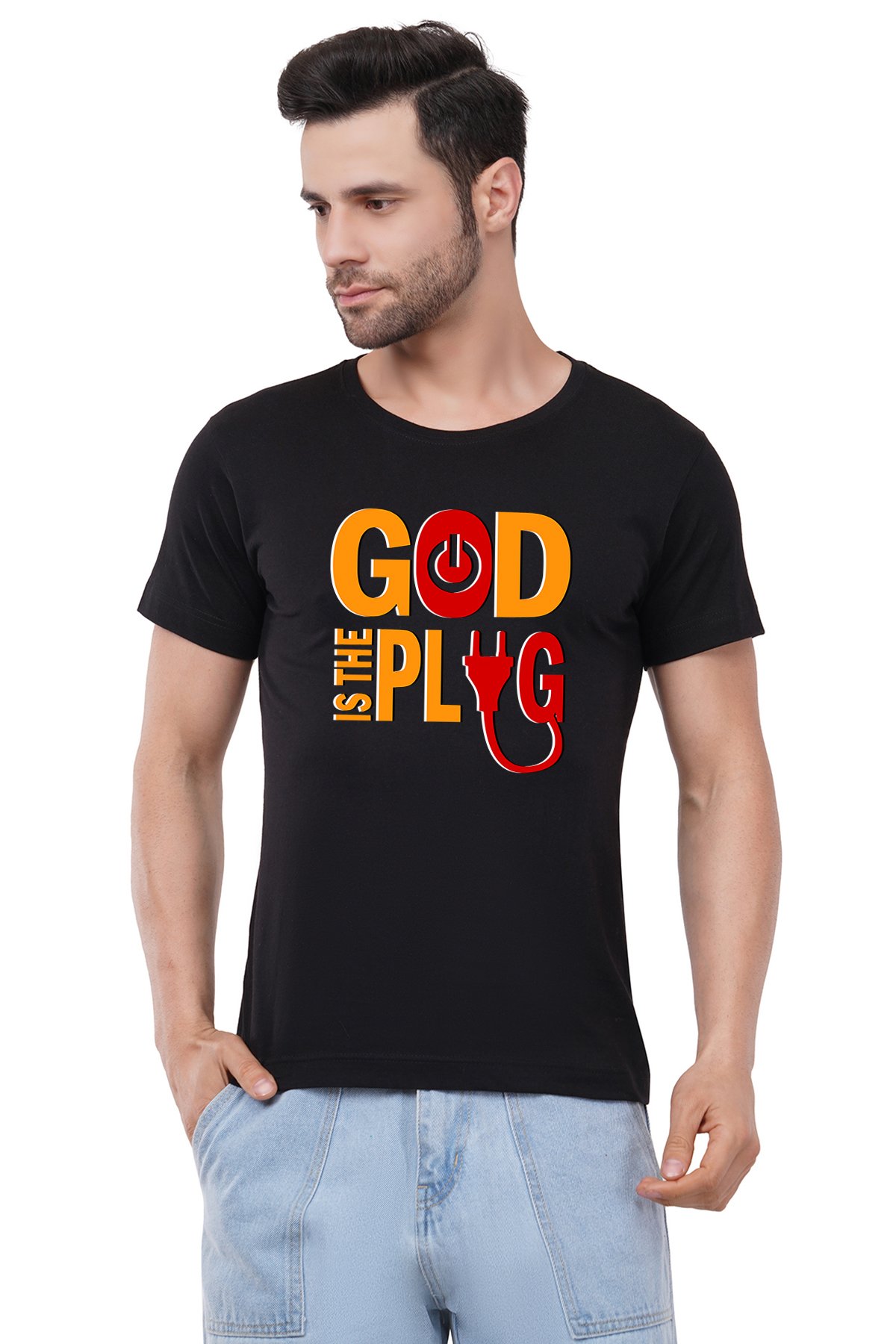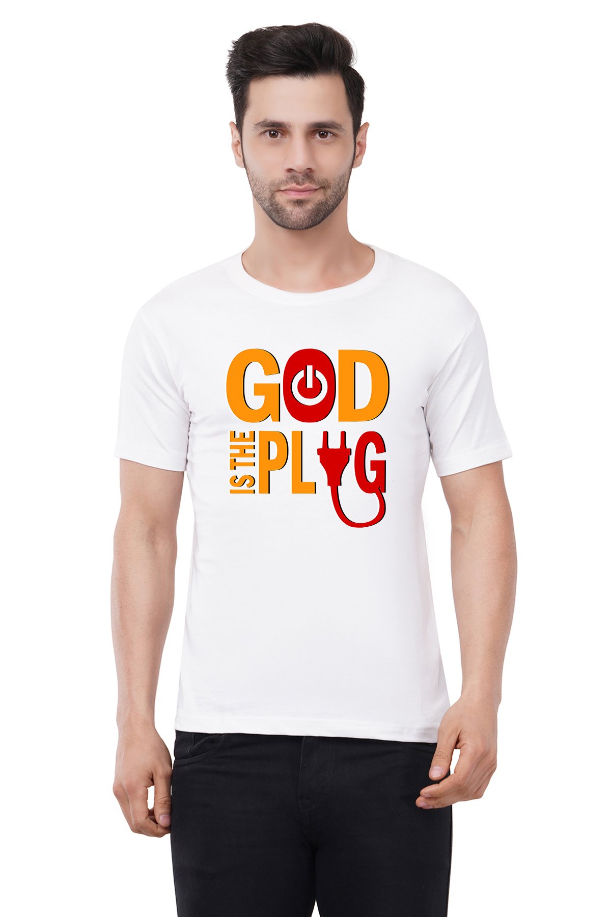 Caseria Men's Cotton Graphic Printed Half Sleeve T-Shirt - God Plug