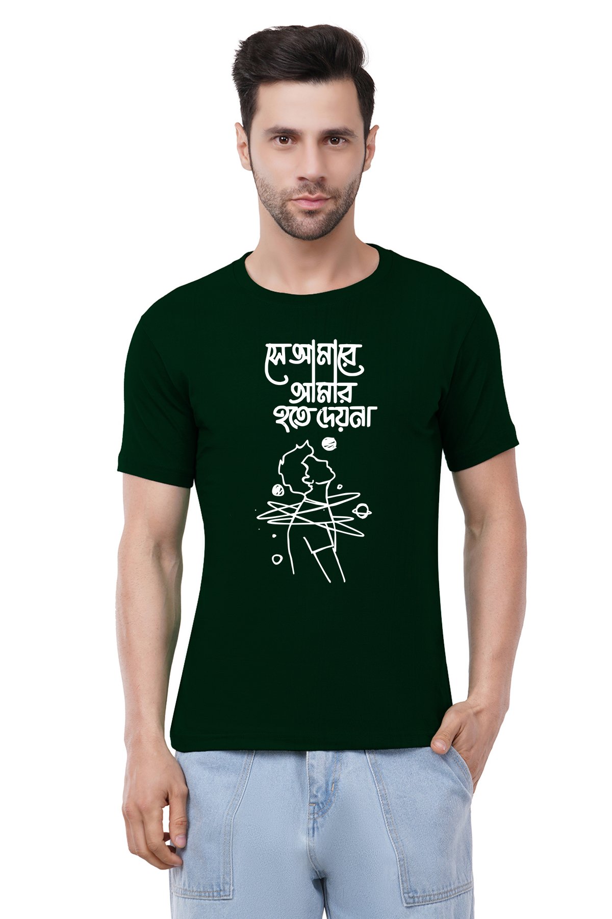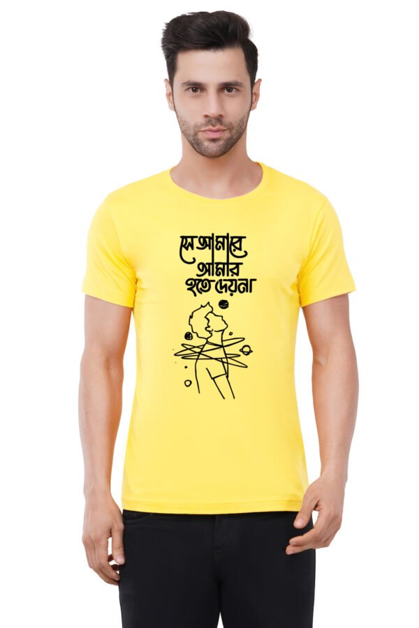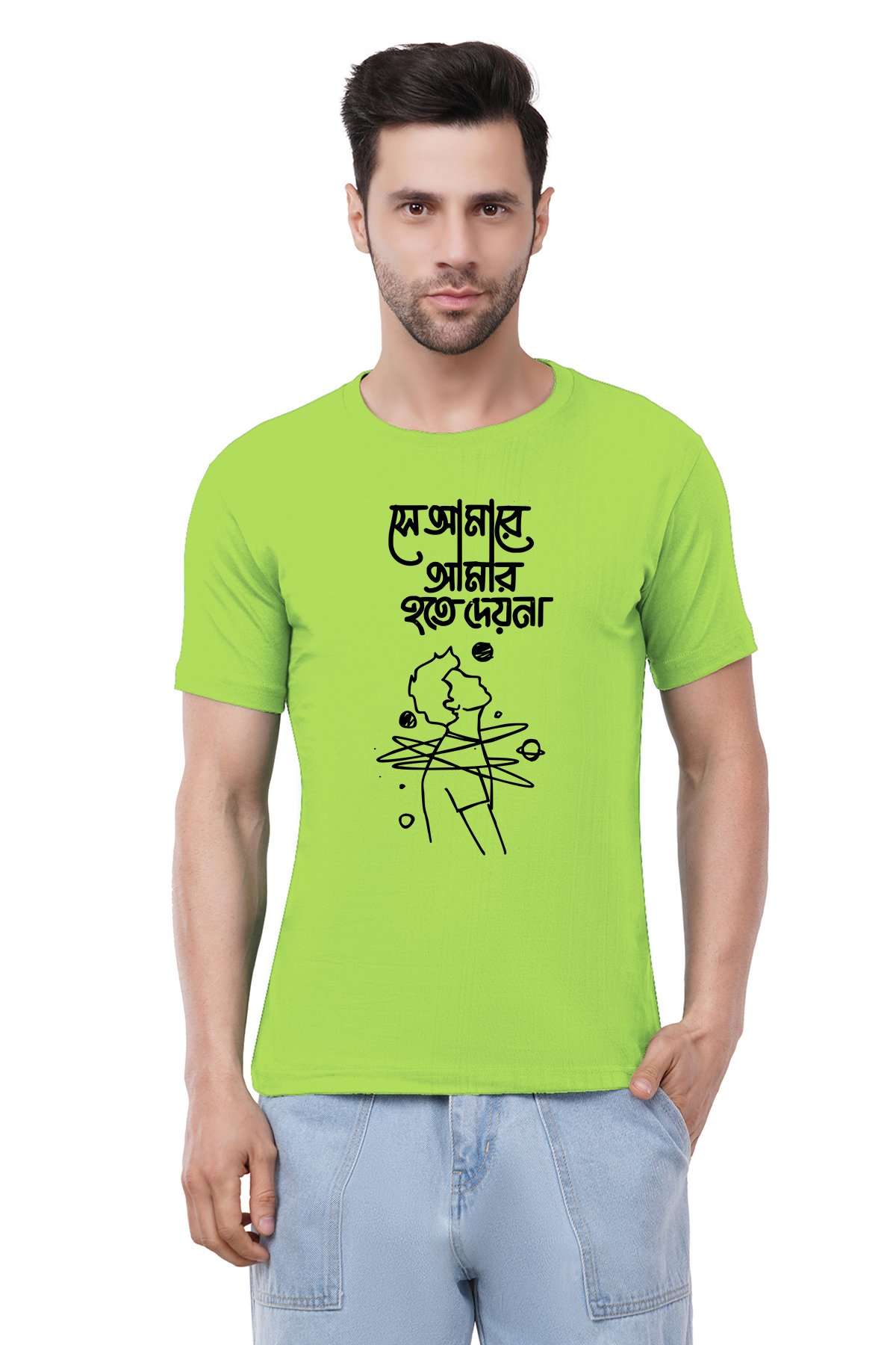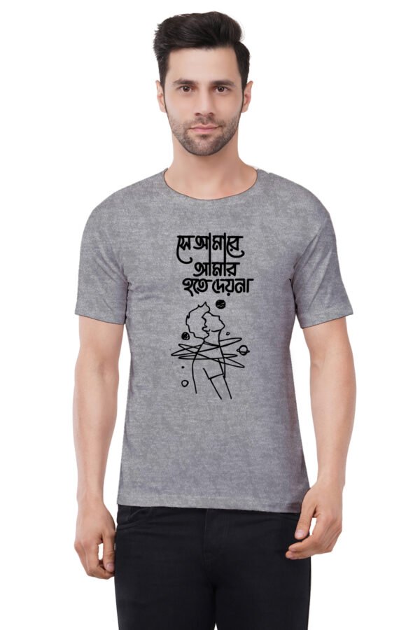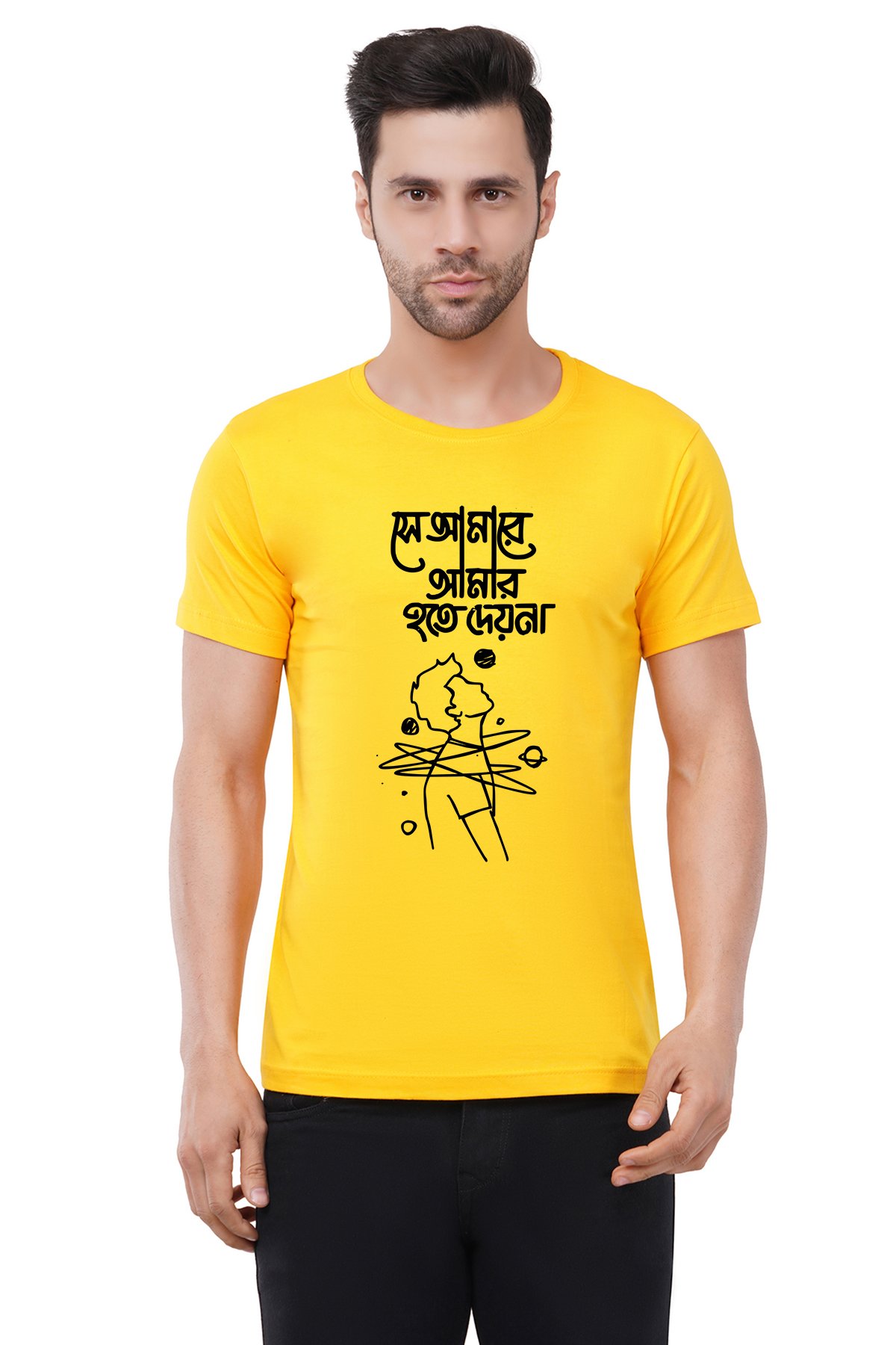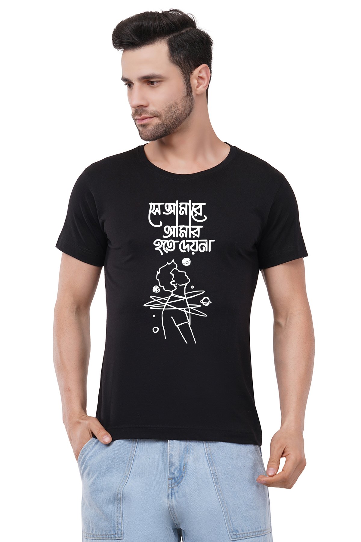 Caseria Men's Cotton Graphic Printed Half Sleeve T-Shirt - He doesn't let me be me Bengali