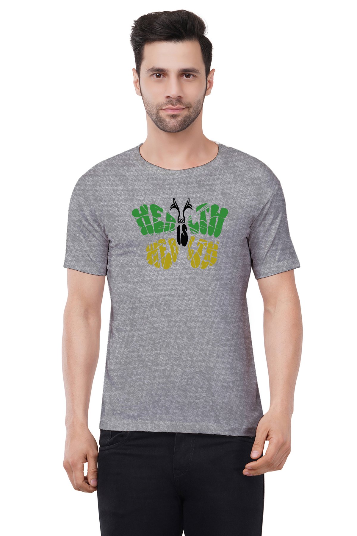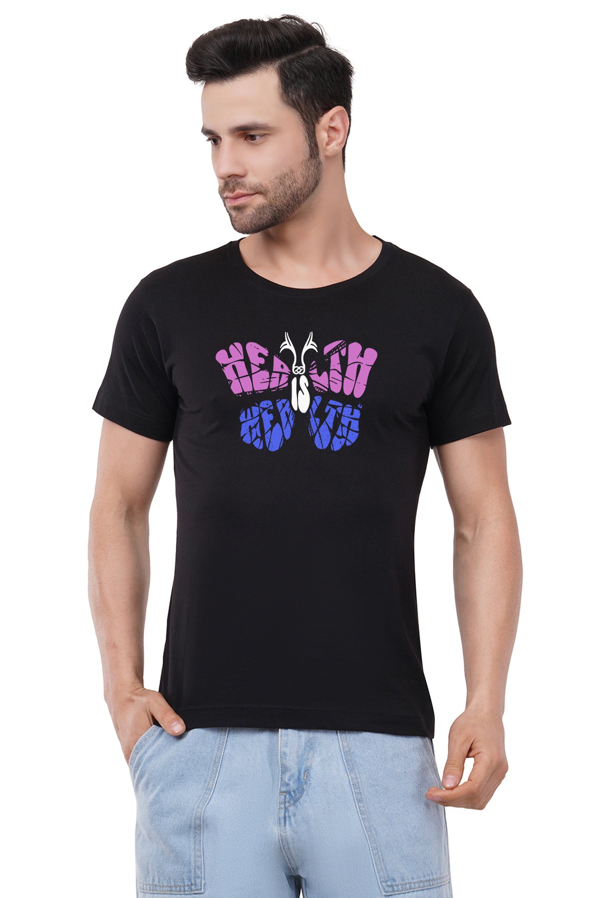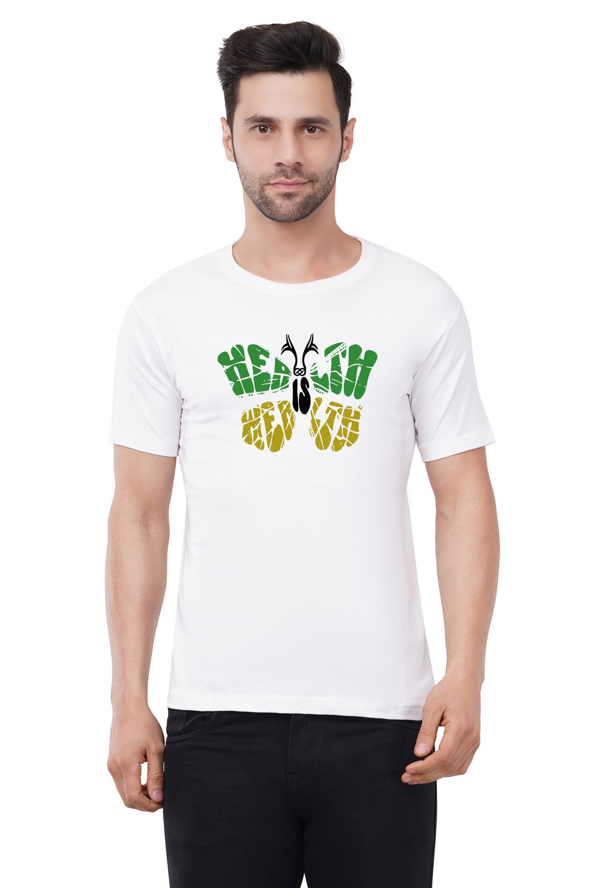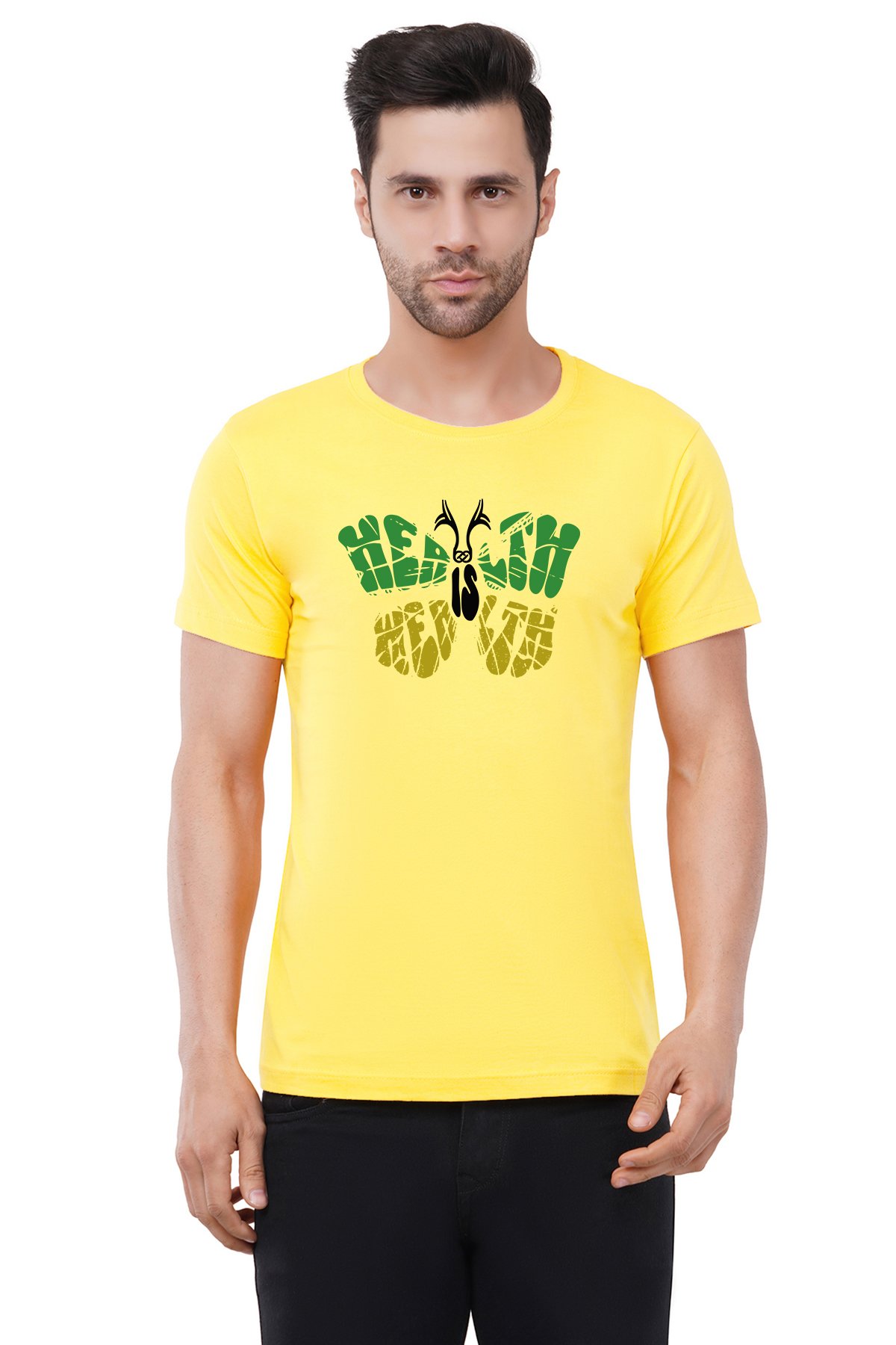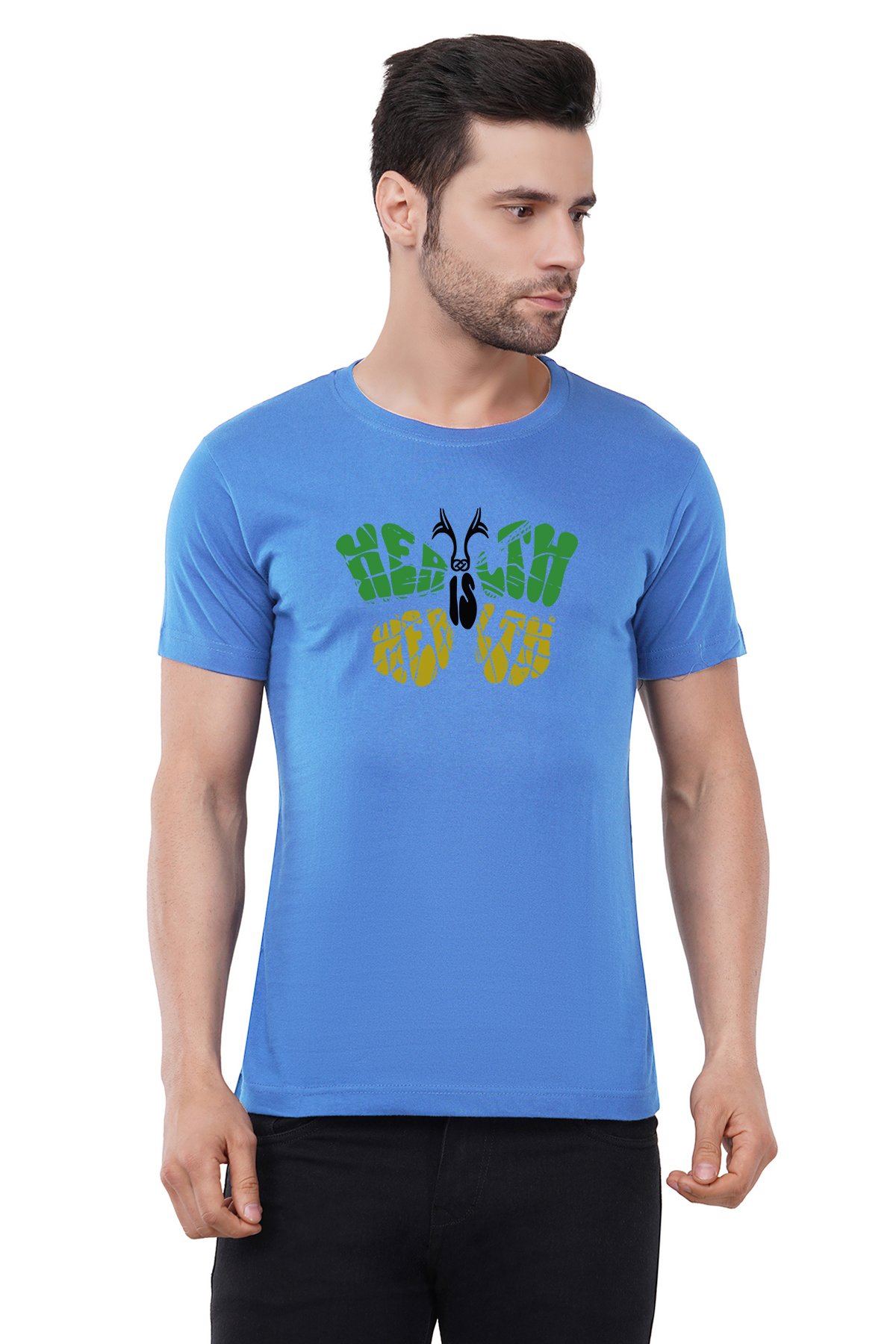 Caseria Men's Cotton Graphic Printed Half Sleeve T-Shirt - Health Is Wealth