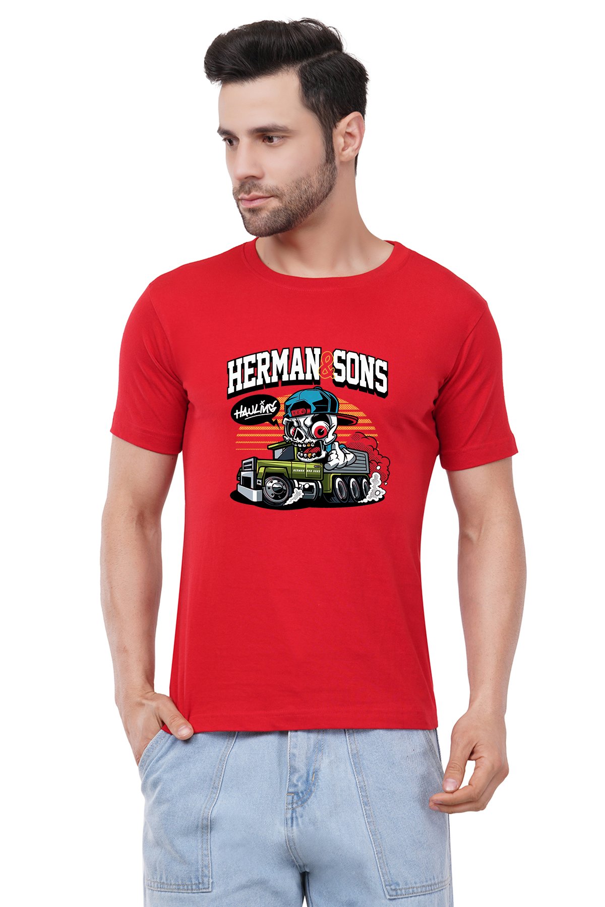 Caseria Men's Cotton Graphic Printed Half Sleeve T-Shirt - Herman And Sons