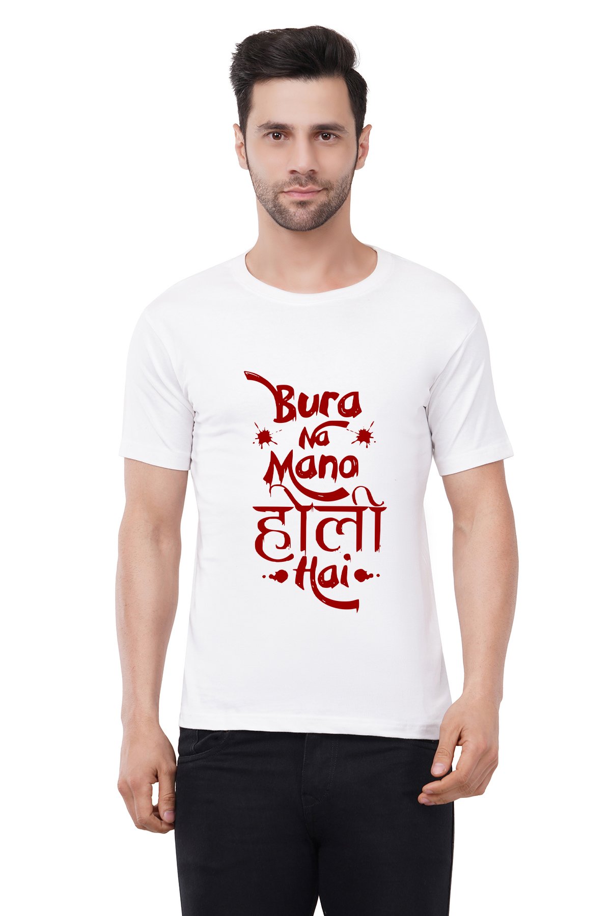 Caseria Men's Cotton Graphic Printed Half Sleeve T-Shirt - Holi Hai
