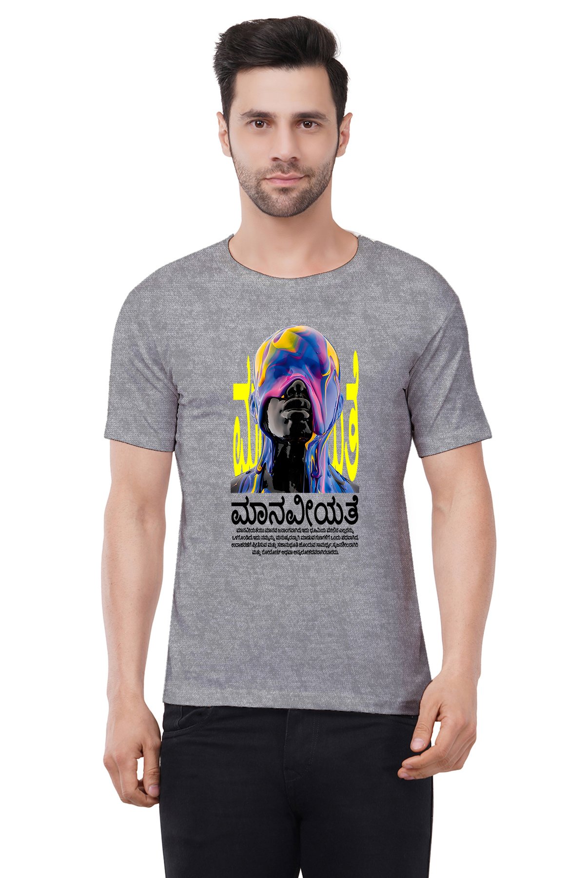 Caseria Men's Cotton Graphic Printed Half Sleeve T-Shirt - Humanity Kannada