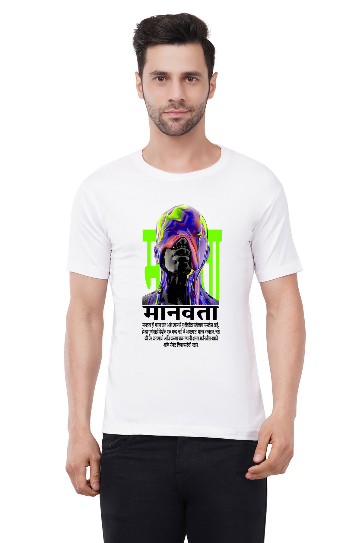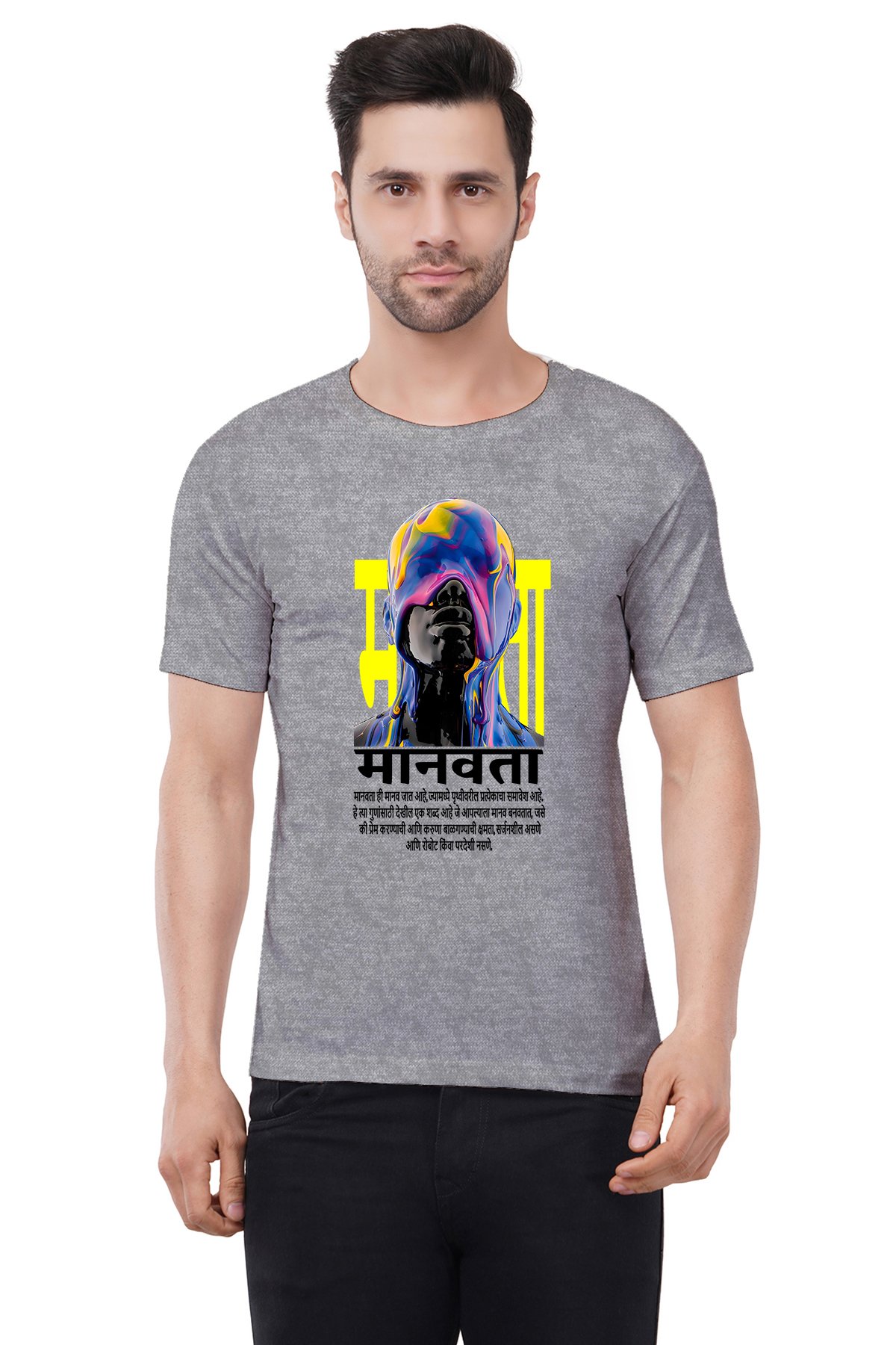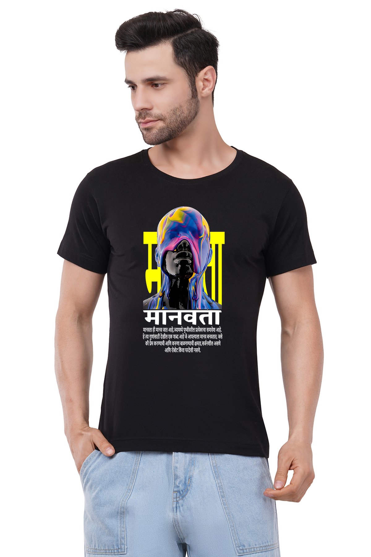 Caseria Men's Cotton Graphic Printed Half Sleeve T-Shirt - Humanity Marathi