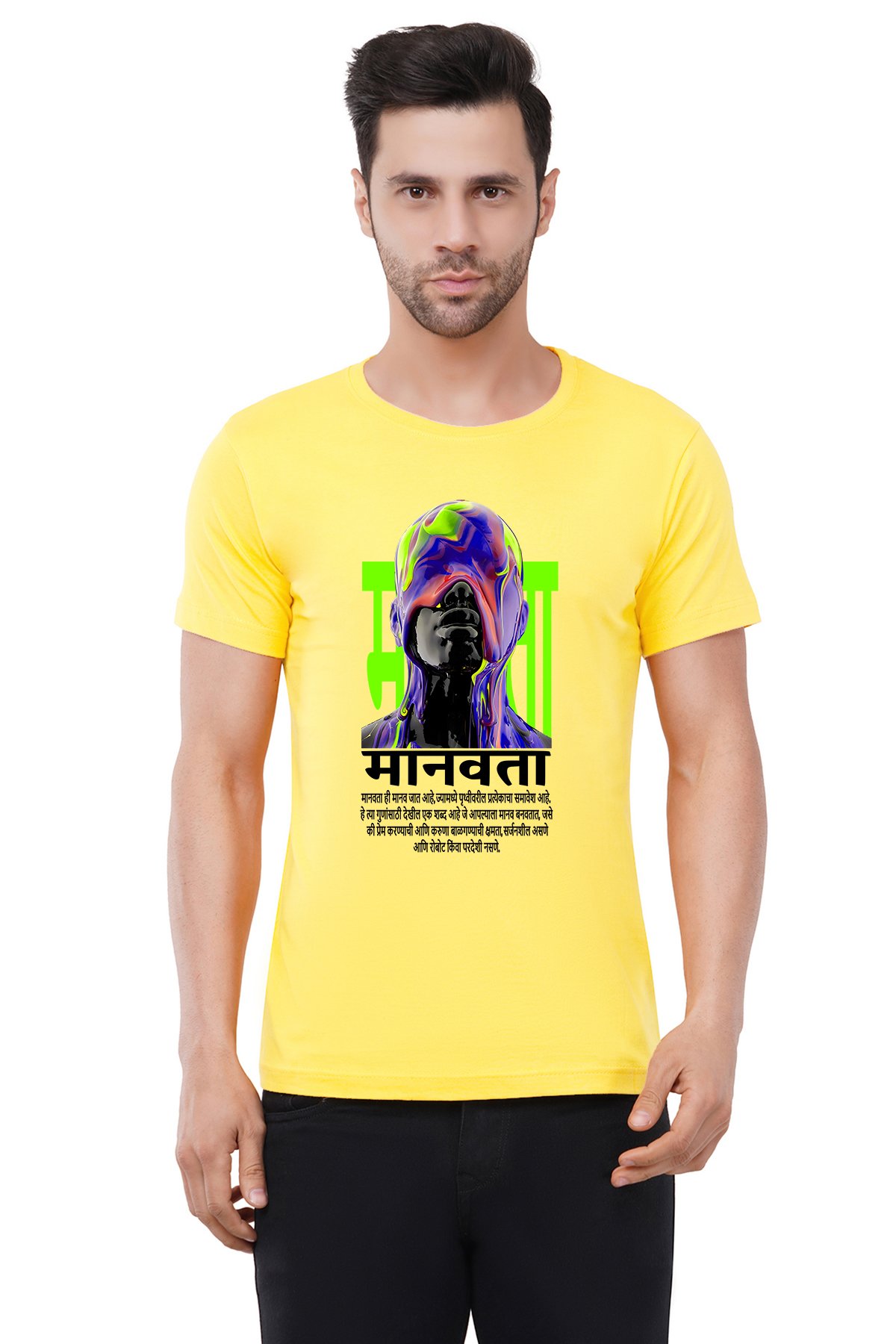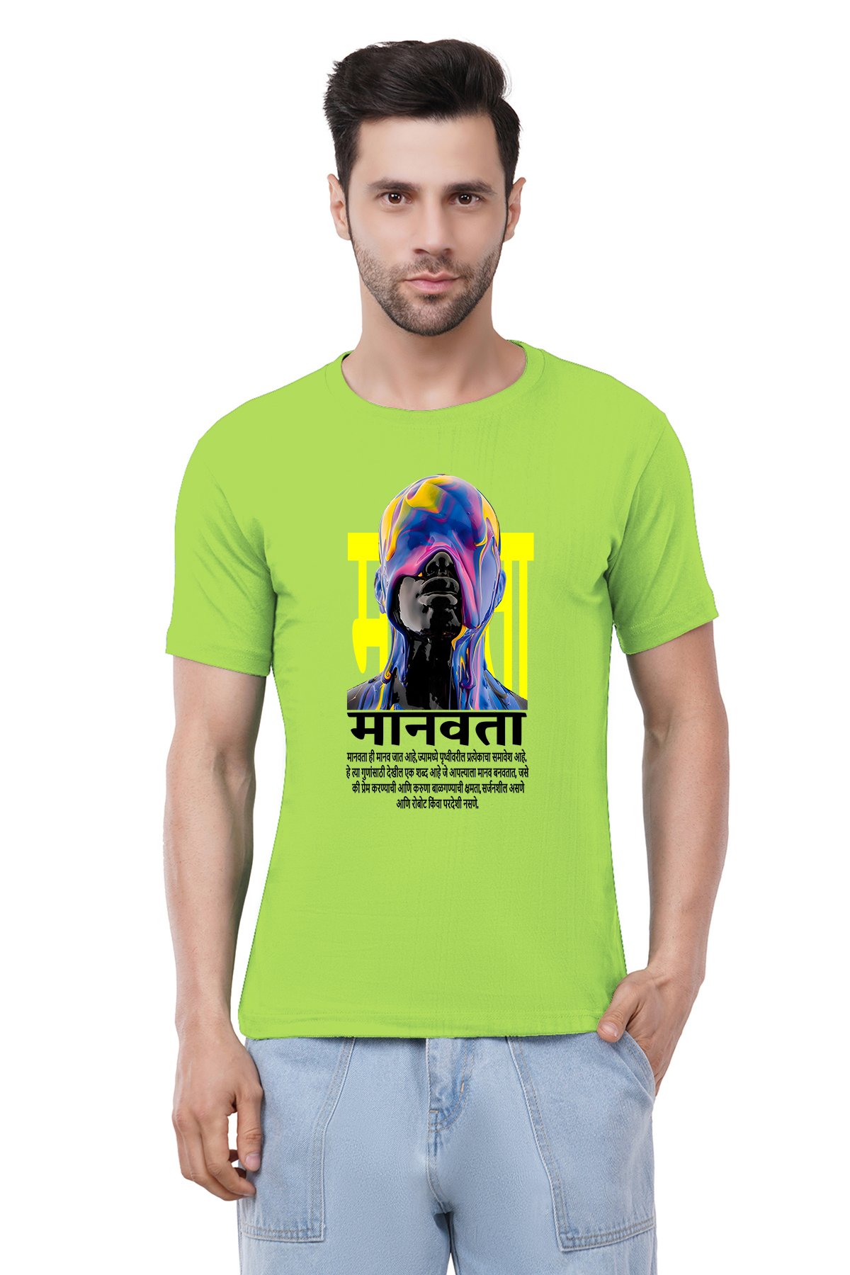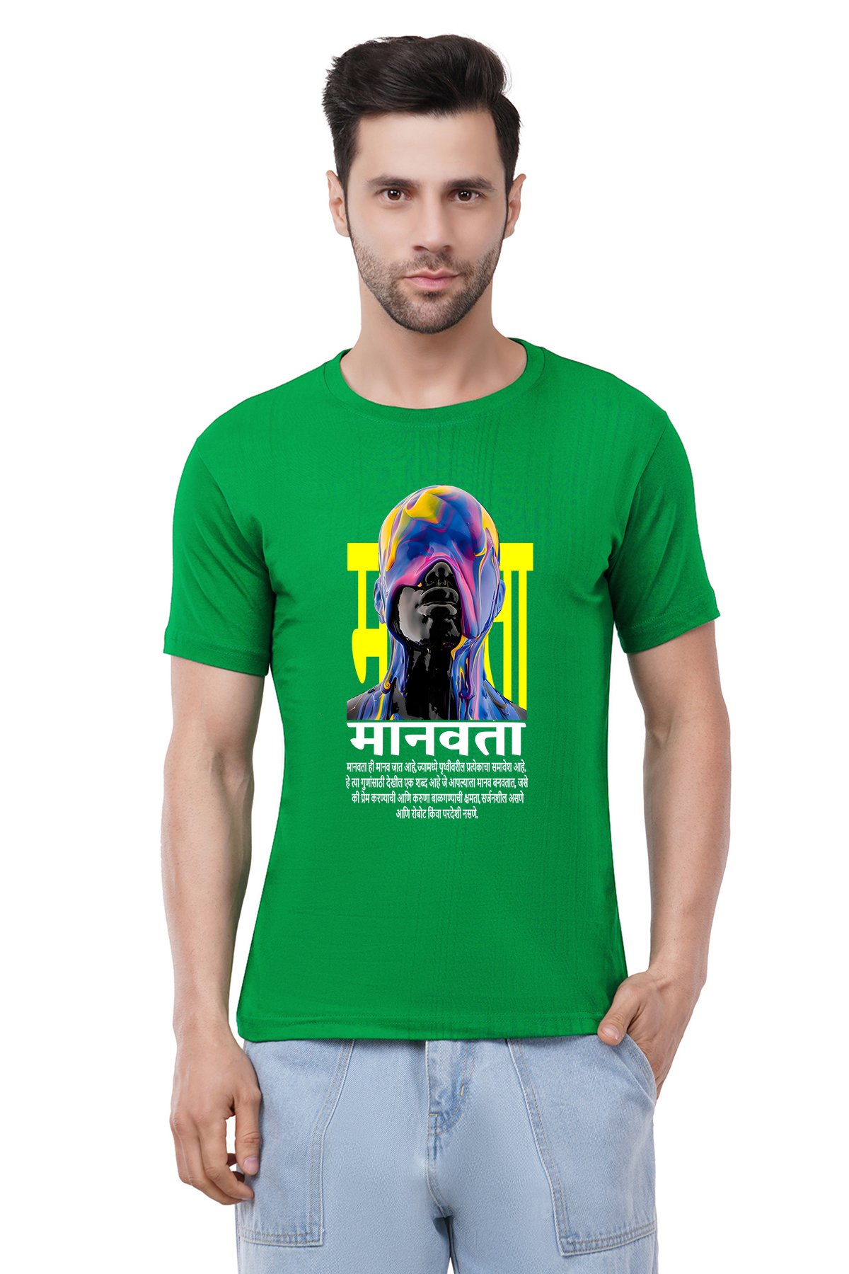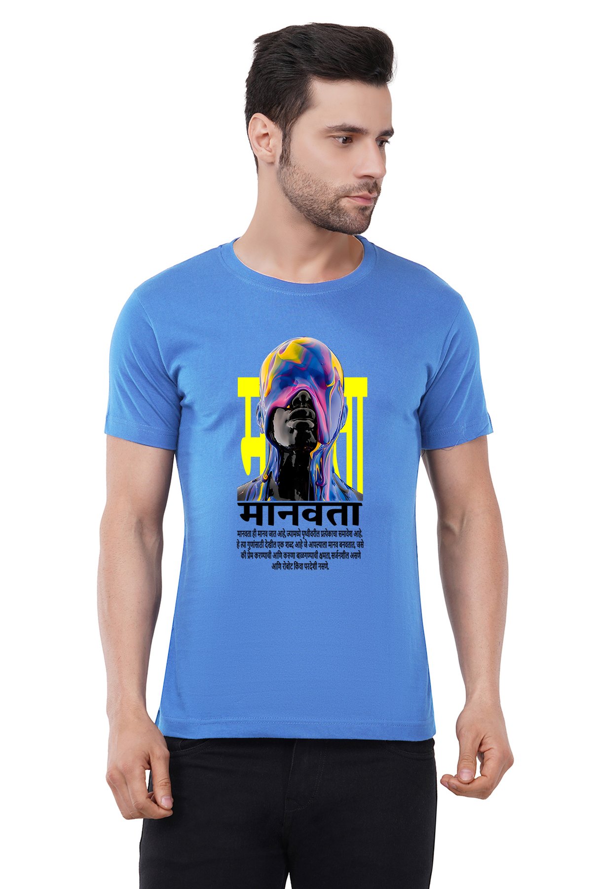 Caseria Men's Cotton Graphic Printed Half Sleeve T-Shirt - Humanity Marathi