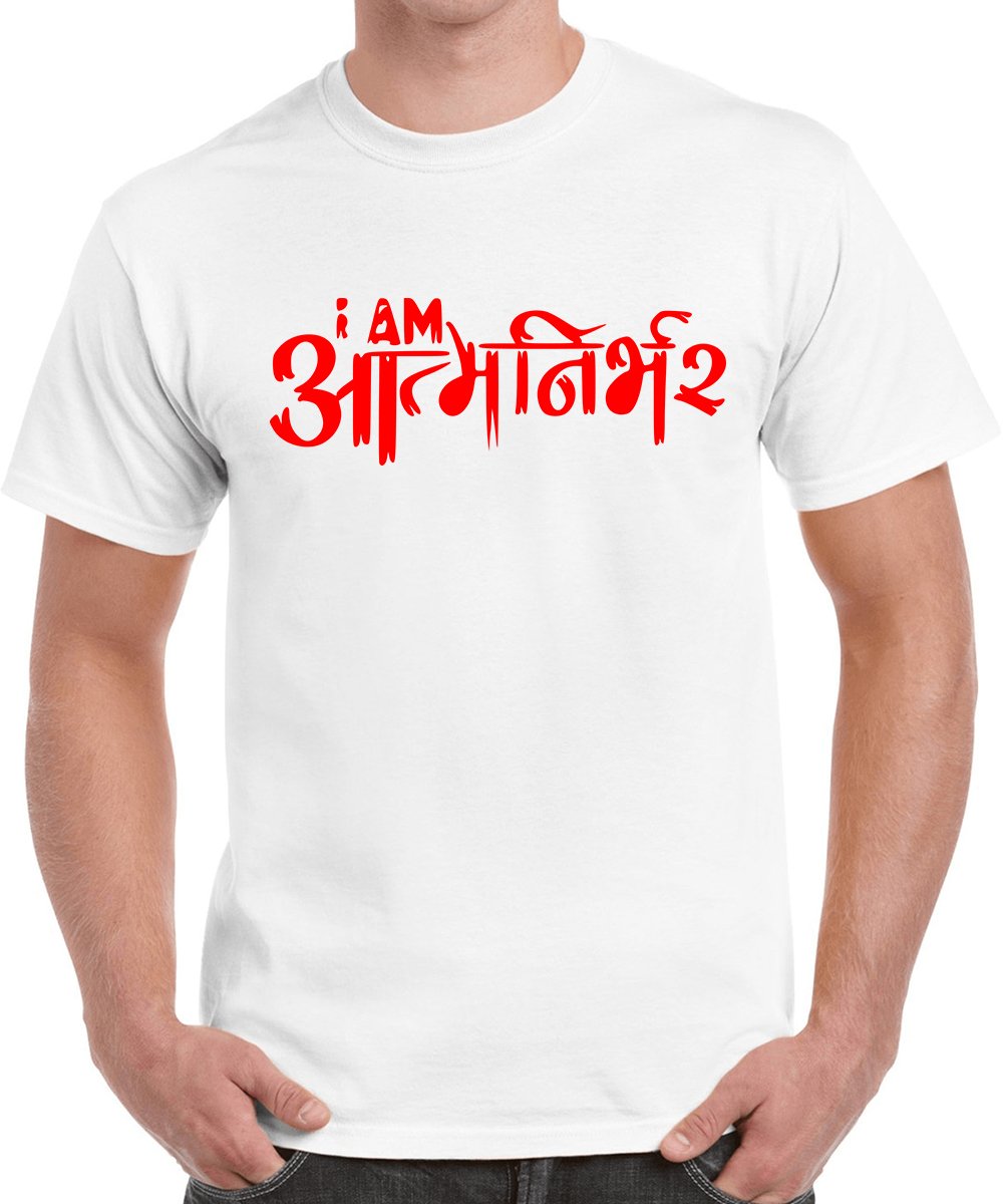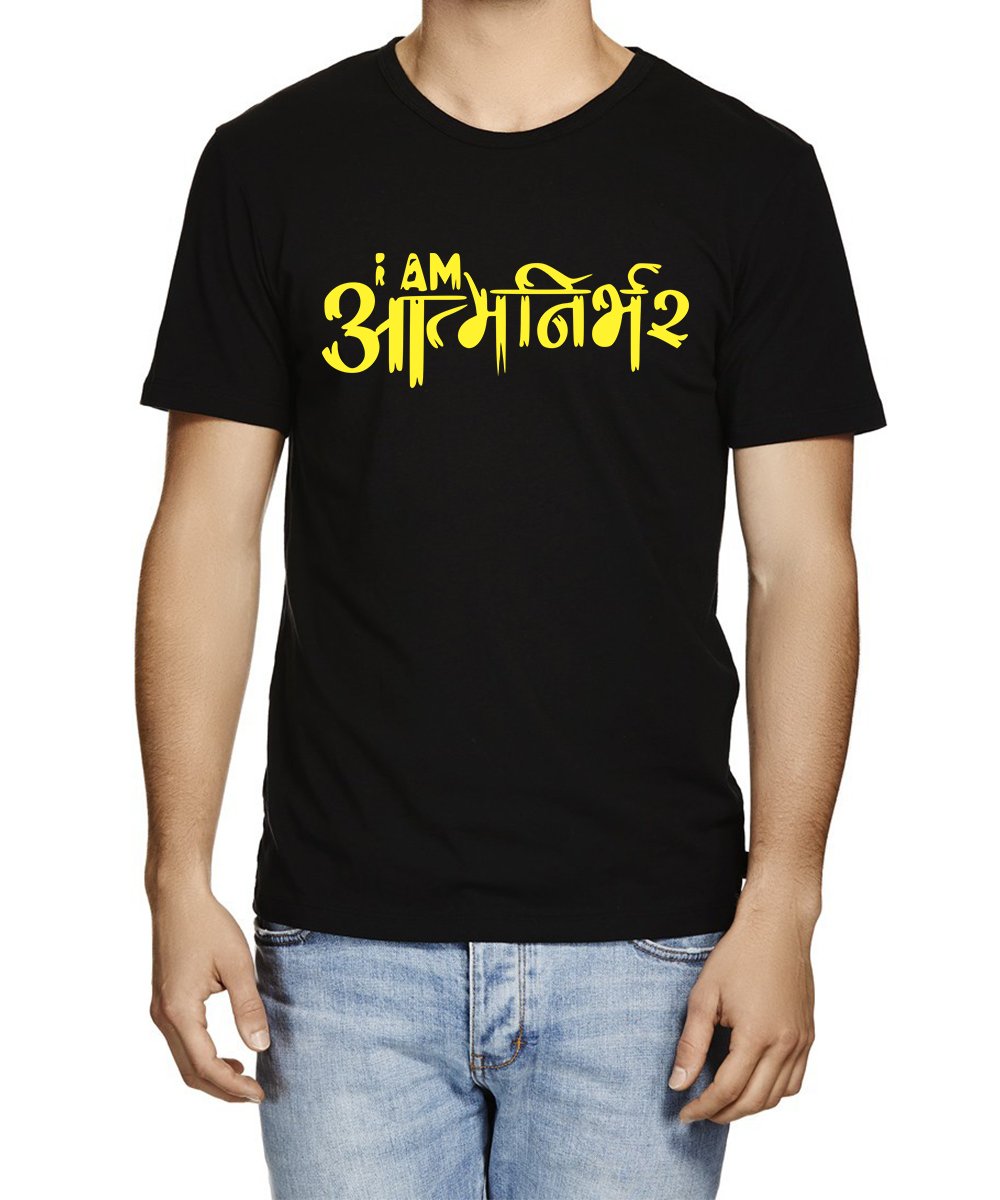 Caseria Men's Cotton Graphic Printed Half Sleeve T-Shirt - I Am Aatma Nirbhar