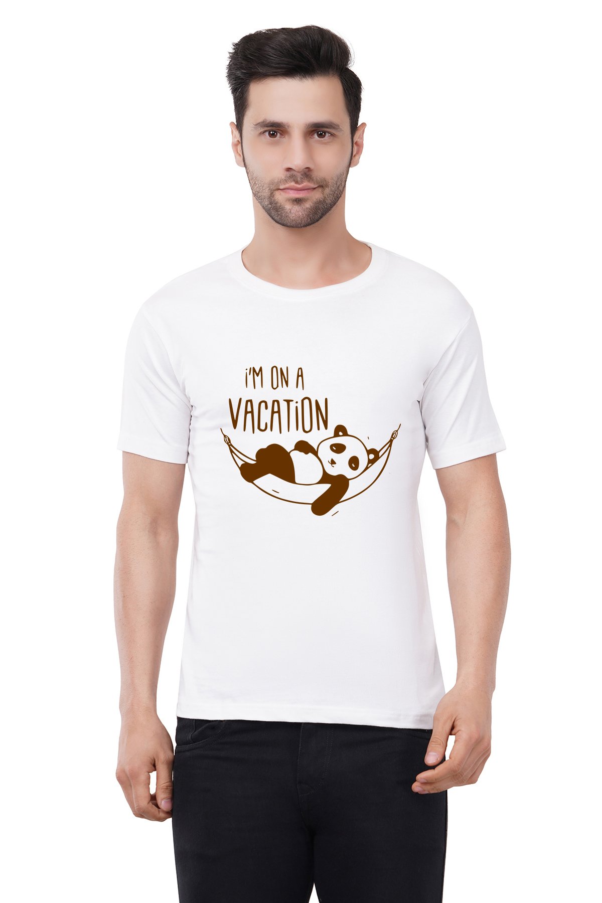 Caseria Men's Cotton Graphic Printed Half Sleeve T-Shirt - I Am On Vacation