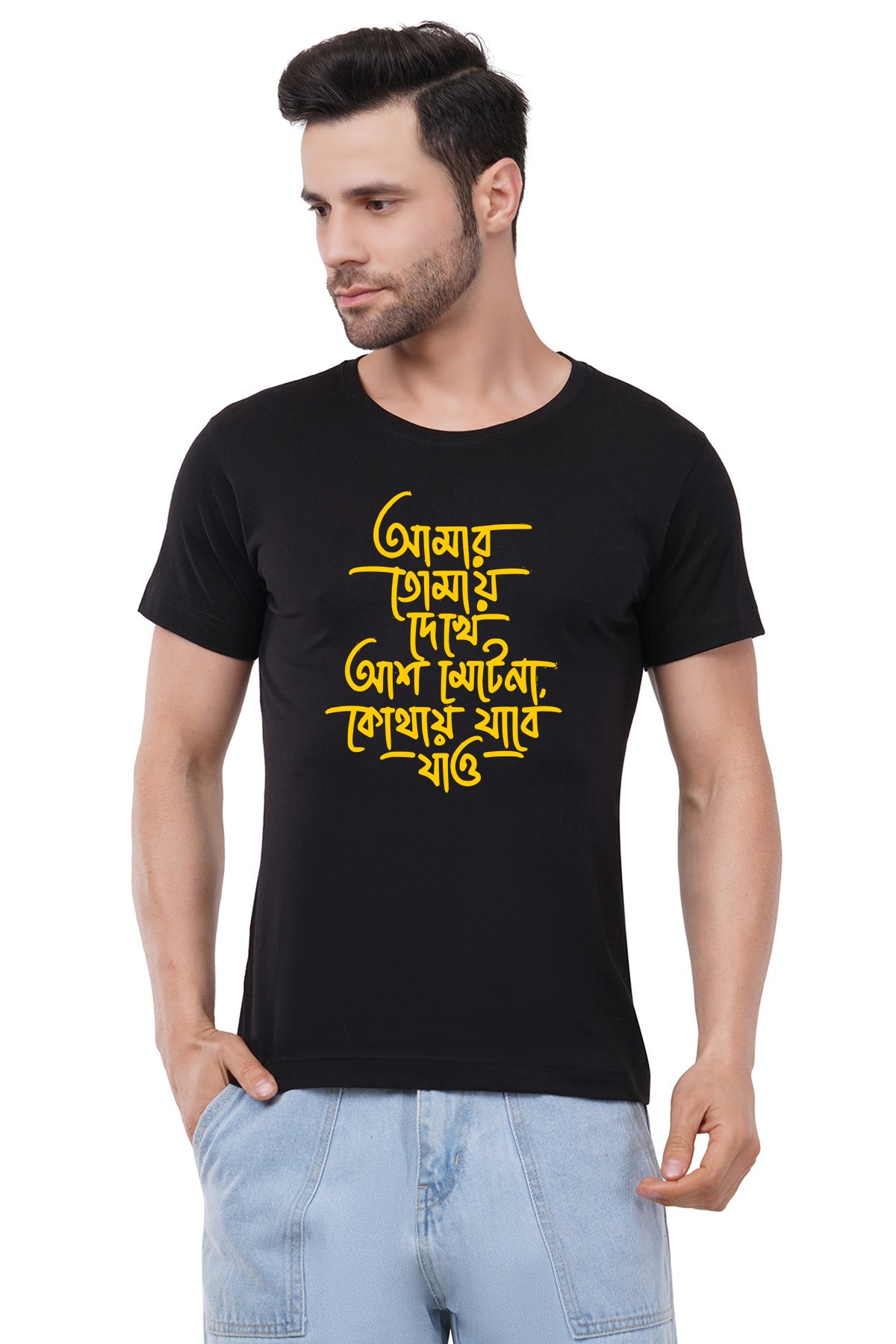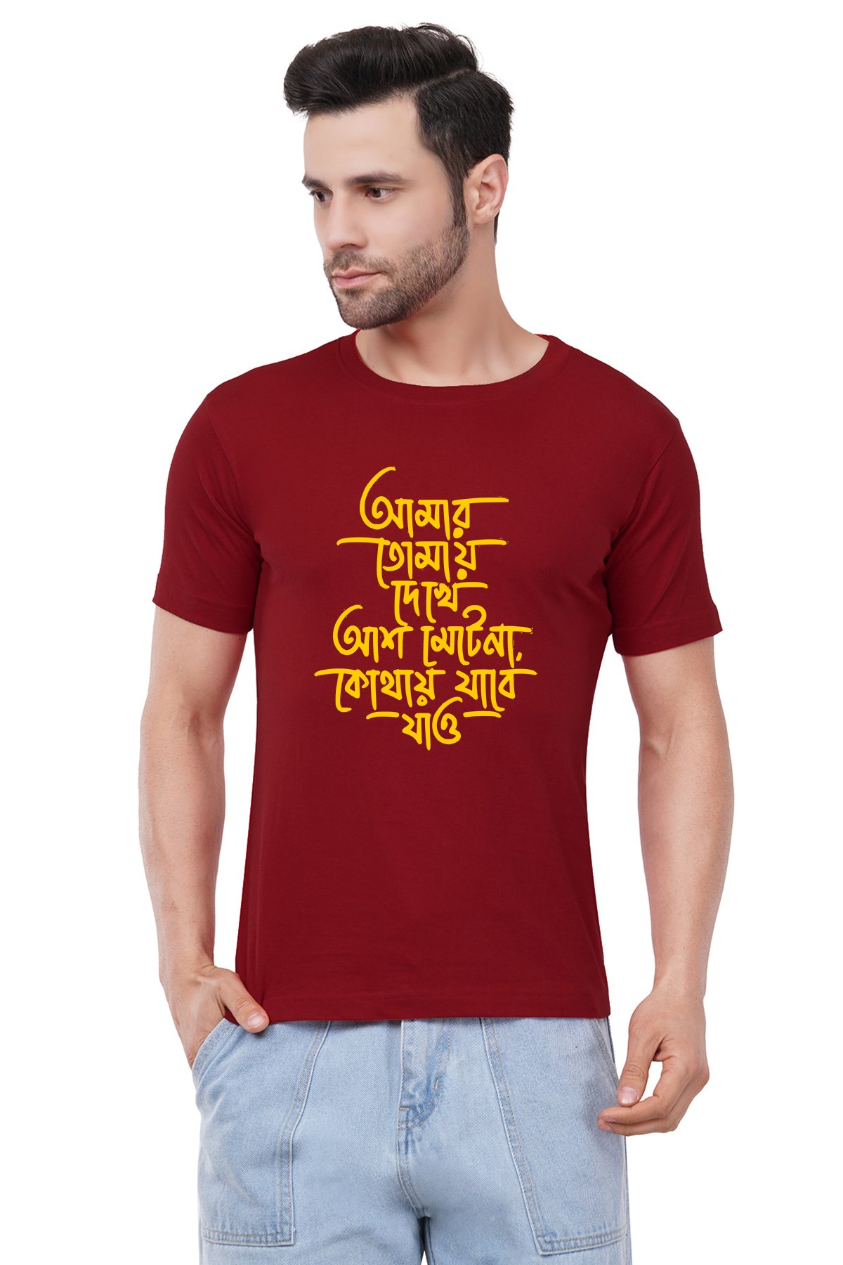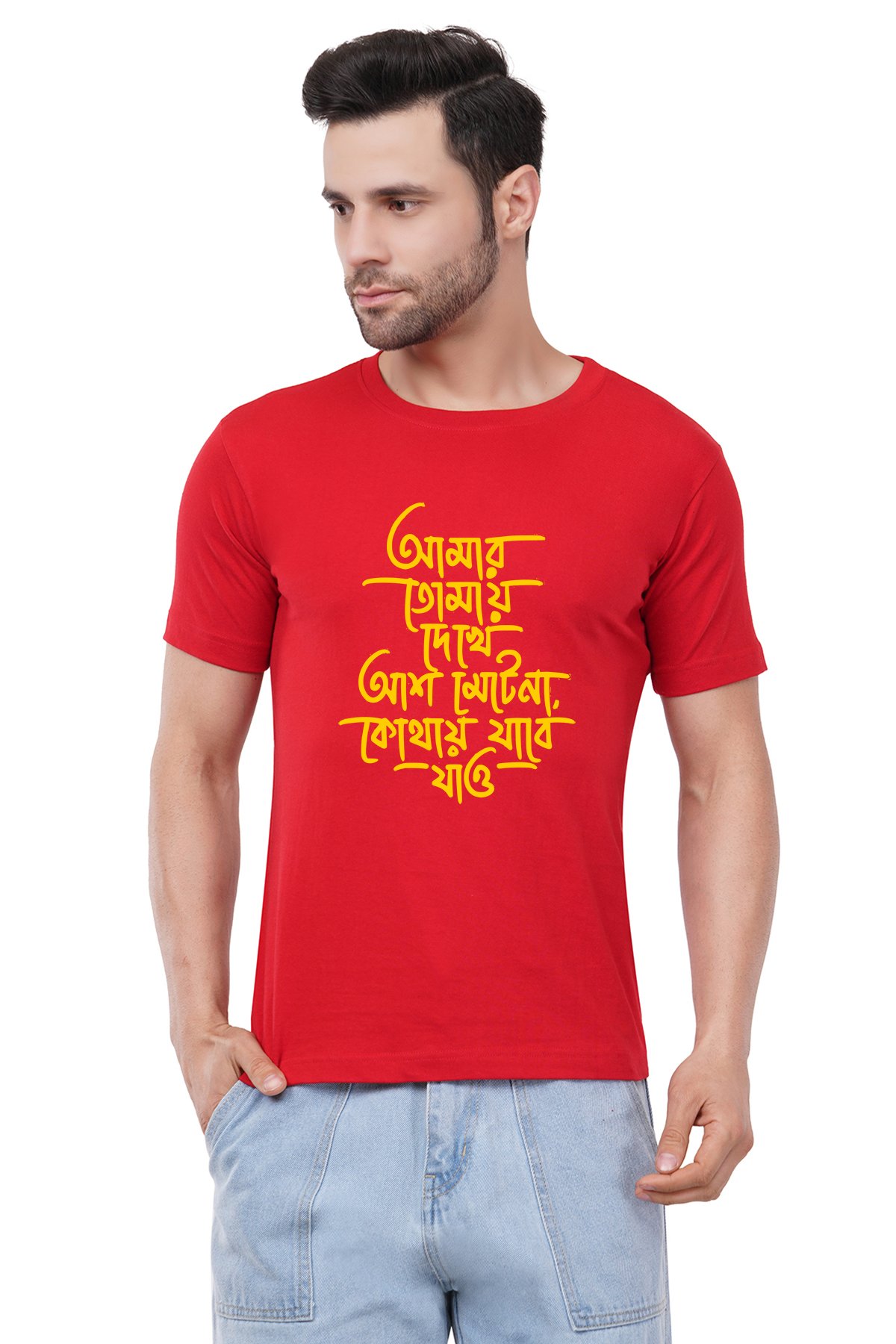 Caseria Men's Cotton Graphic Printed Half Sleeve T-Shirt - I Can't Wait Bengali
