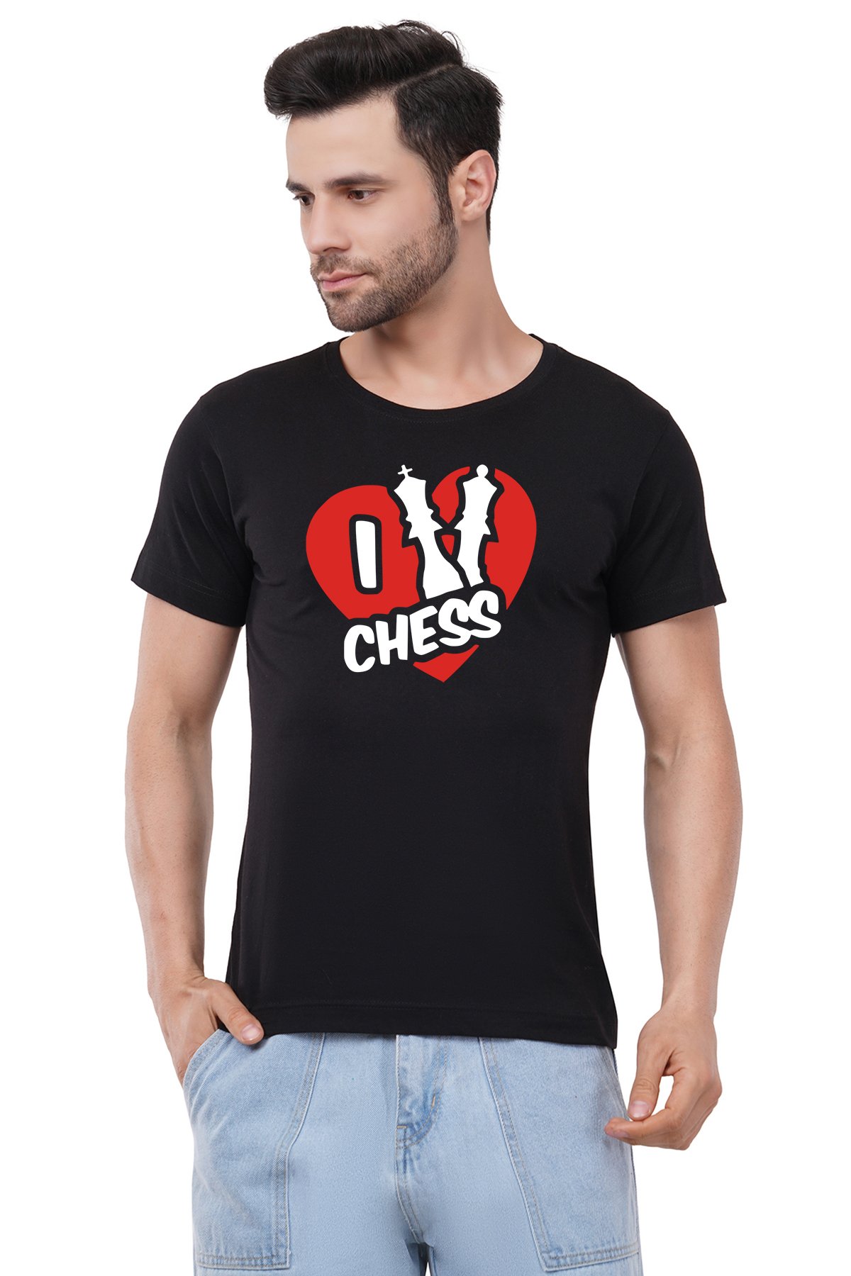 Caseria Men's Cotton Graphic Printed Half Sleeve T-Shirt - I Love Chess