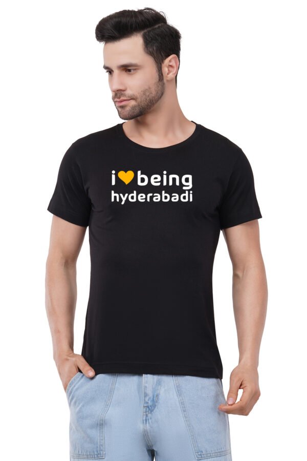 Caseria Men's Cotton Graphic Printed Half Sleeve T-Shirt - I Love Hyderabadi