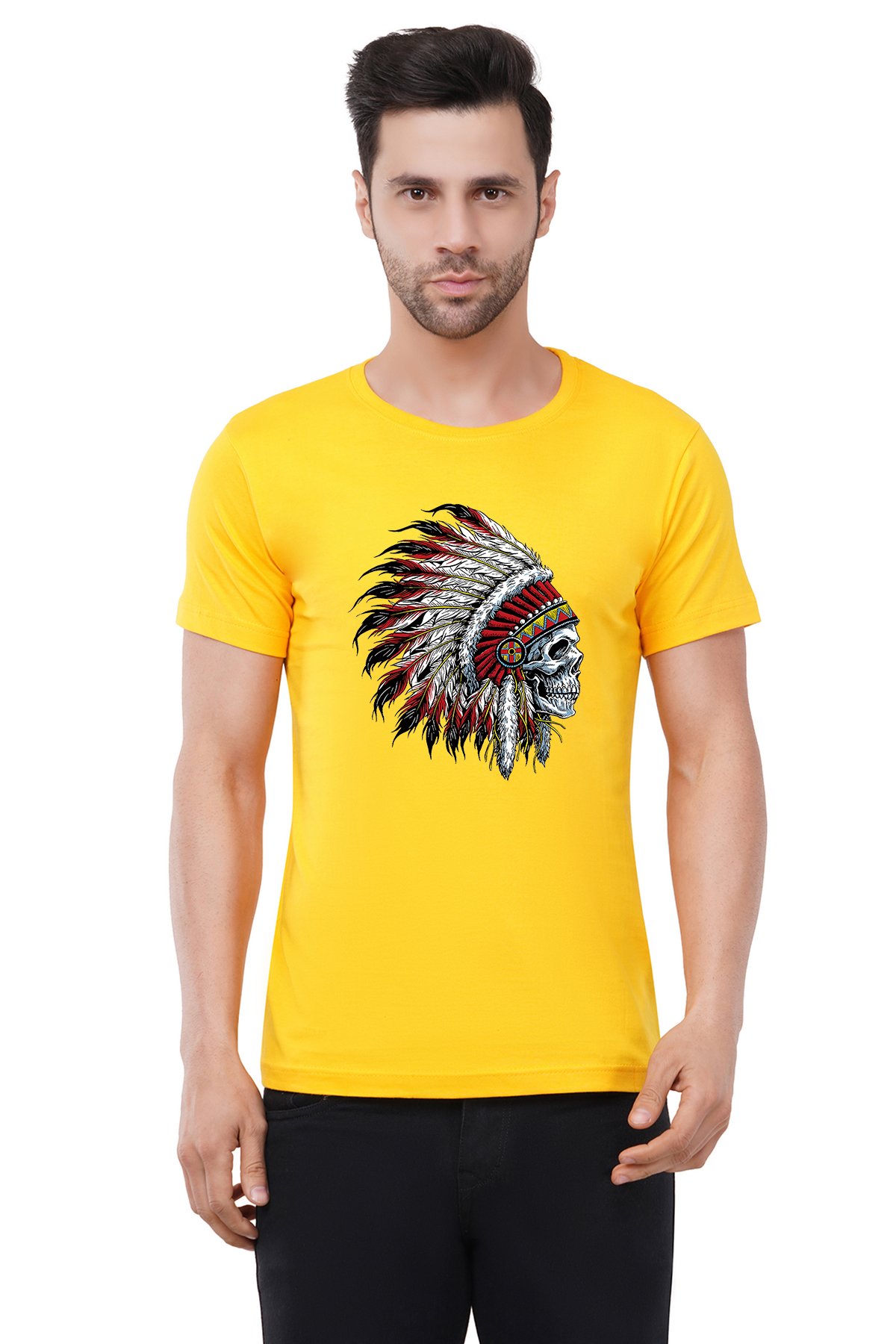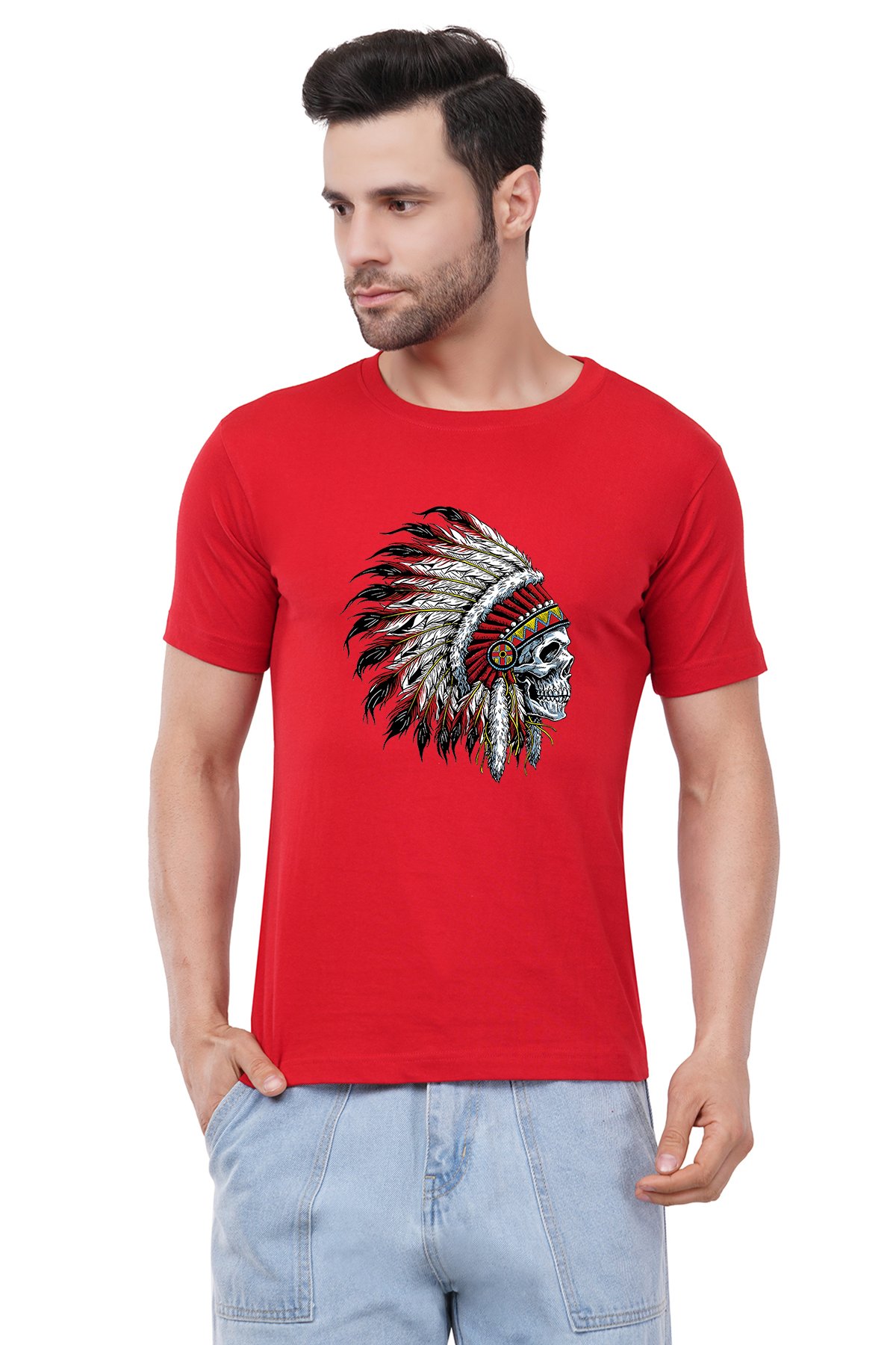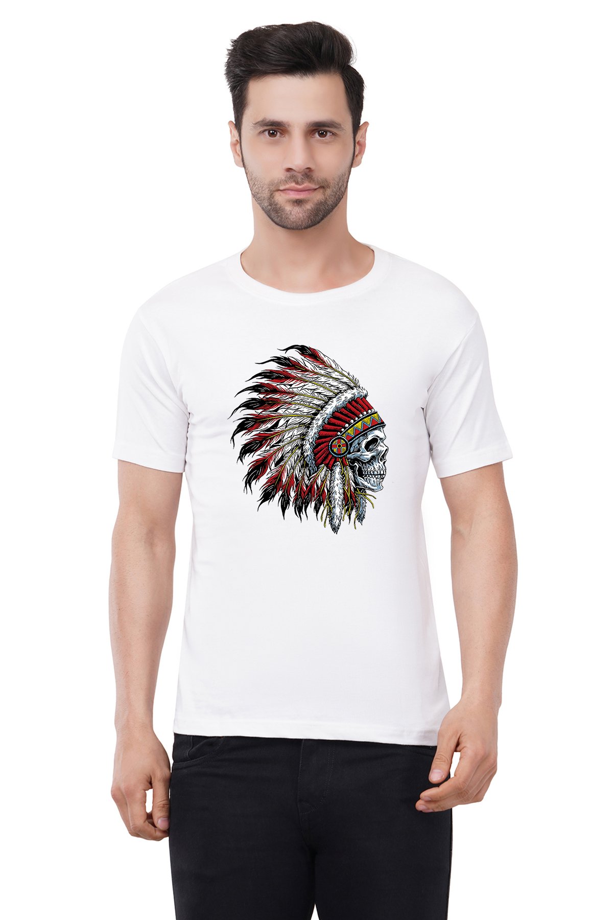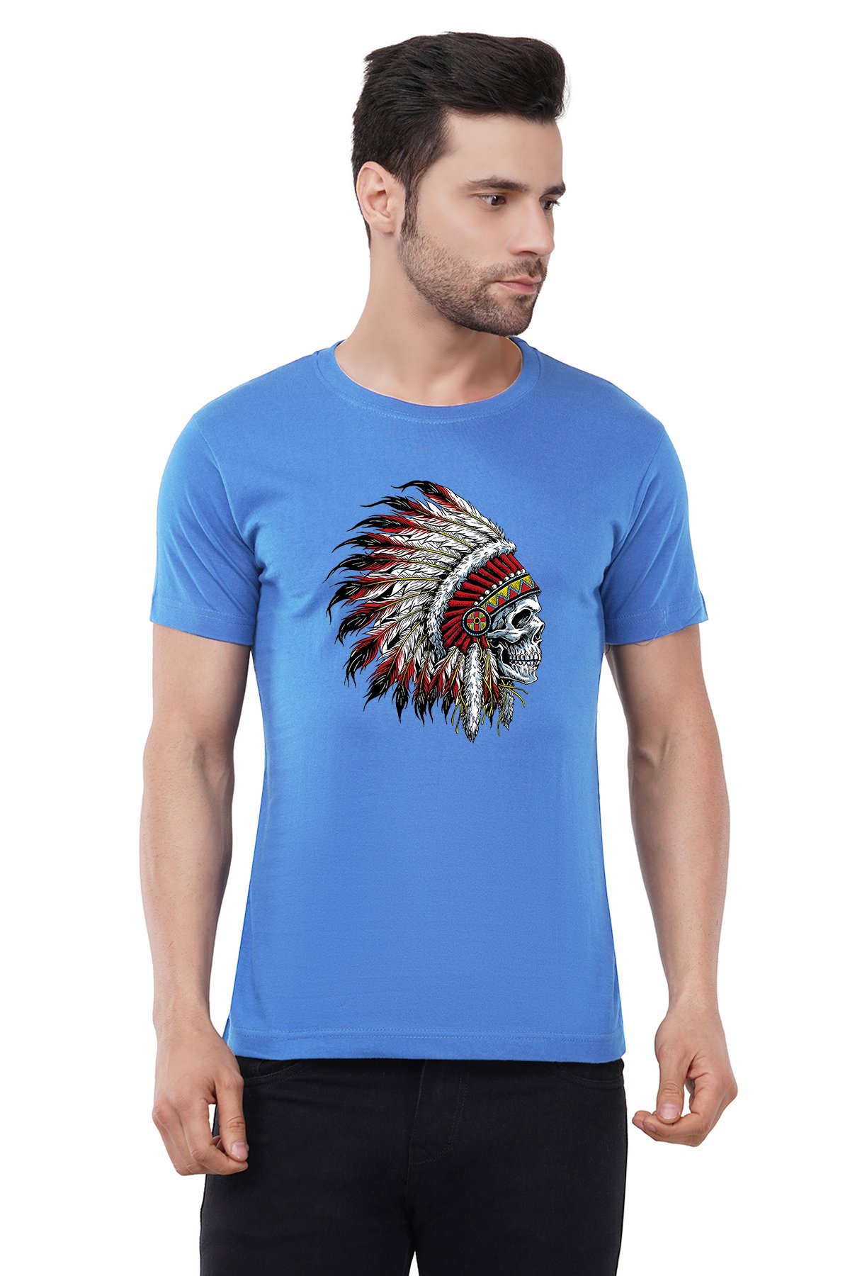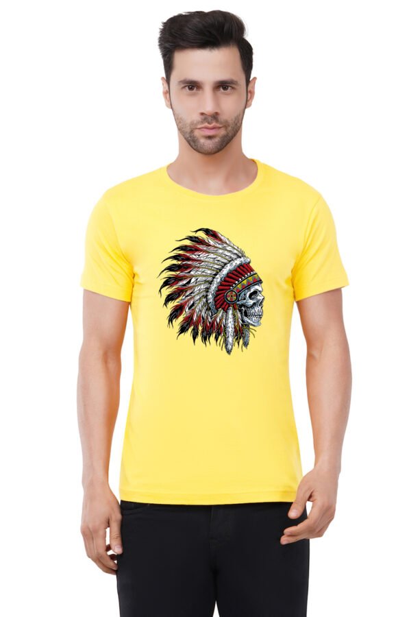 Caseria Men's Cotton Graphic Printed Half Sleeve T-Shirt - Indian Chief Skull