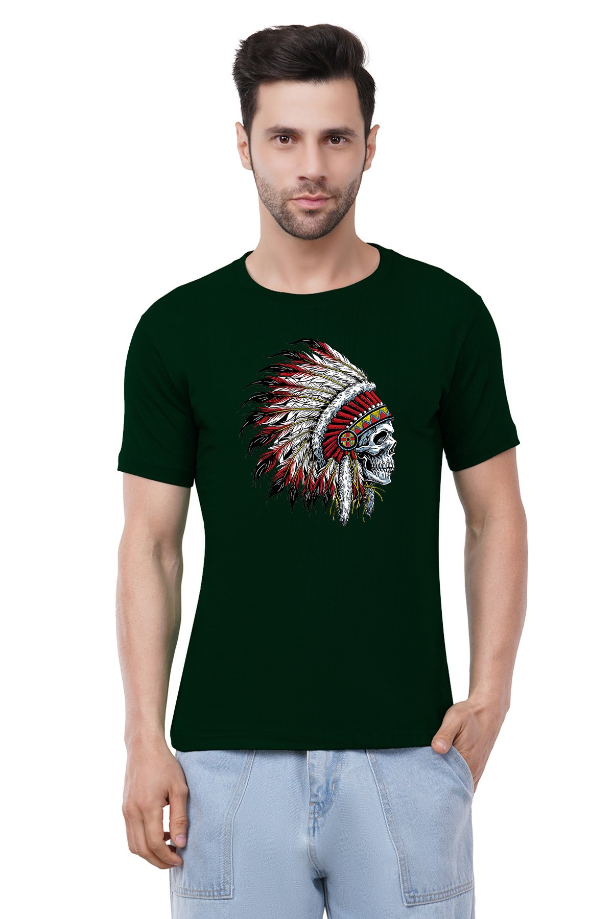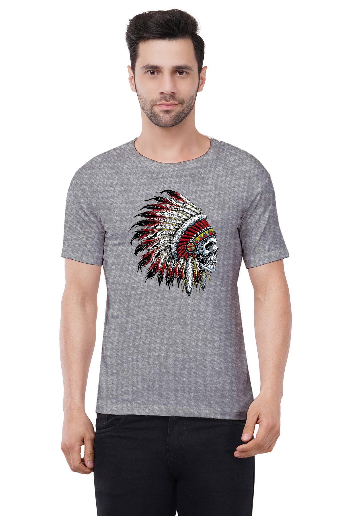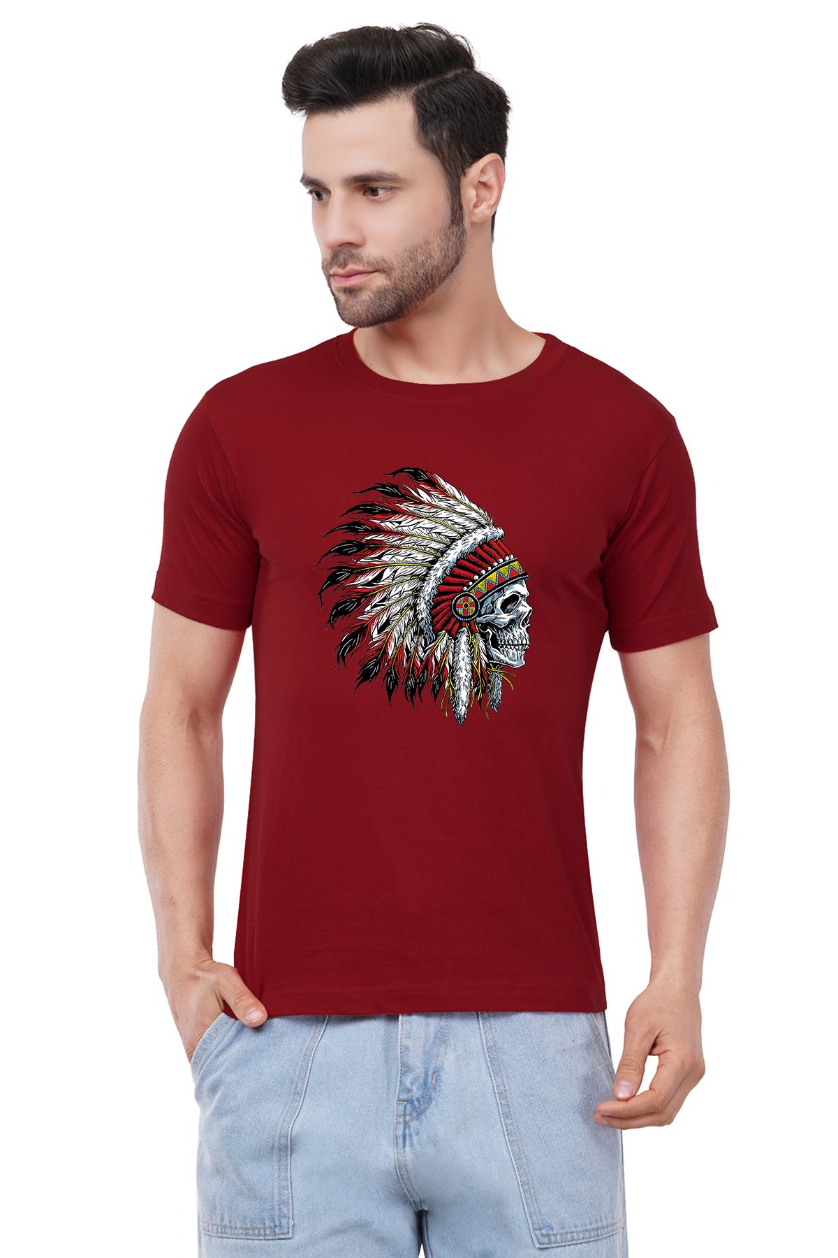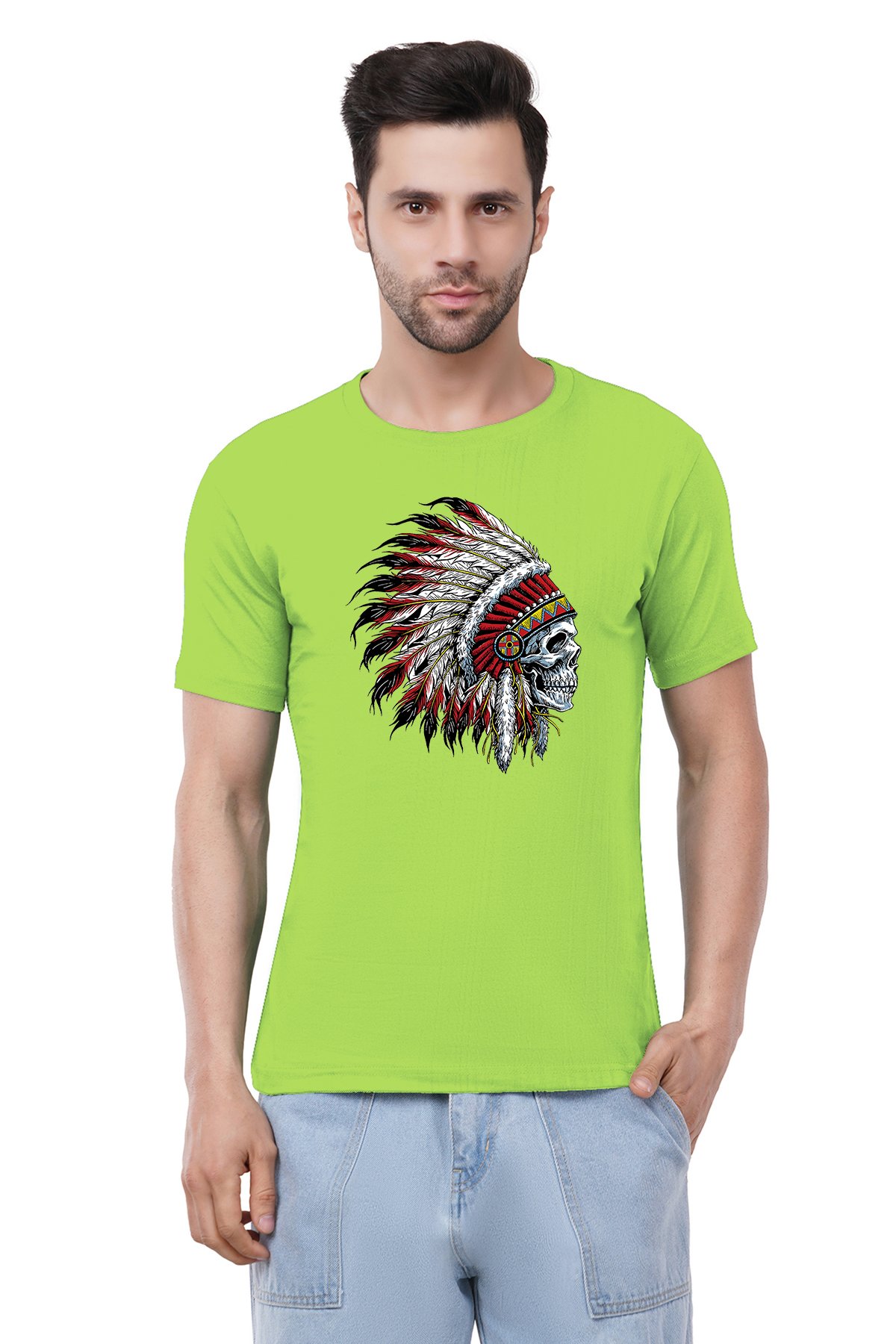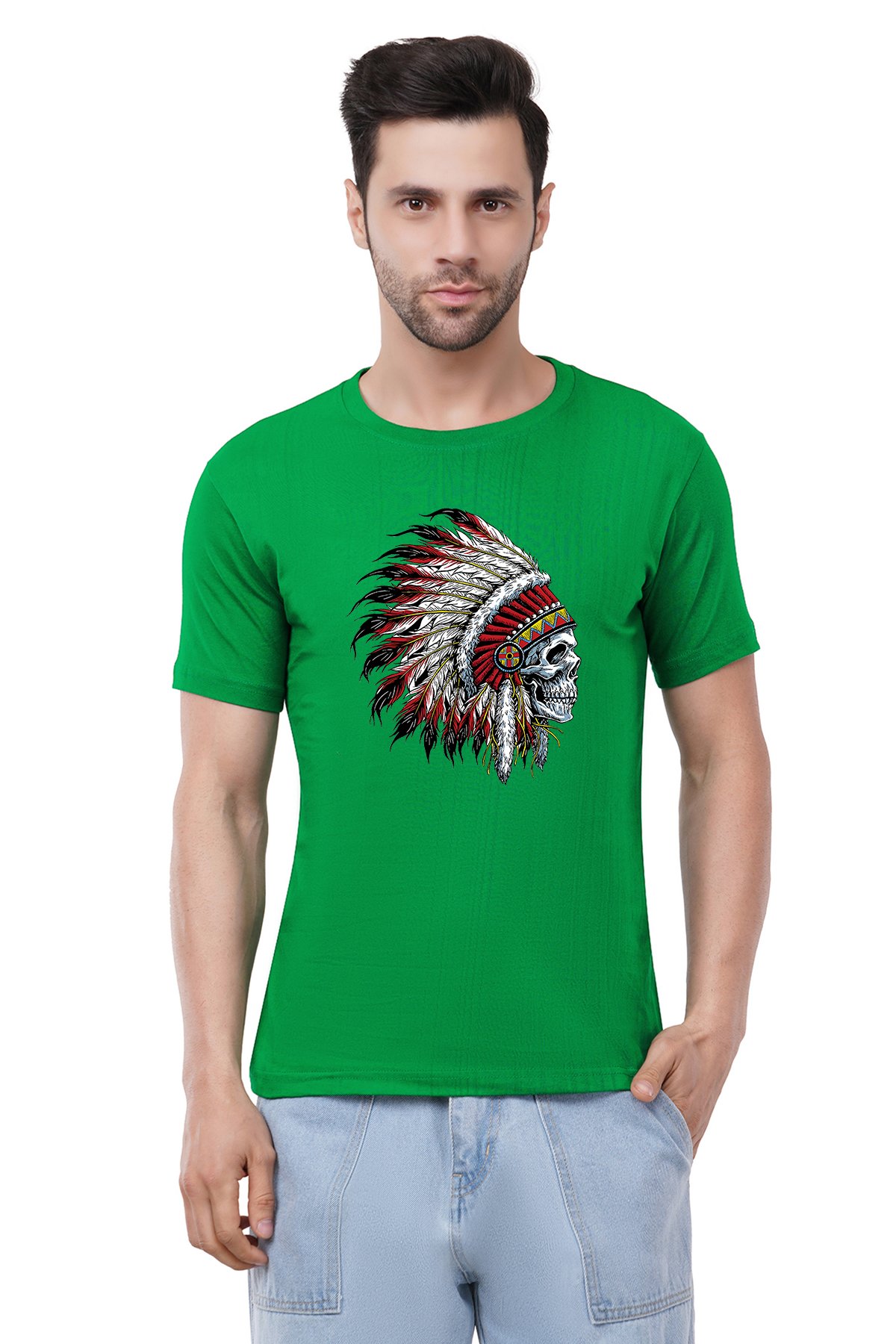 Caseria Men's Cotton Graphic Printed Half Sleeve T-Shirt - Indian Chief Skull