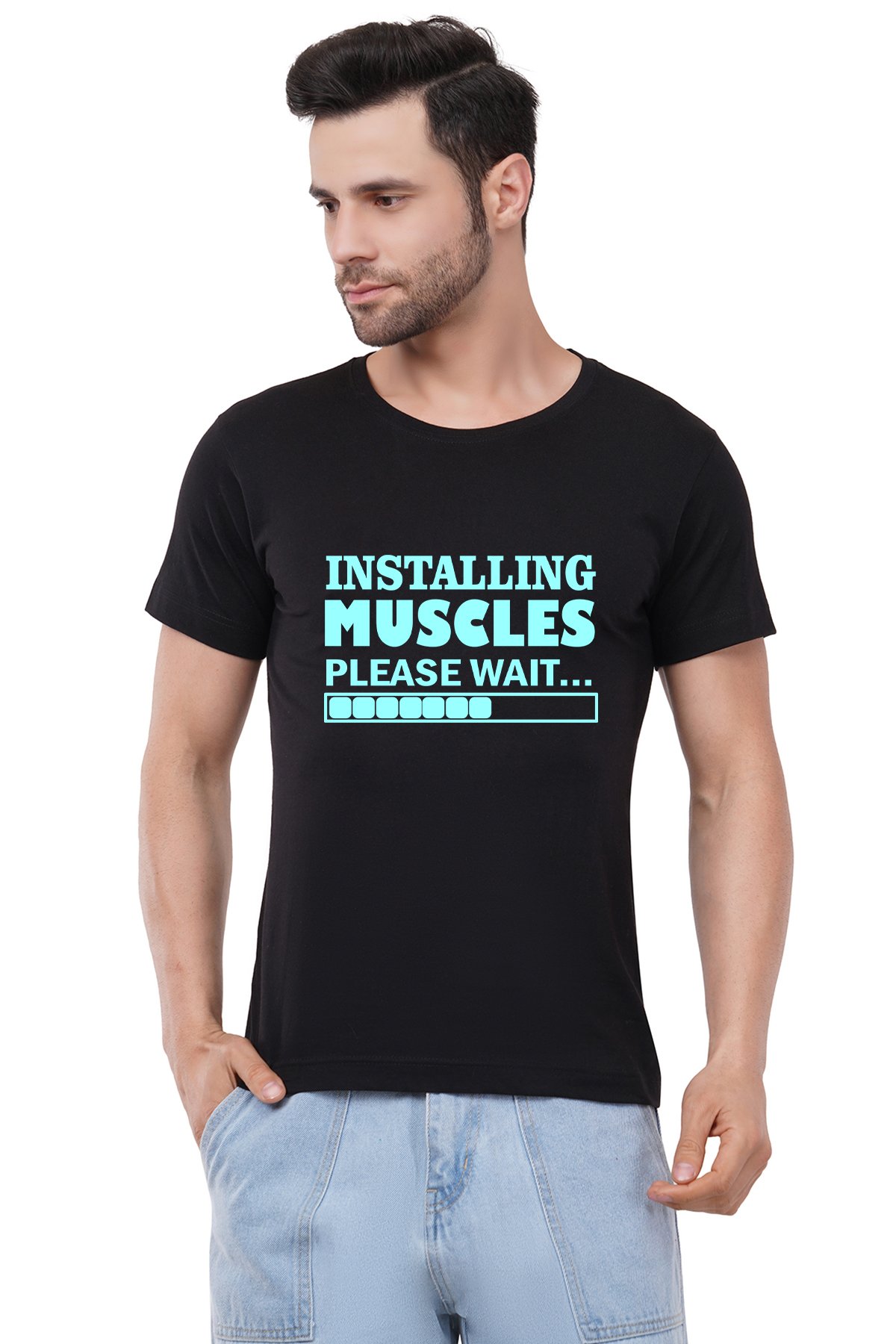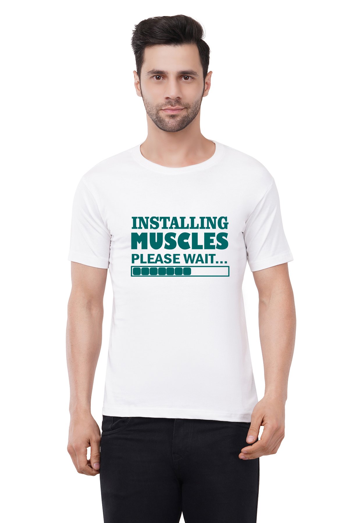 Caseria Men's Cotton Graphic Printed Half Sleeve T-Shirt - Installing Muscles Please