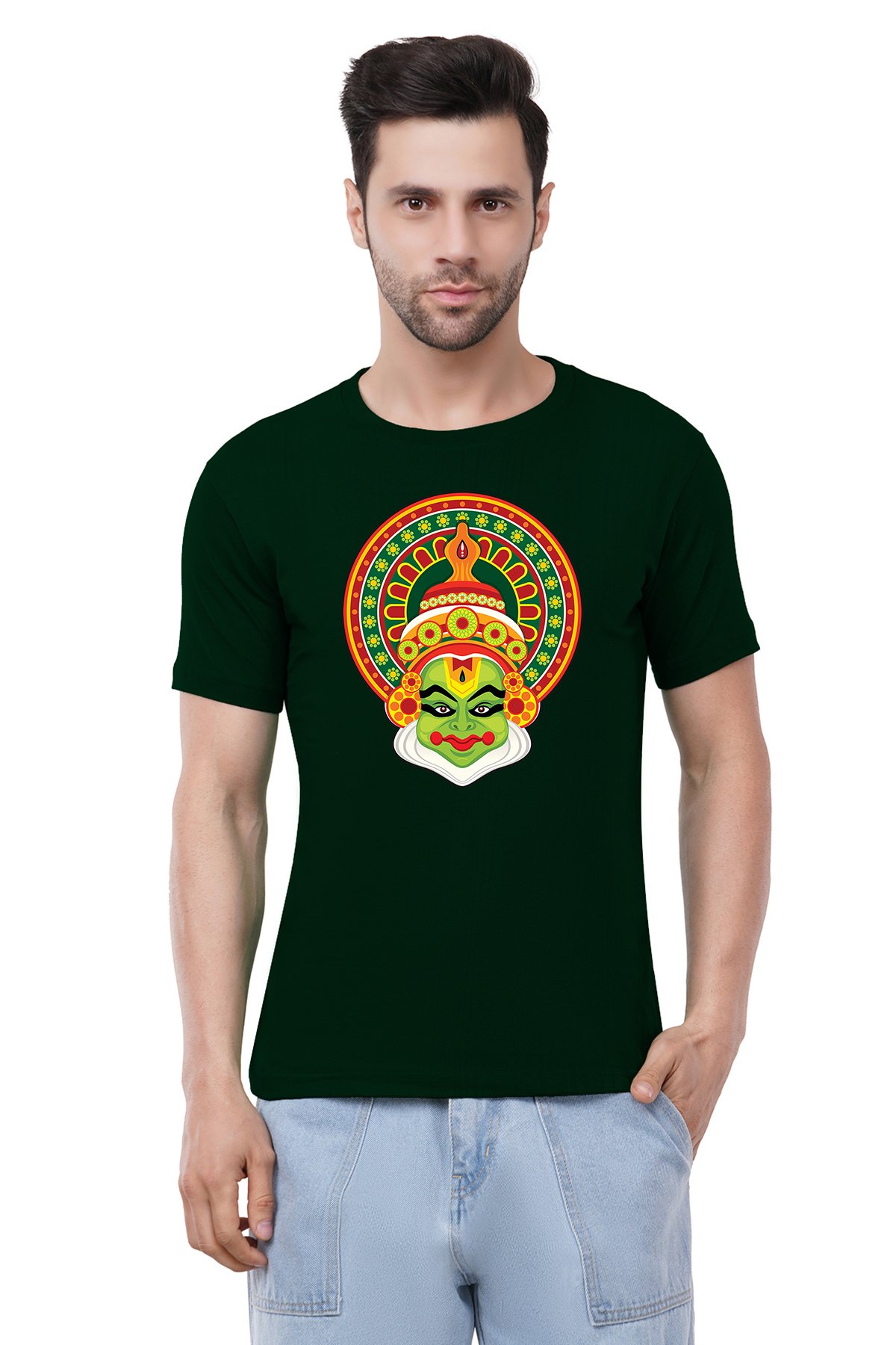 Caseria Men's Cotton Graphic Printed Half Sleeve T-Shirt - Kathakali Kerala
