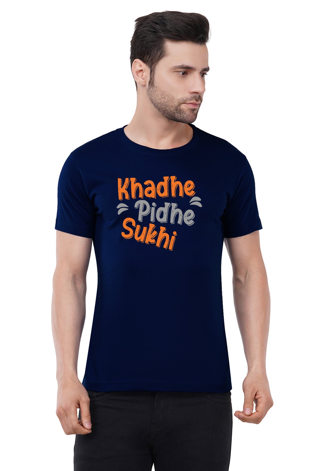 Caseria Men's Cotton Graphic Printed Half Sleeve T-Shirt - Khadhe Pidhe Sukhi
