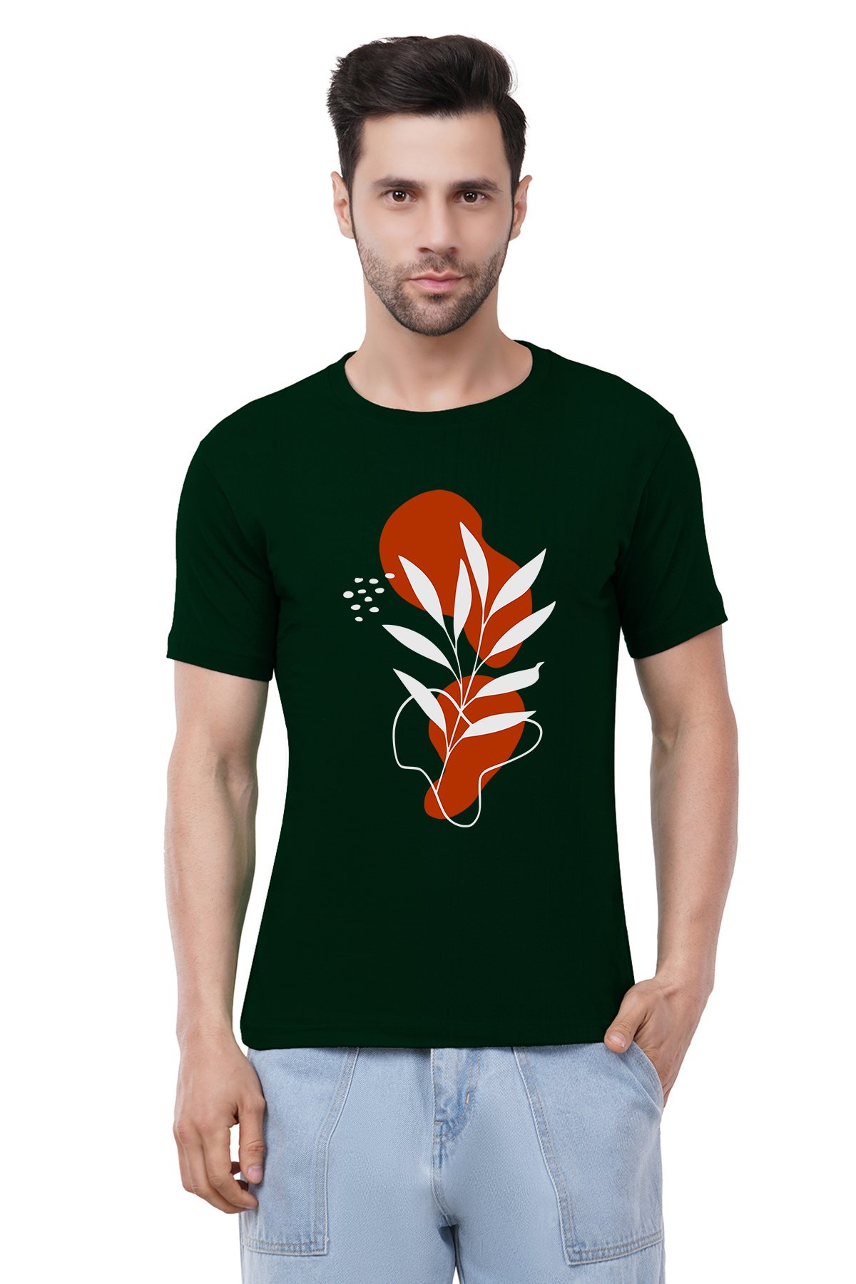 Caseria Men's Cotton Graphic Printed Half Sleeve T-Shirt - Leaf Art