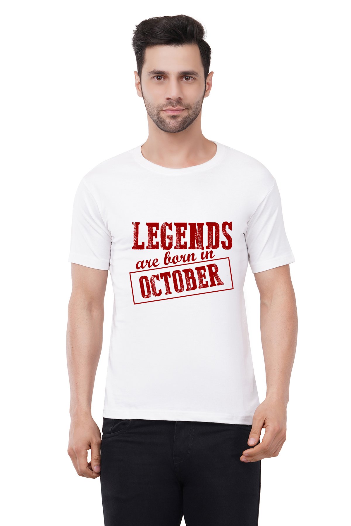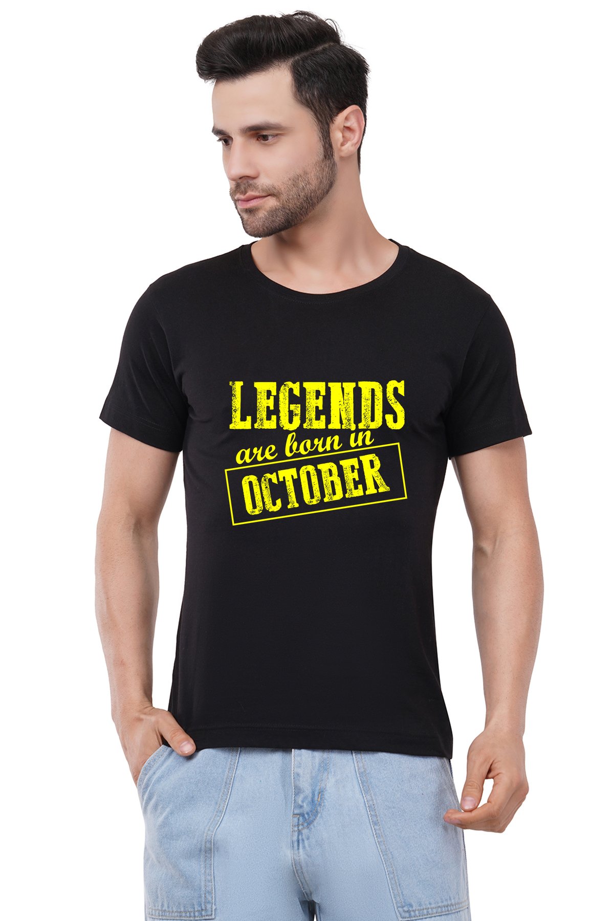 Caseria Men's Cotton Graphic Printed Half Sleeve T-Shirt - Legends Are Born In October Pattern