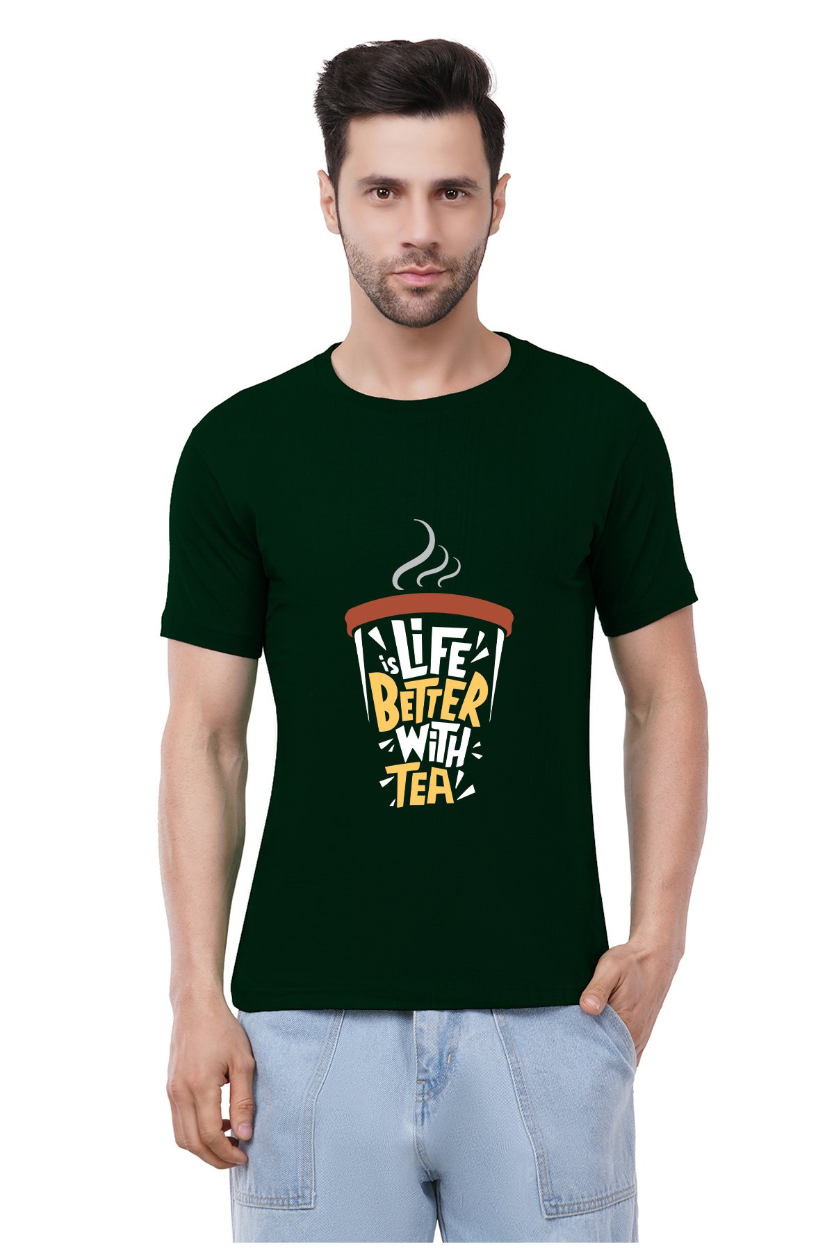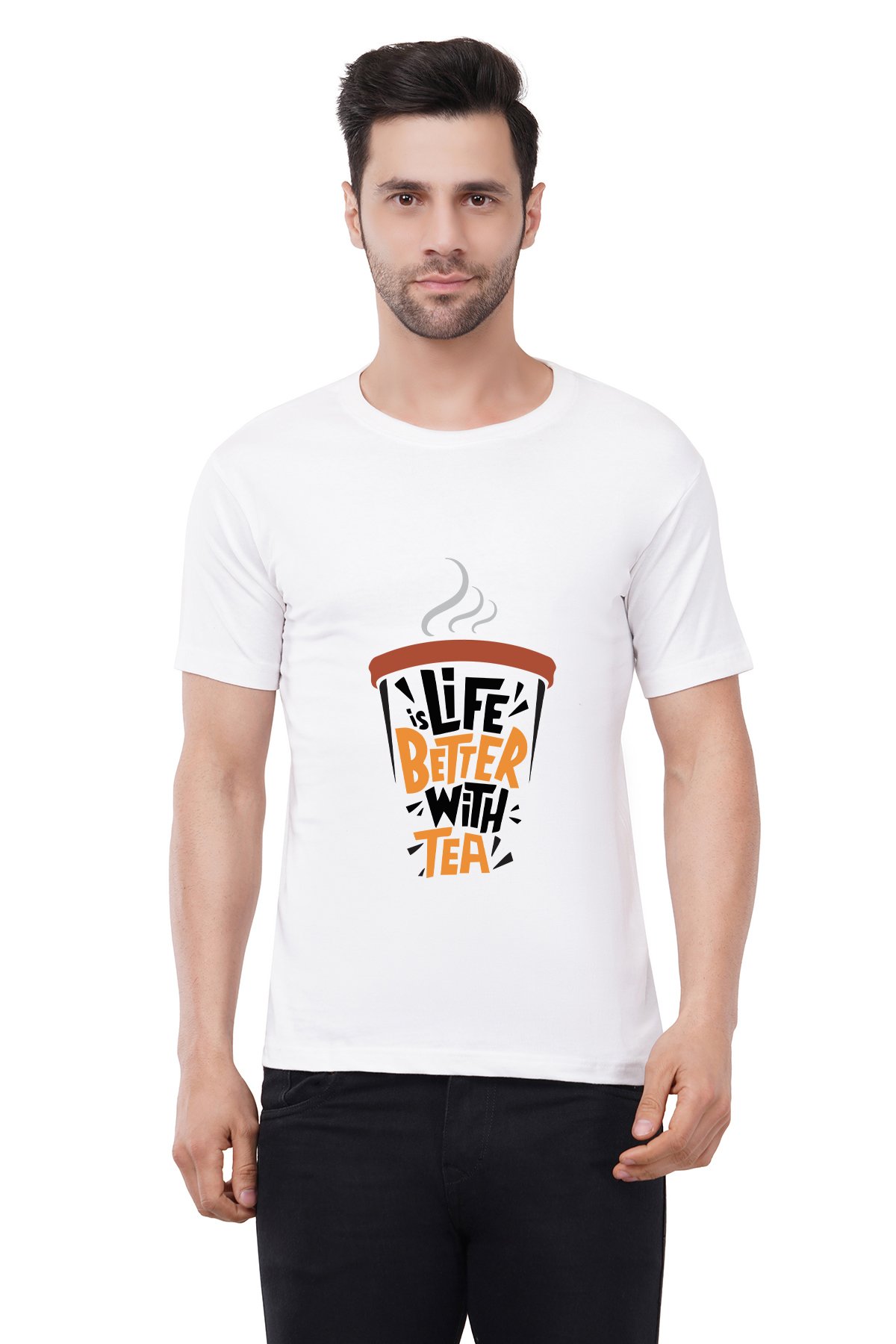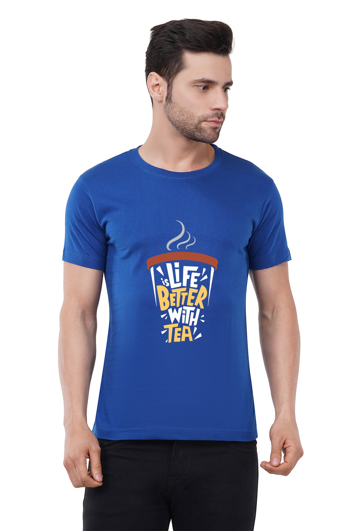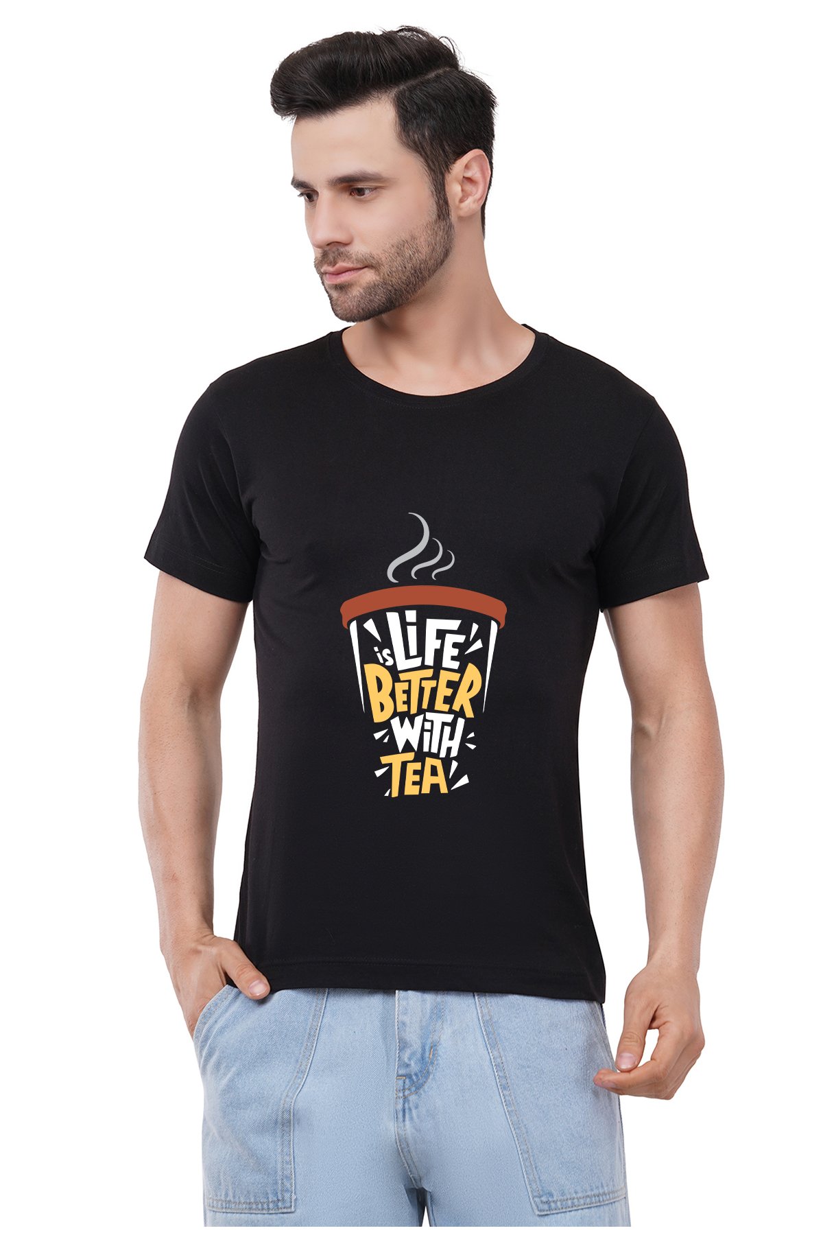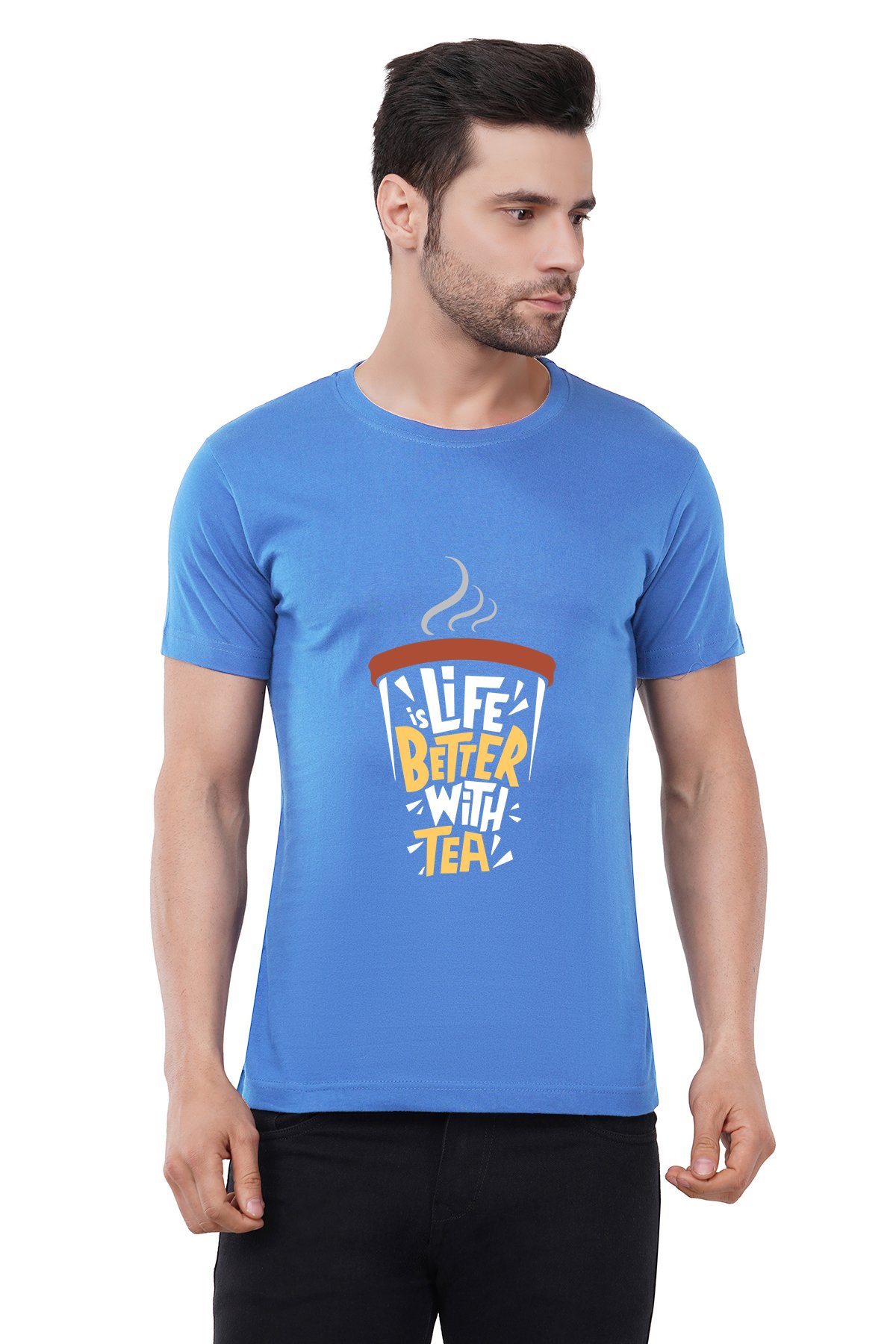 Caseria Men's Cotton Graphic Printed Half Sleeve T-Shirt - Life Better With Tea
