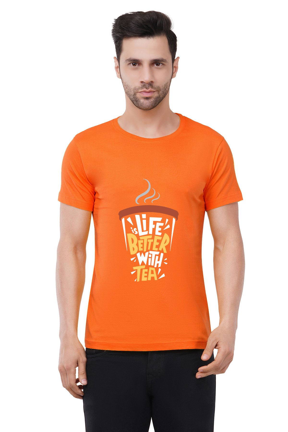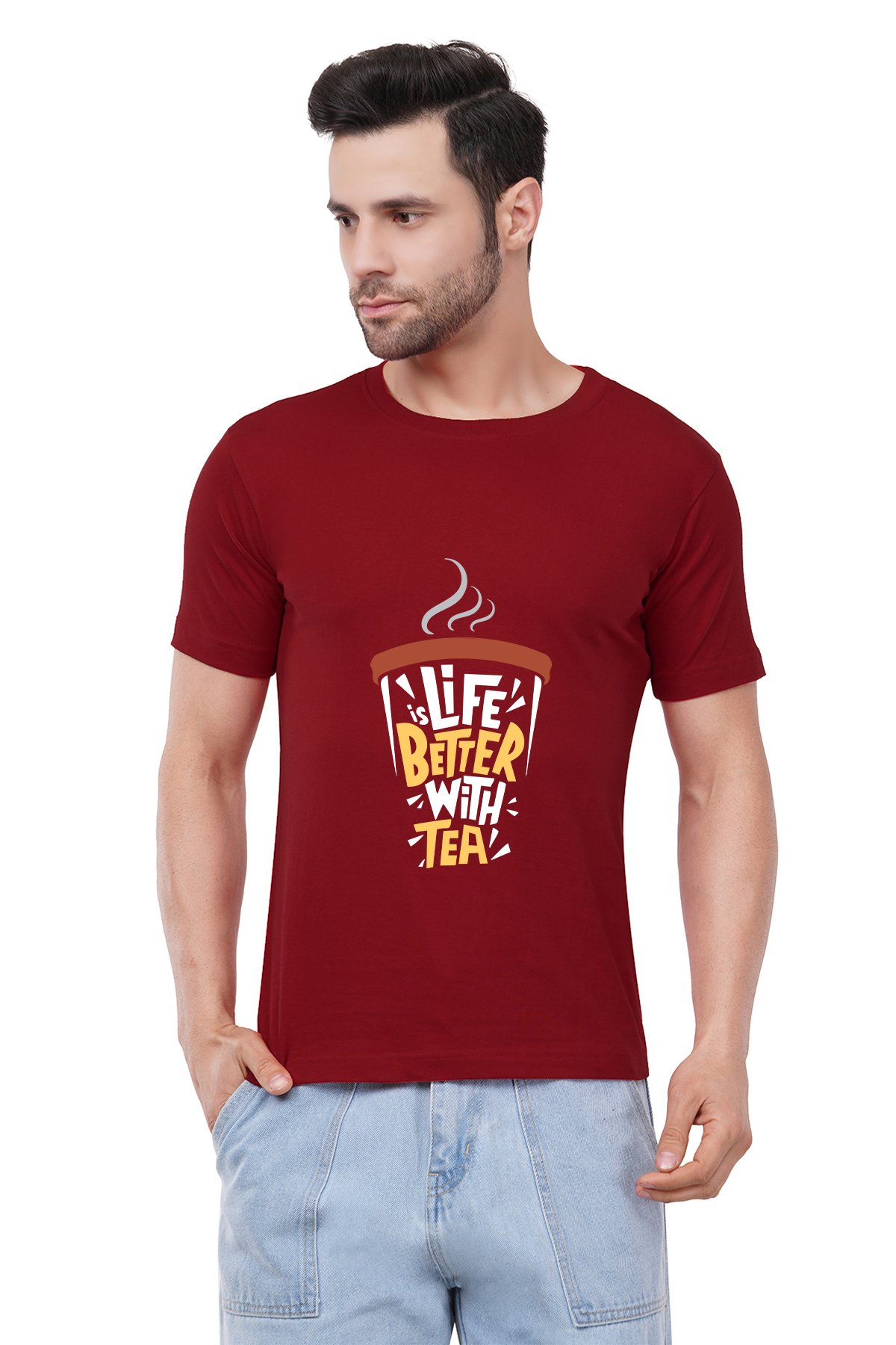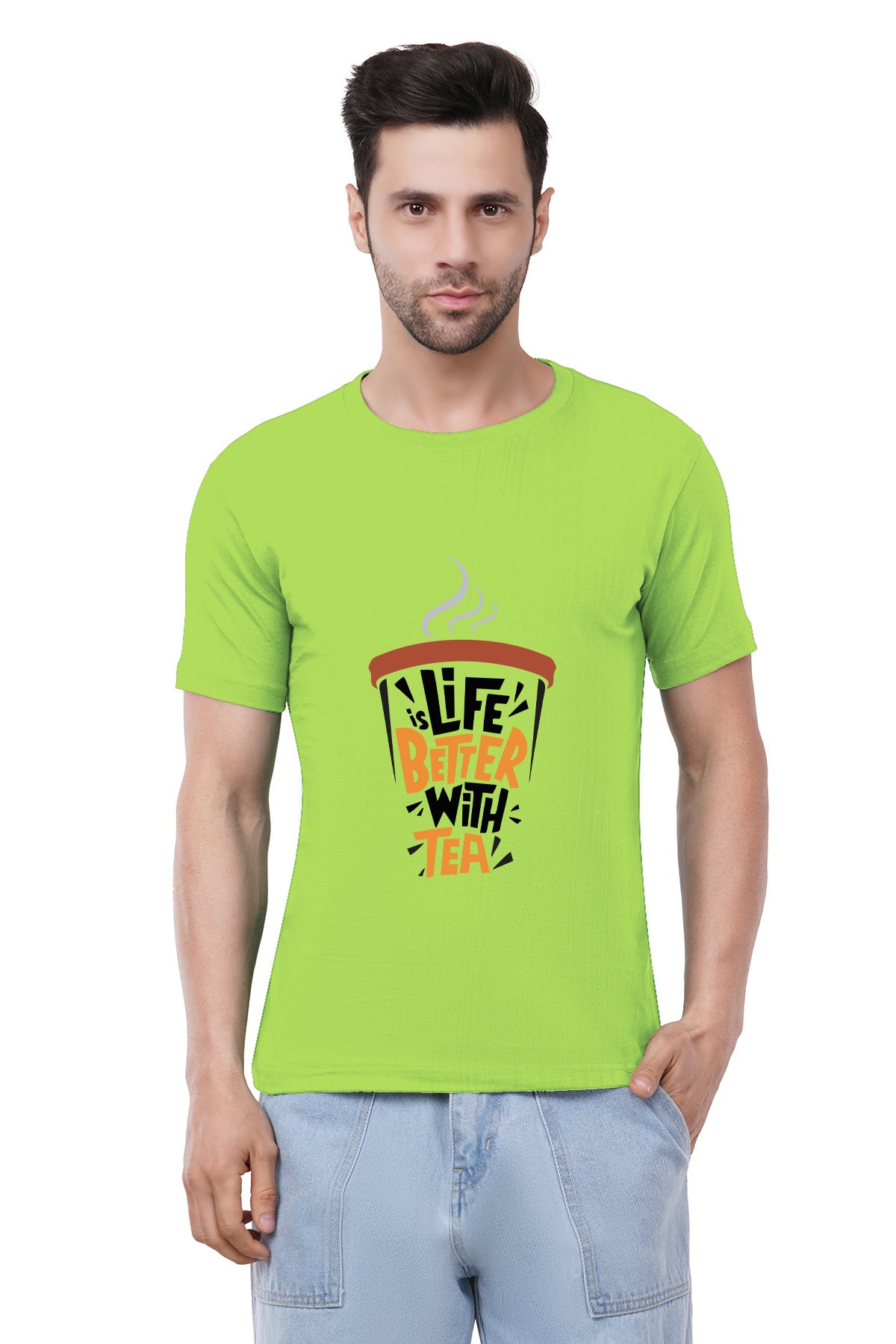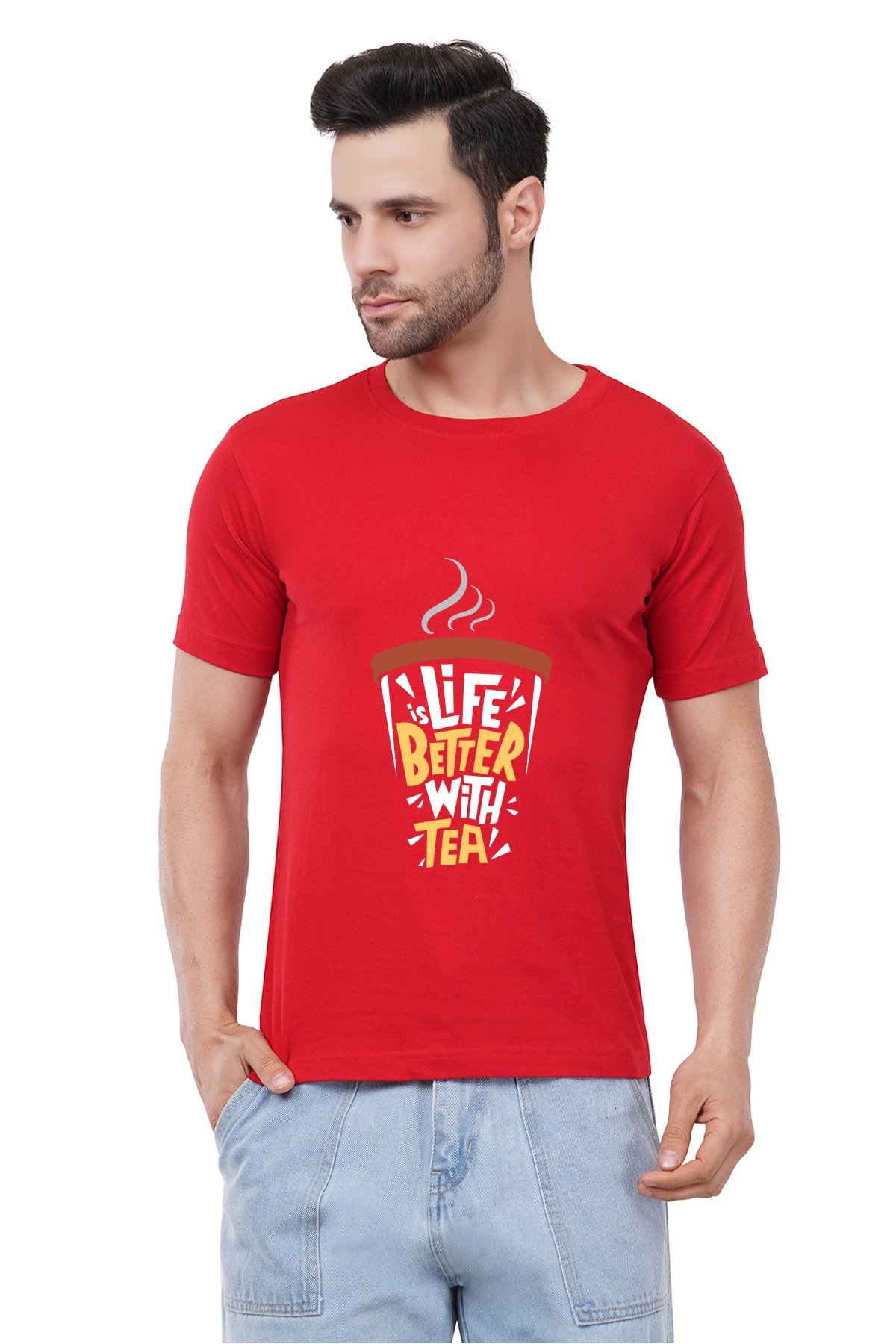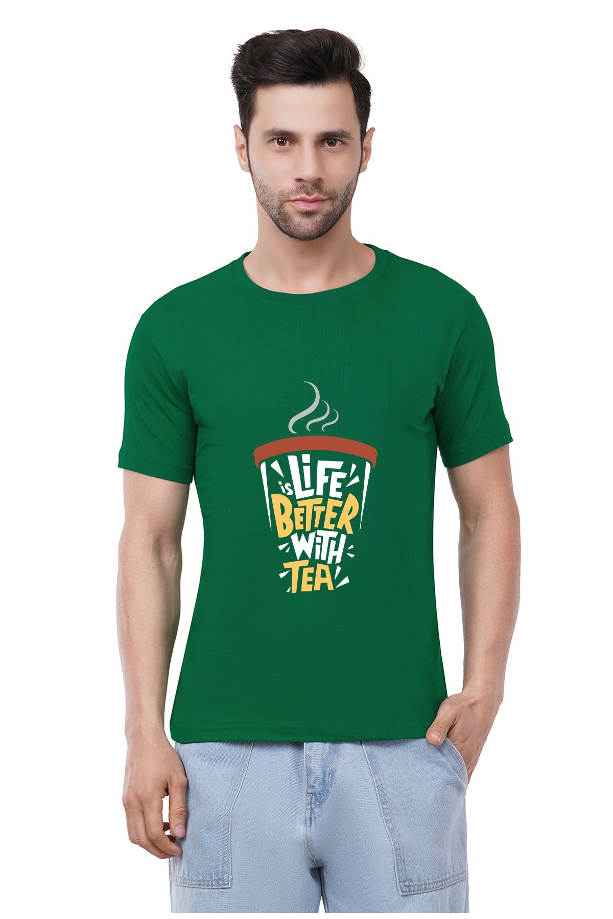 Caseria Men's Cotton Graphic Printed Half Sleeve T-Shirt - Life Better With Tea