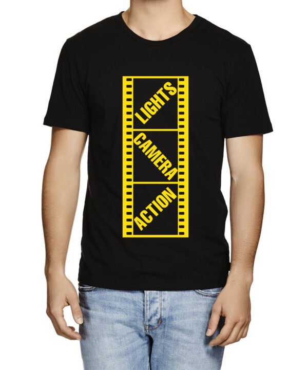 Caseria Men's Cotton Graphic Printed Half Sleeve T-Shirt - Lights Camera Action Reel