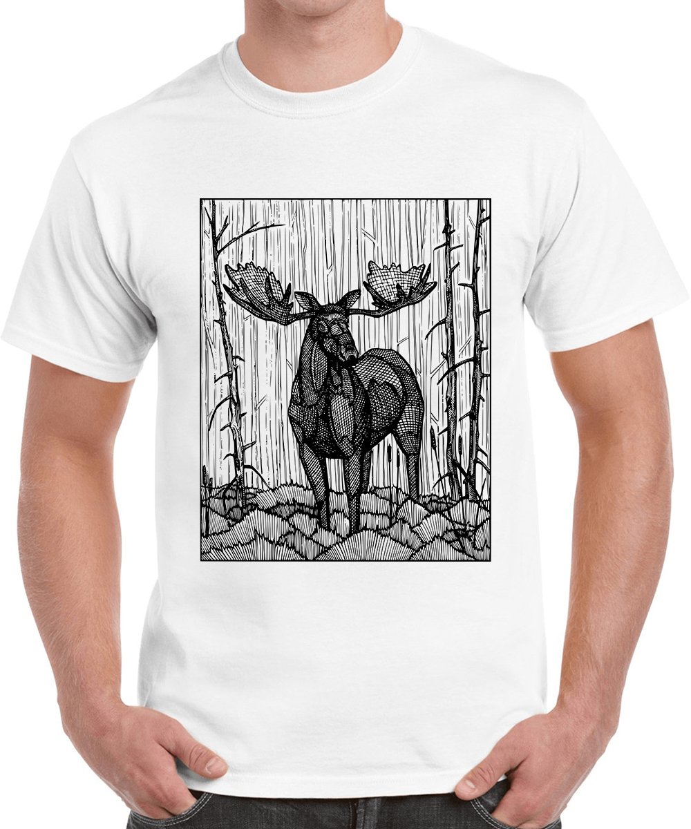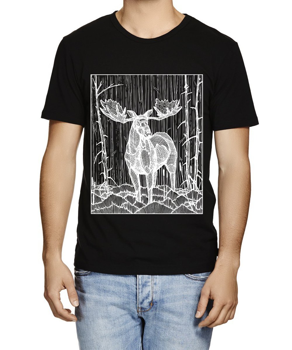 Caseria Men's Cotton Graphic Printed Half Sleeve T-Shirt - Line Deer