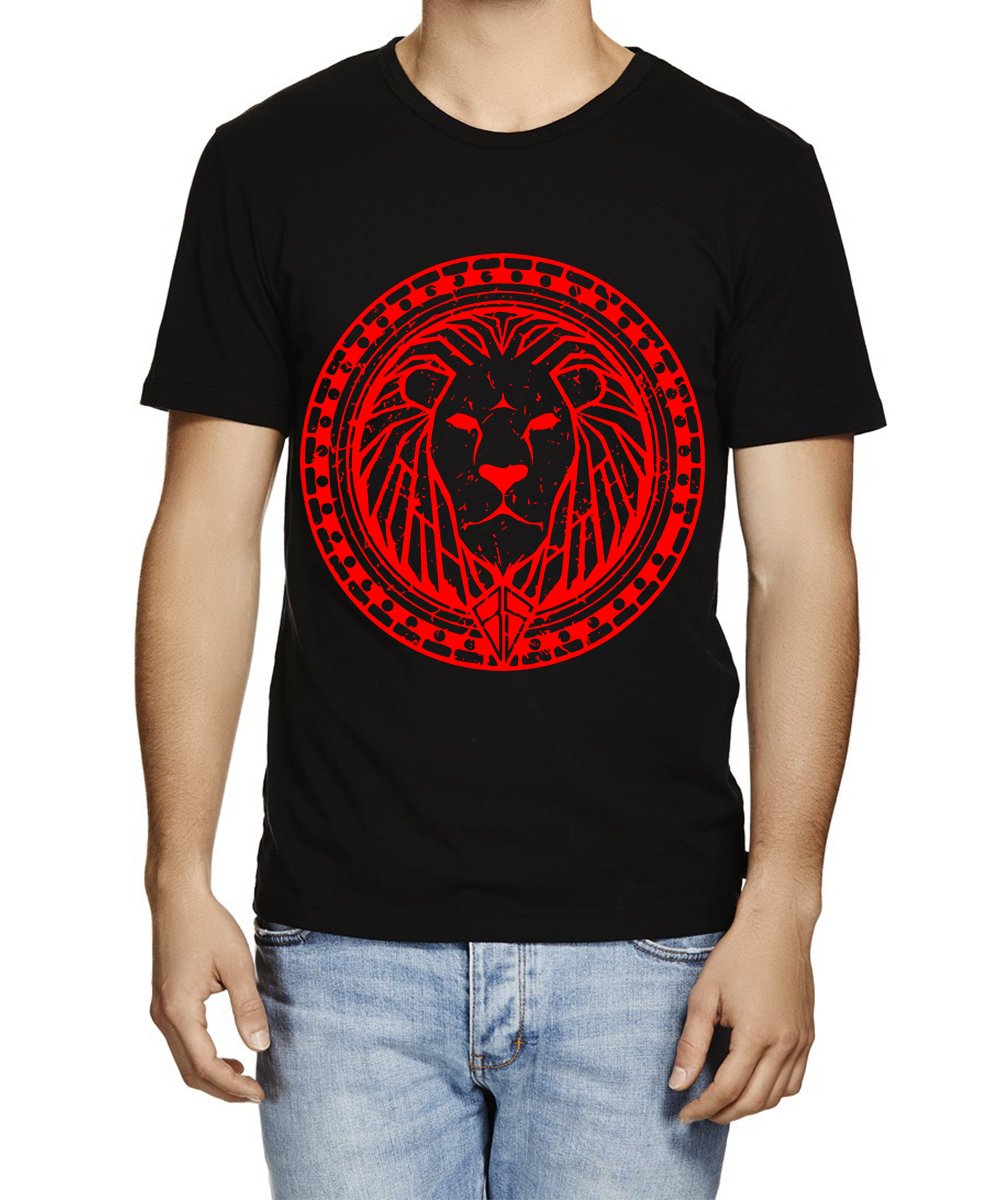 Caseria Men's Cotton Graphic Printed Half Sleeve T-Shirt - Lion Circle