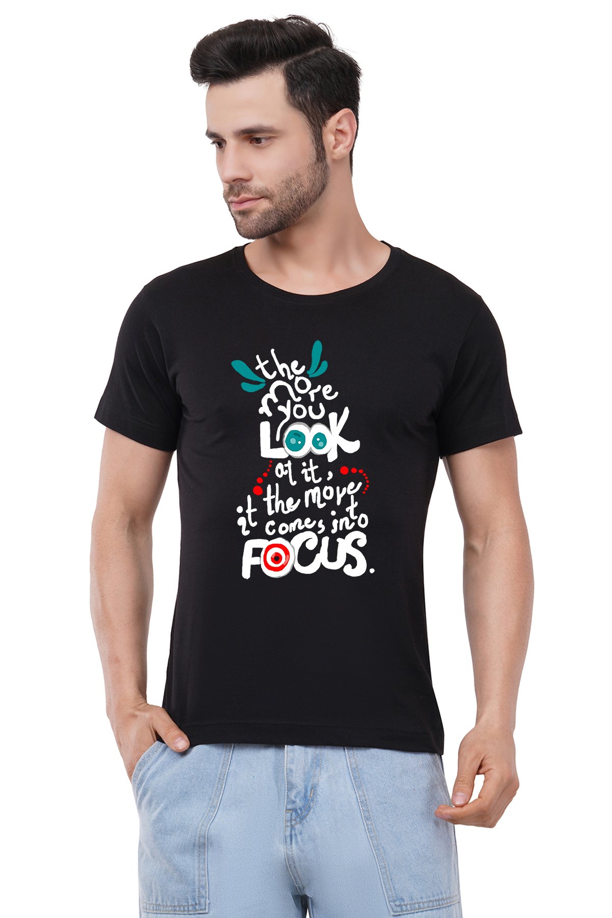 Caseria Men's Cotton Graphic Printed Half Sleeve T-Shirt - Look Focus
