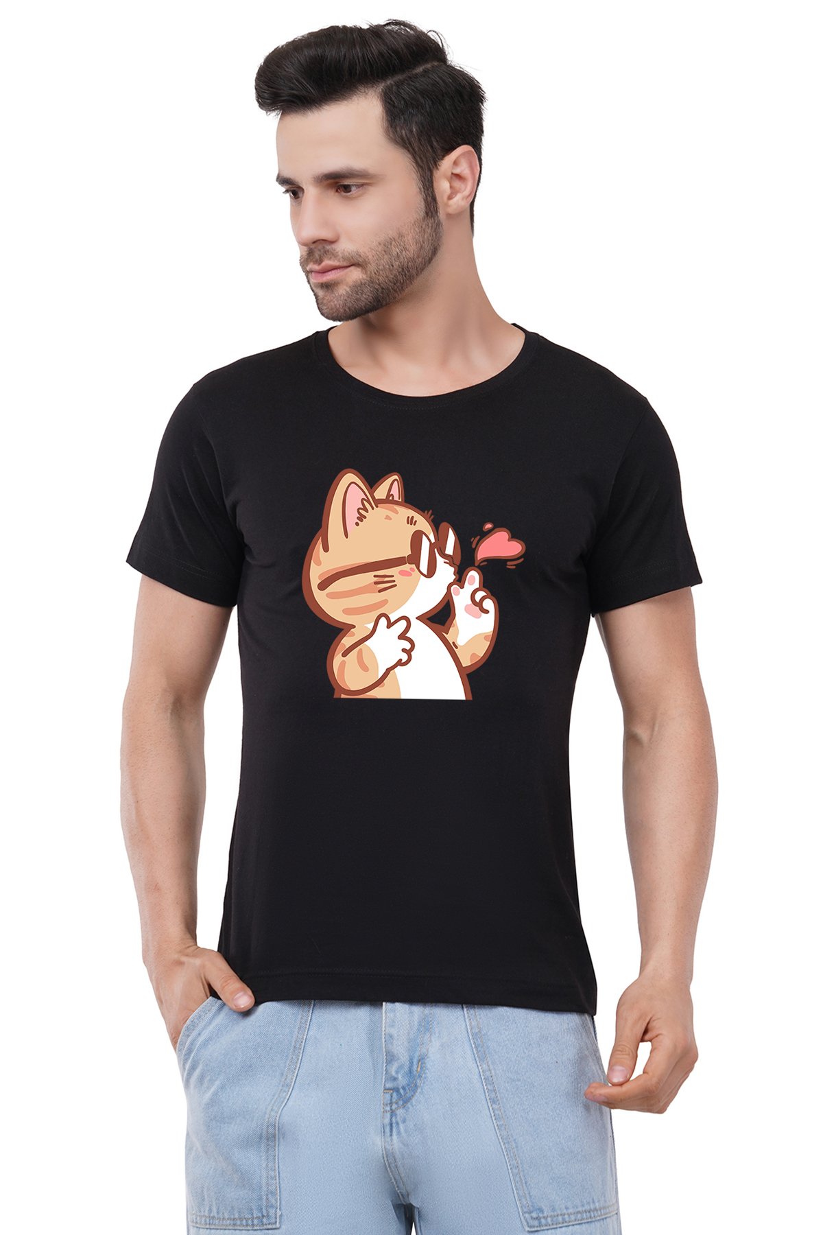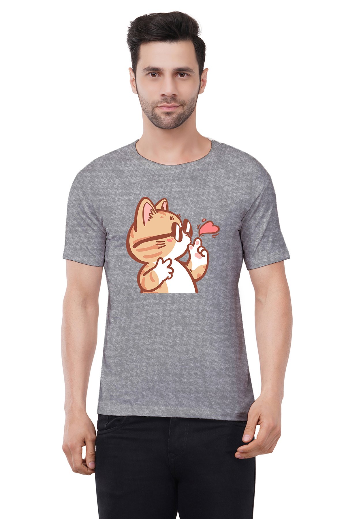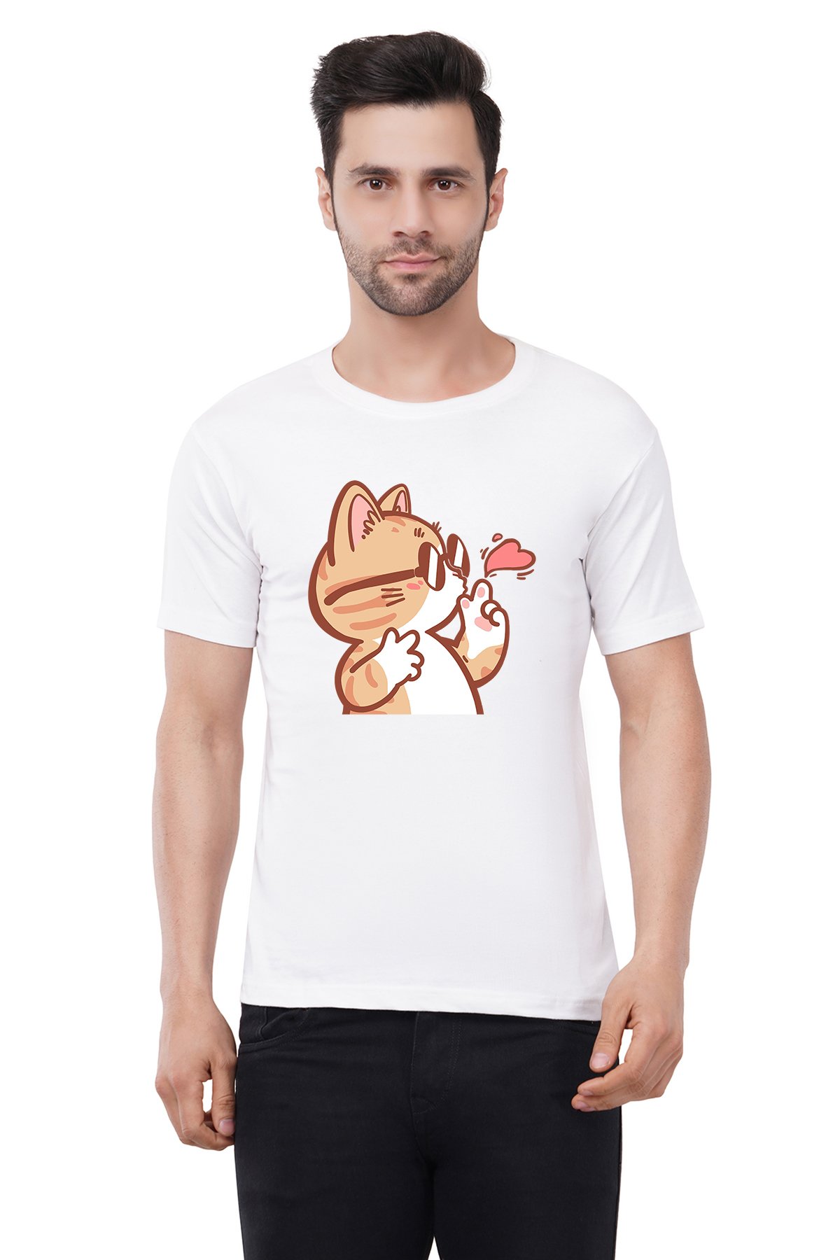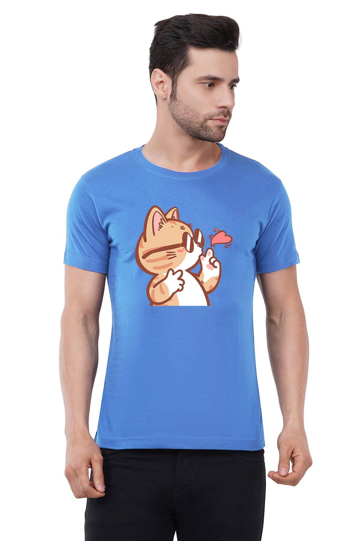 Caseria Men's Cotton Graphic Printed Half Sleeve T-Shirt - Love Cat