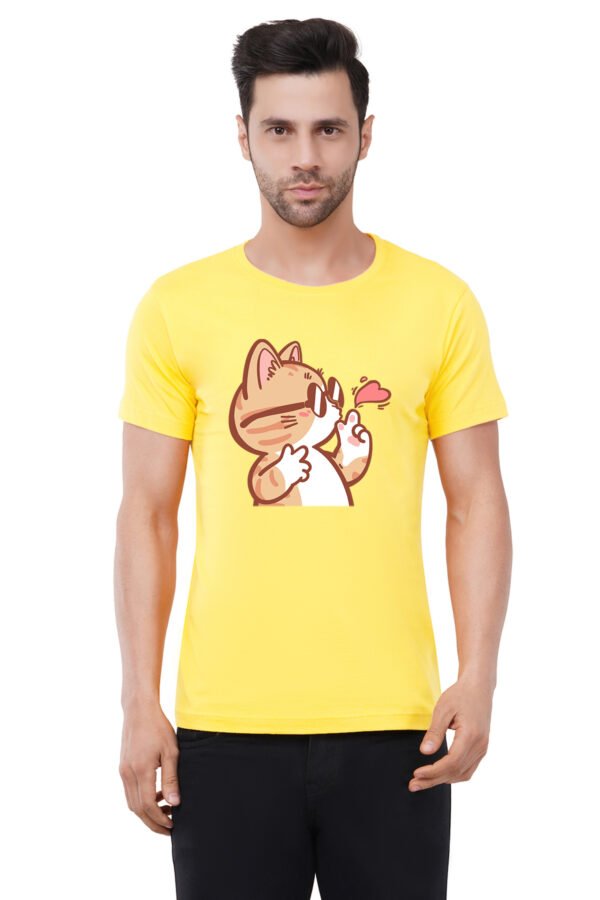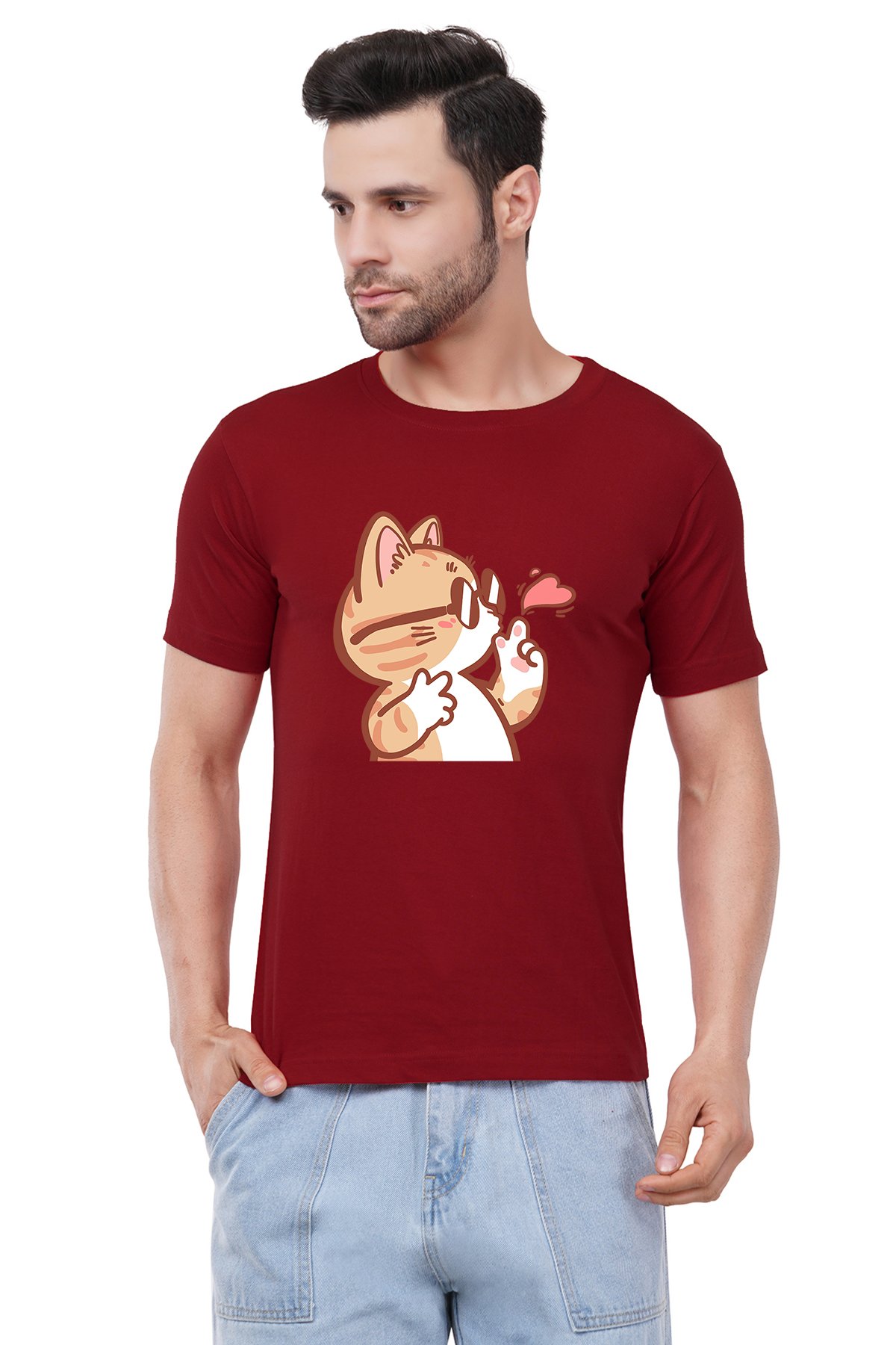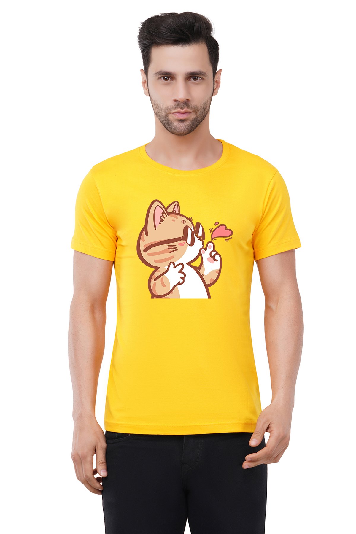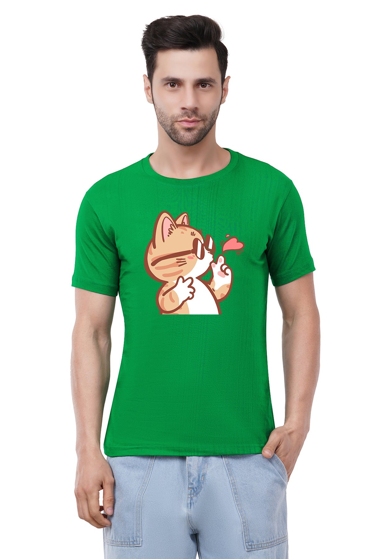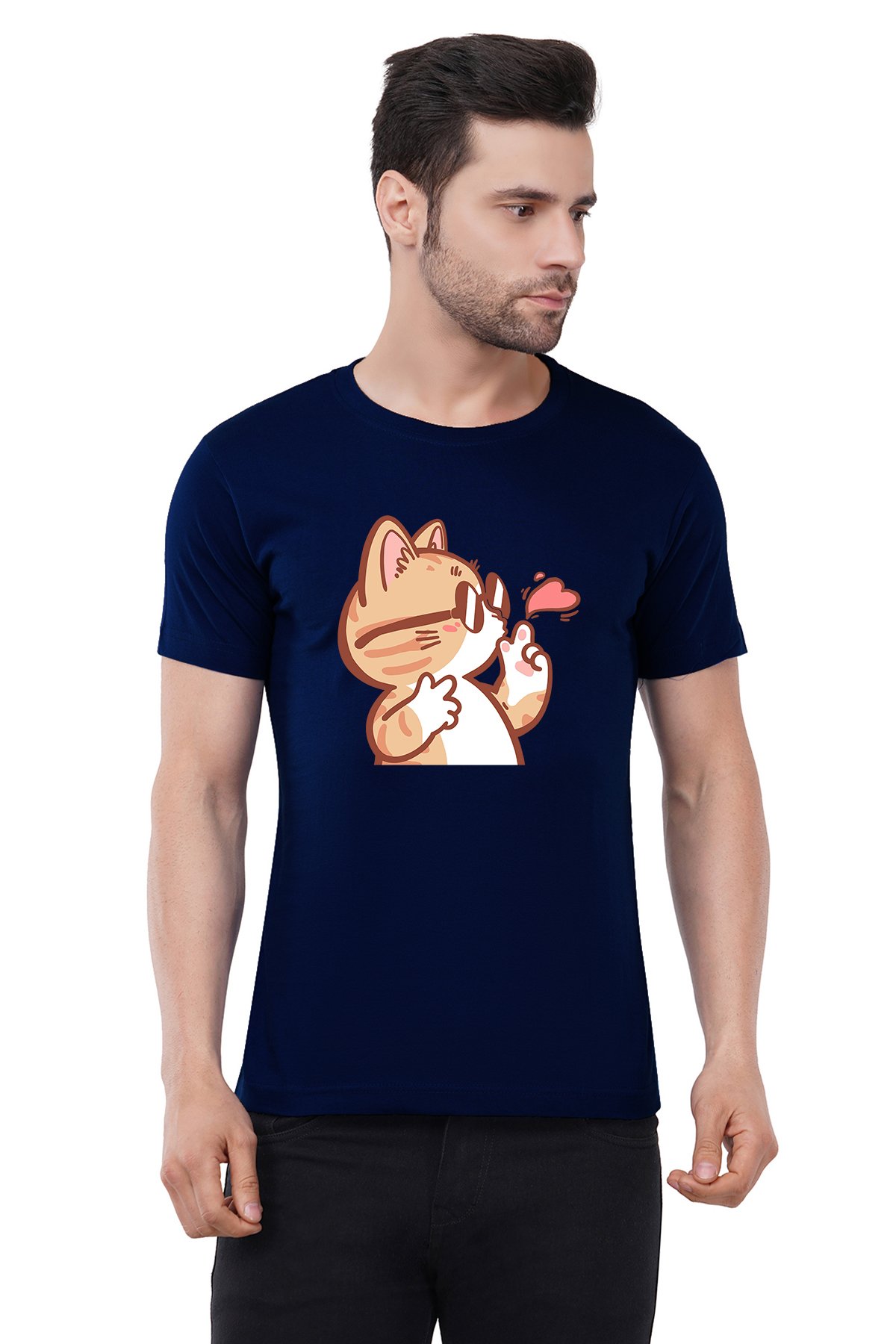 Caseria Men's Cotton Graphic Printed Half Sleeve T-Shirt - Love Cat