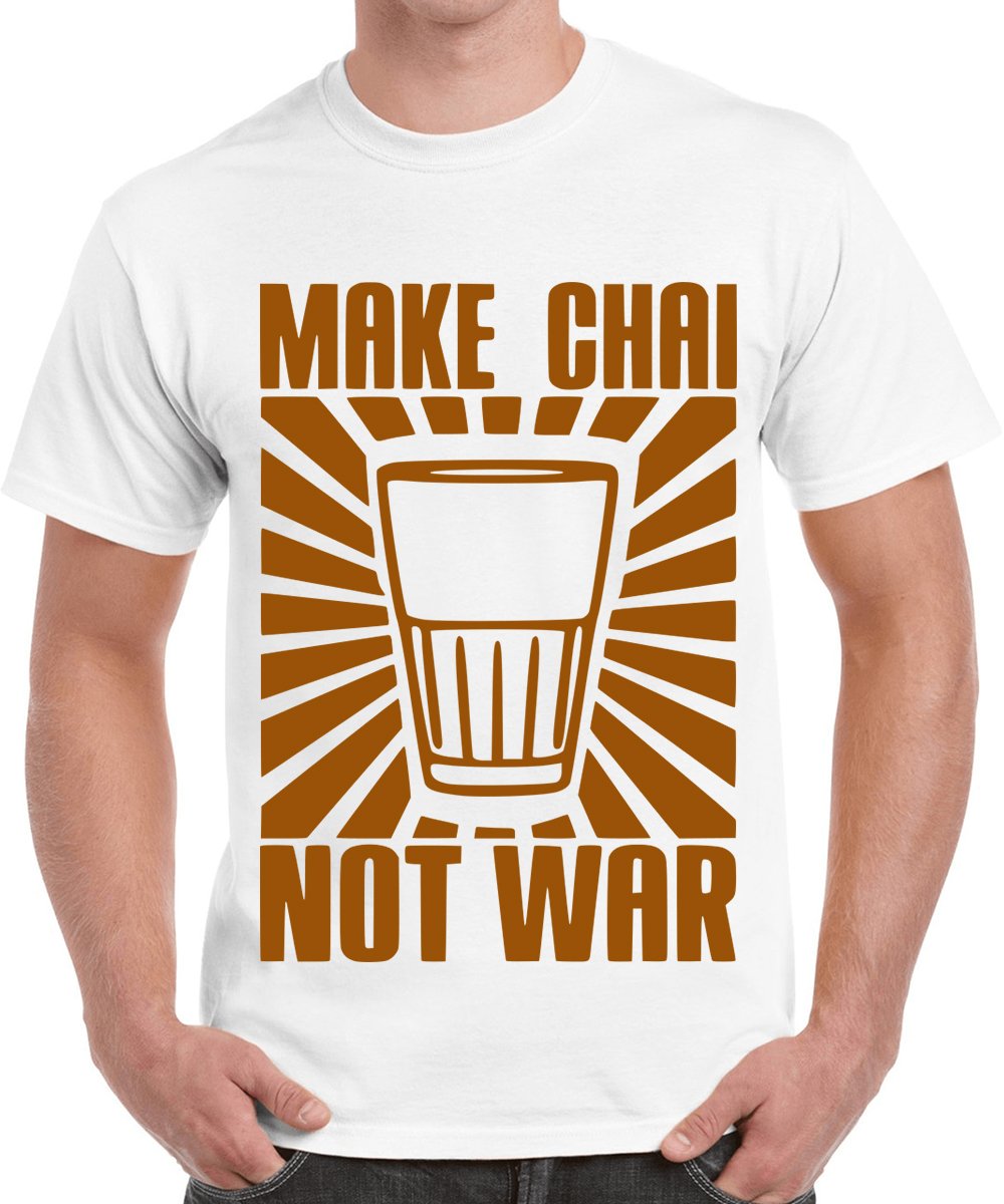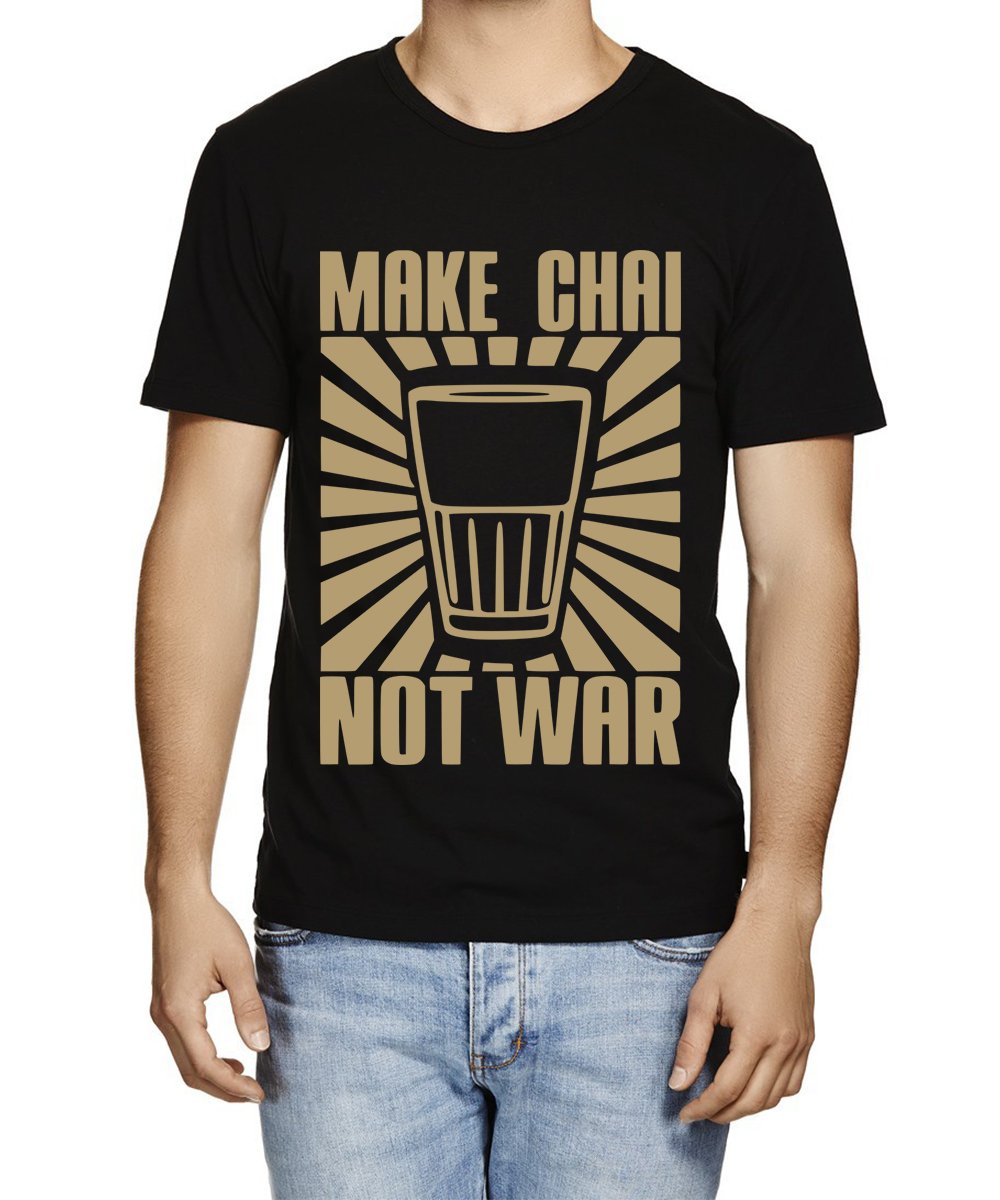 Caseria Men's Cotton Graphic Printed Half Sleeve T-Shirt - Make Chai Not Wars