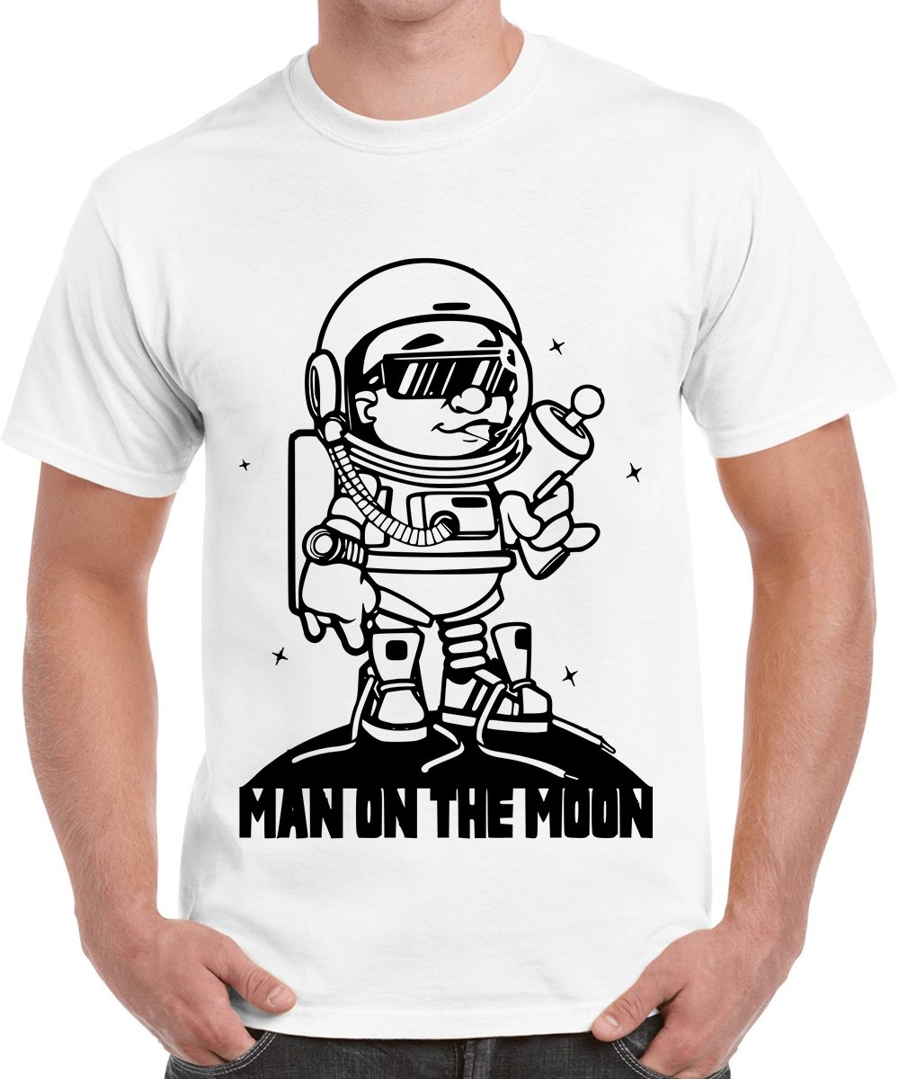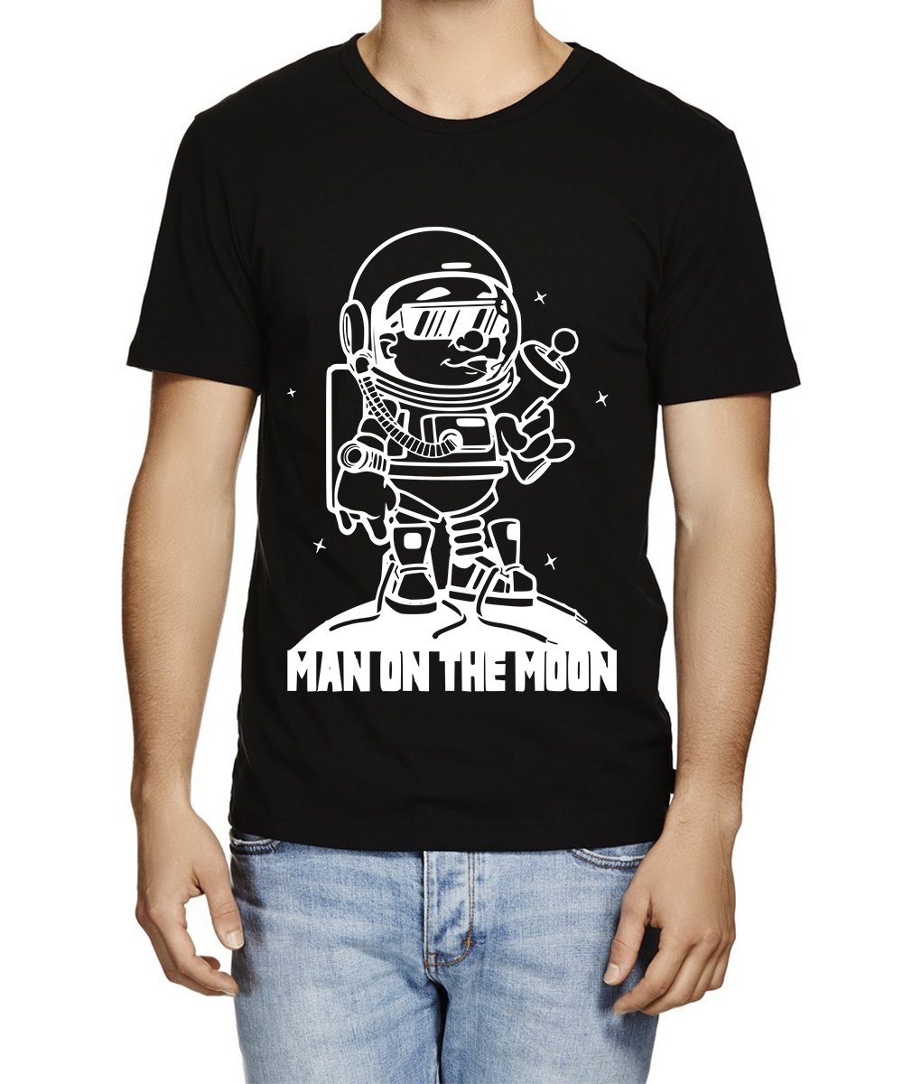 Caseria Men's Cotton Graphic Printed Half Sleeve T-Shirt - Man On The Moon