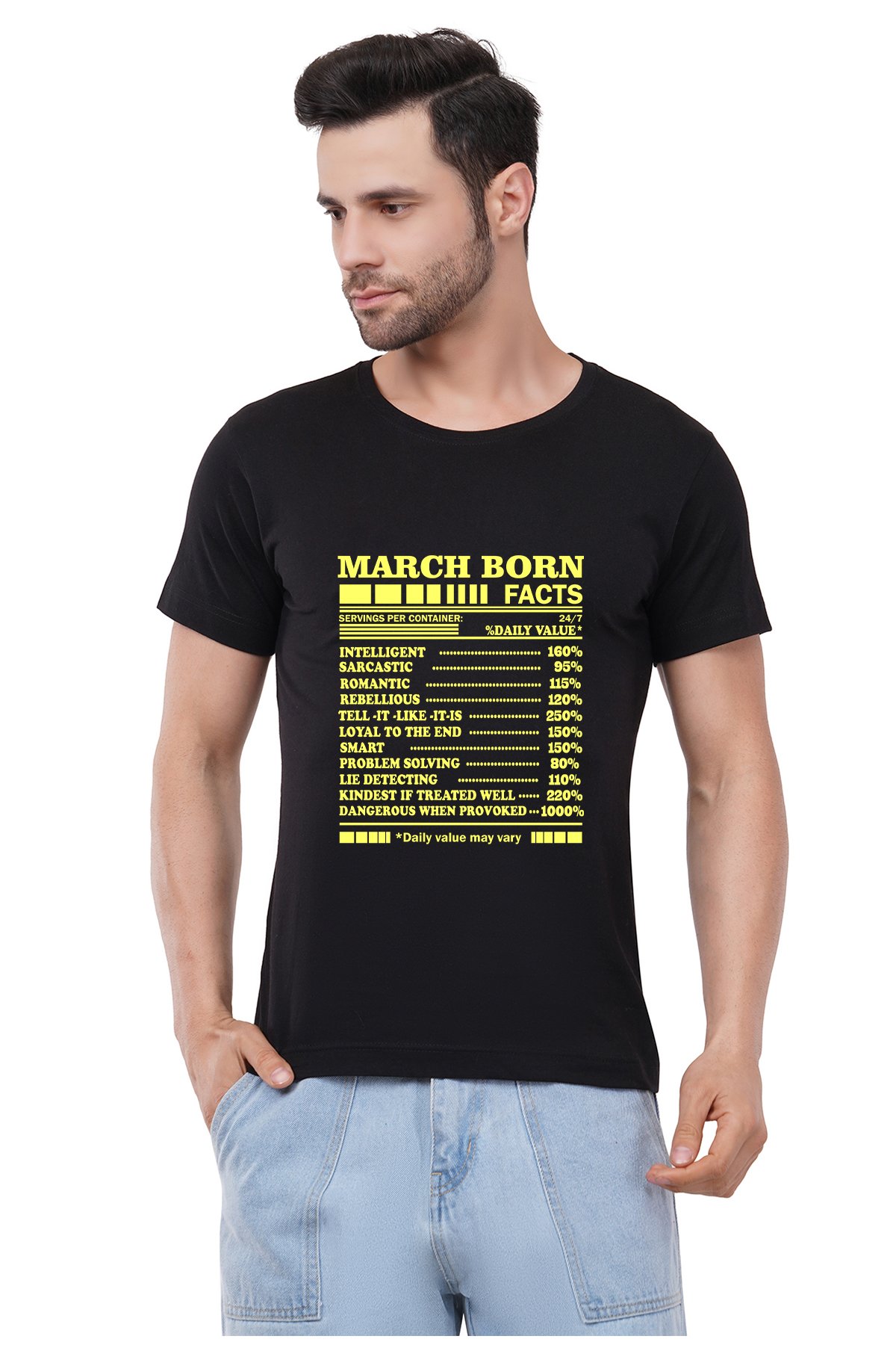 Caseria Men's Cotton Graphic Printed Half Sleeve T-Shirt - March Born Facts
