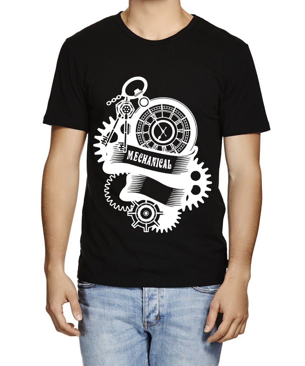 Caseria Men's Cotton Graphic Printed Half Sleeve T-Shirt - Mechanical