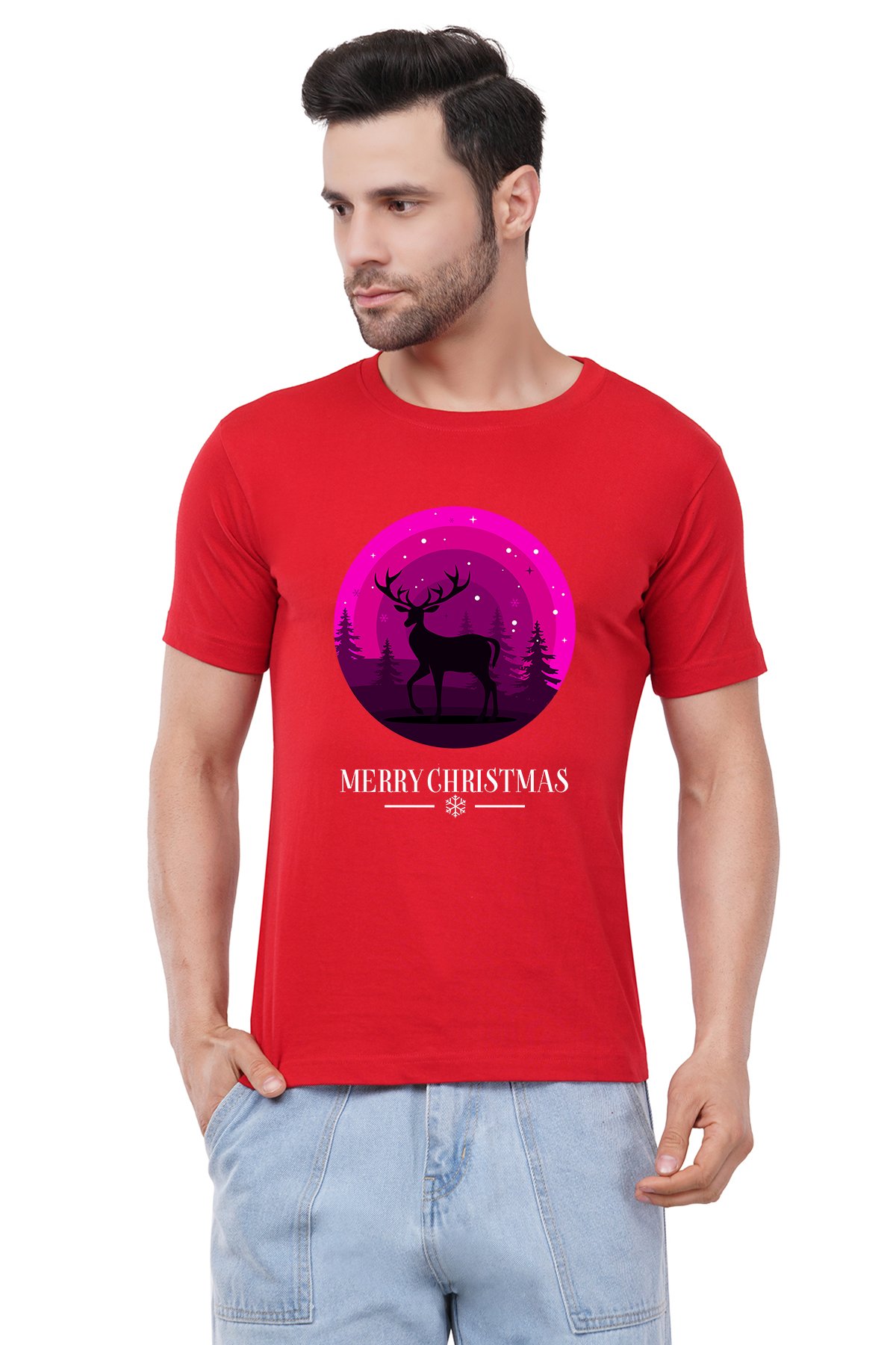 Caseria Men's Cotton Graphic Printed Half Sleeve T-Shirt - Merry Christmas