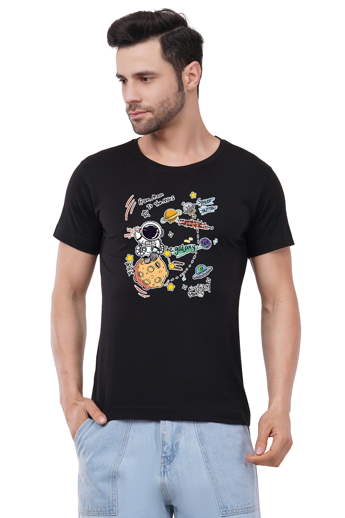 Caseria Men's Cotton Graphic Printed Half Sleeve T-Shirt - Moon Mars
