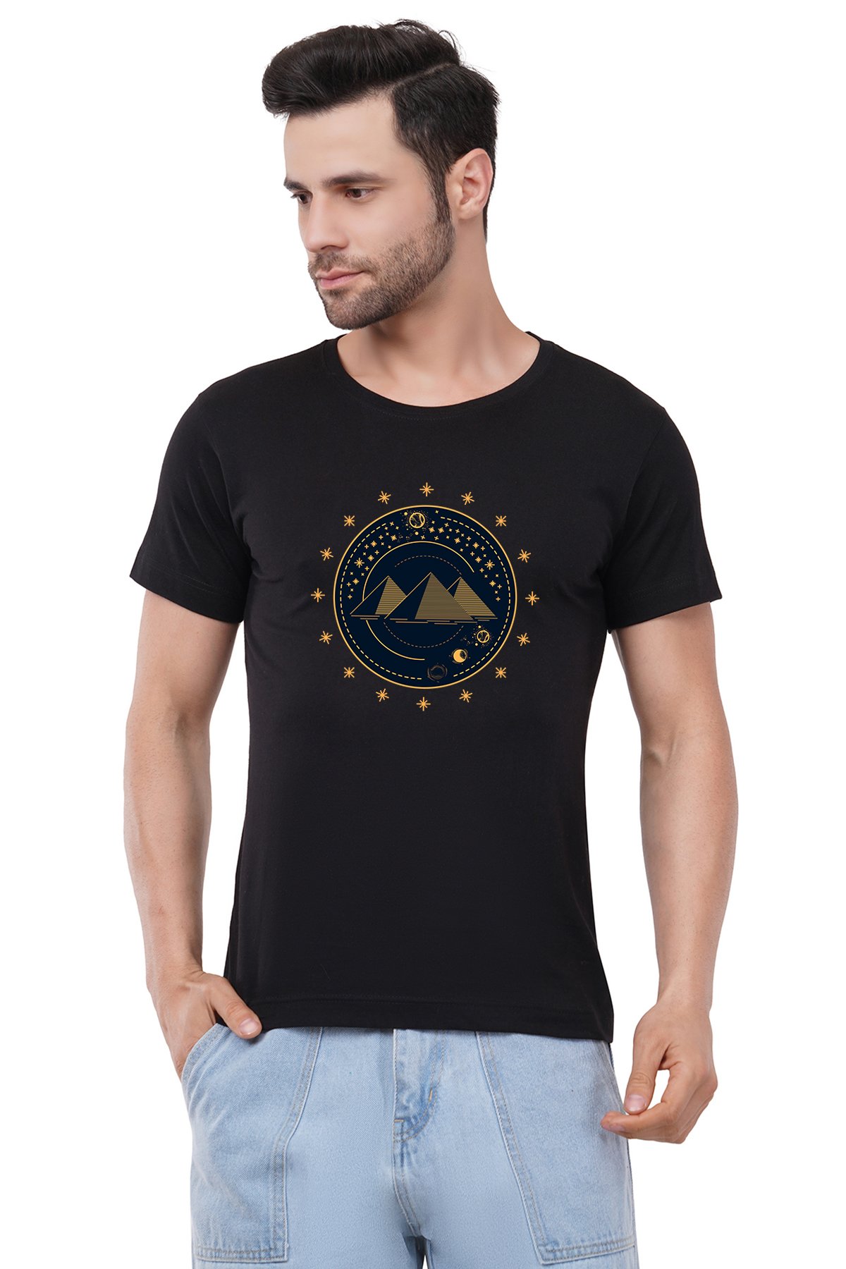 Caseria Men's Cotton Graphic Printed Half Sleeve T-Shirt - Moon Star Art