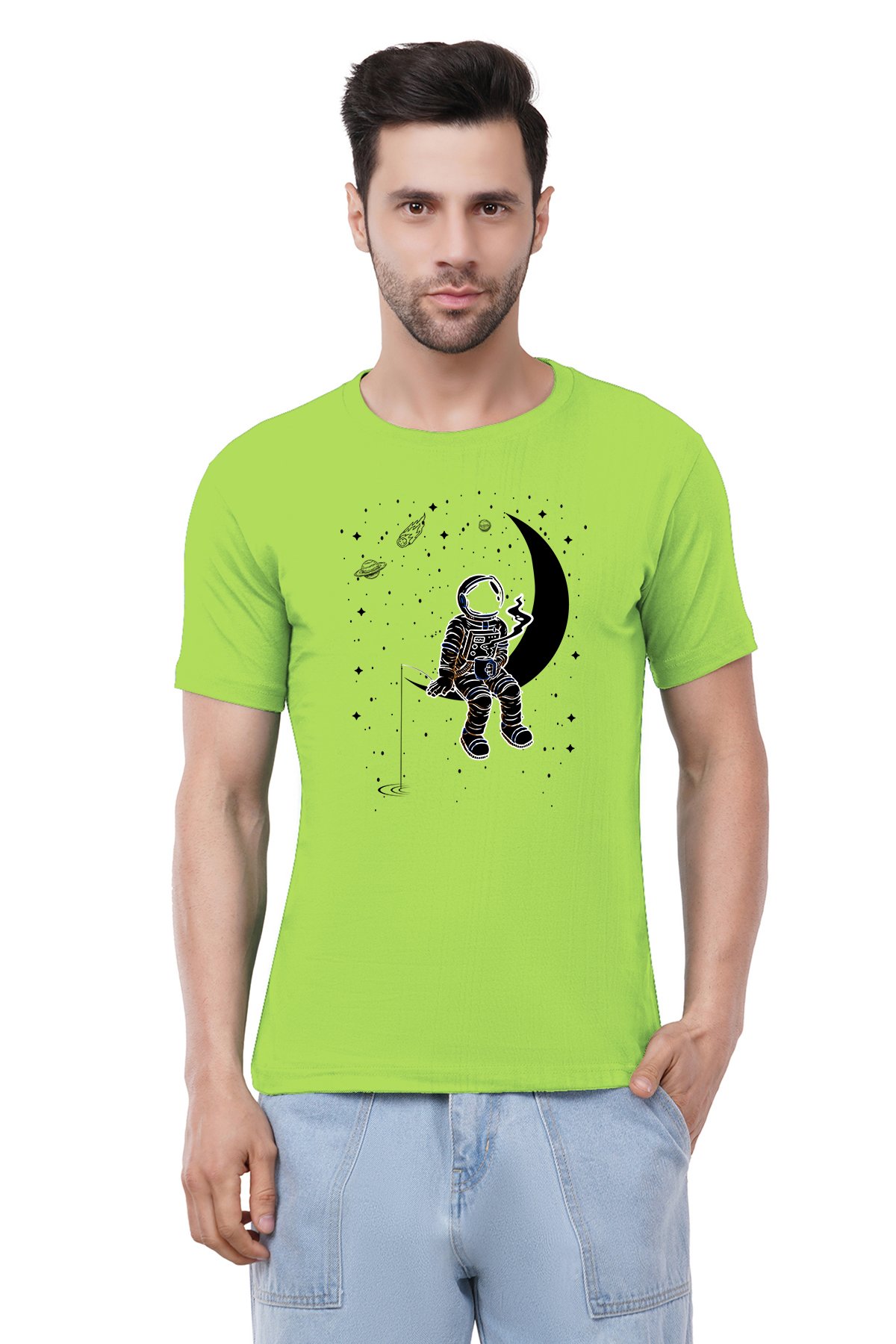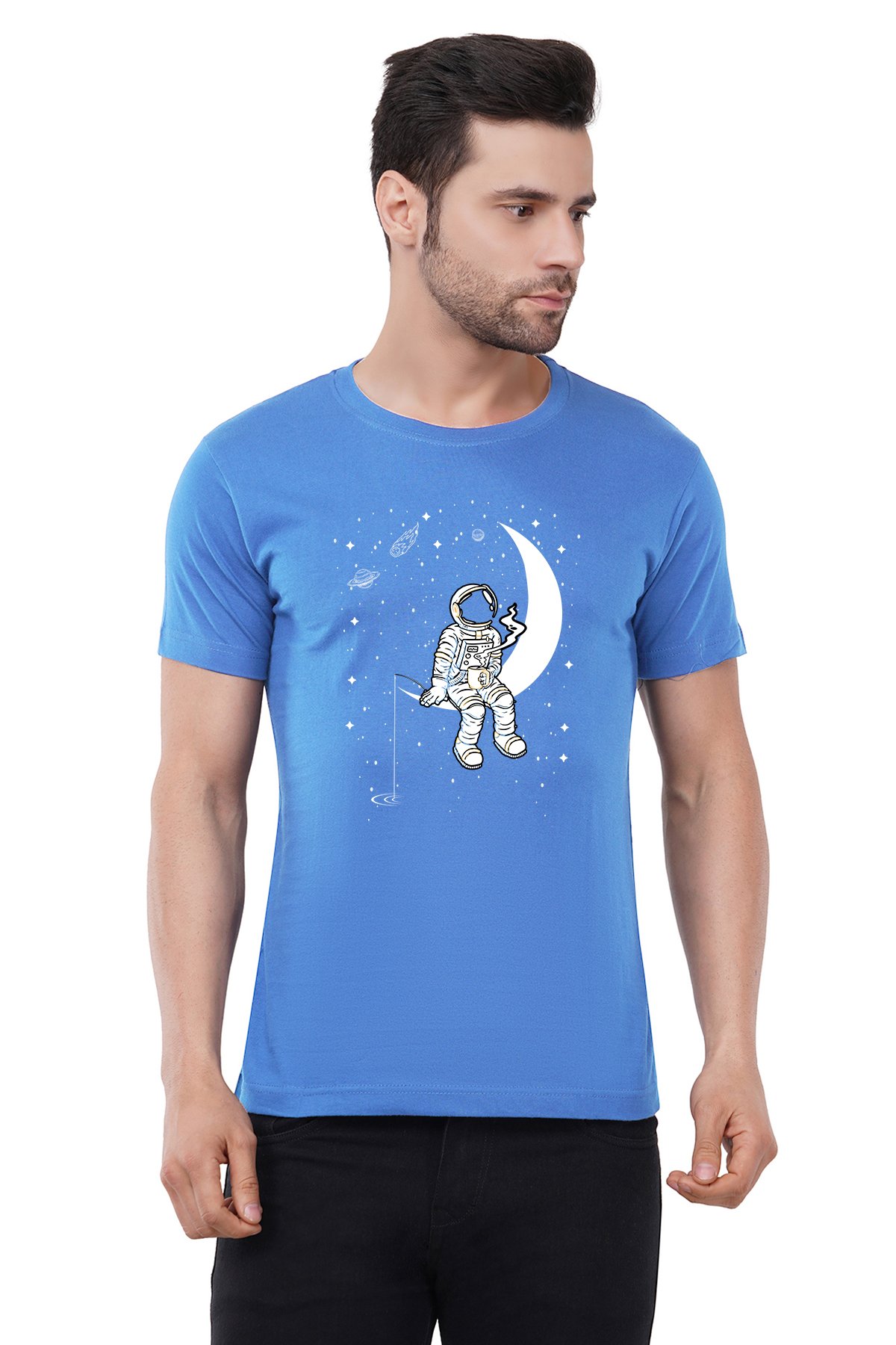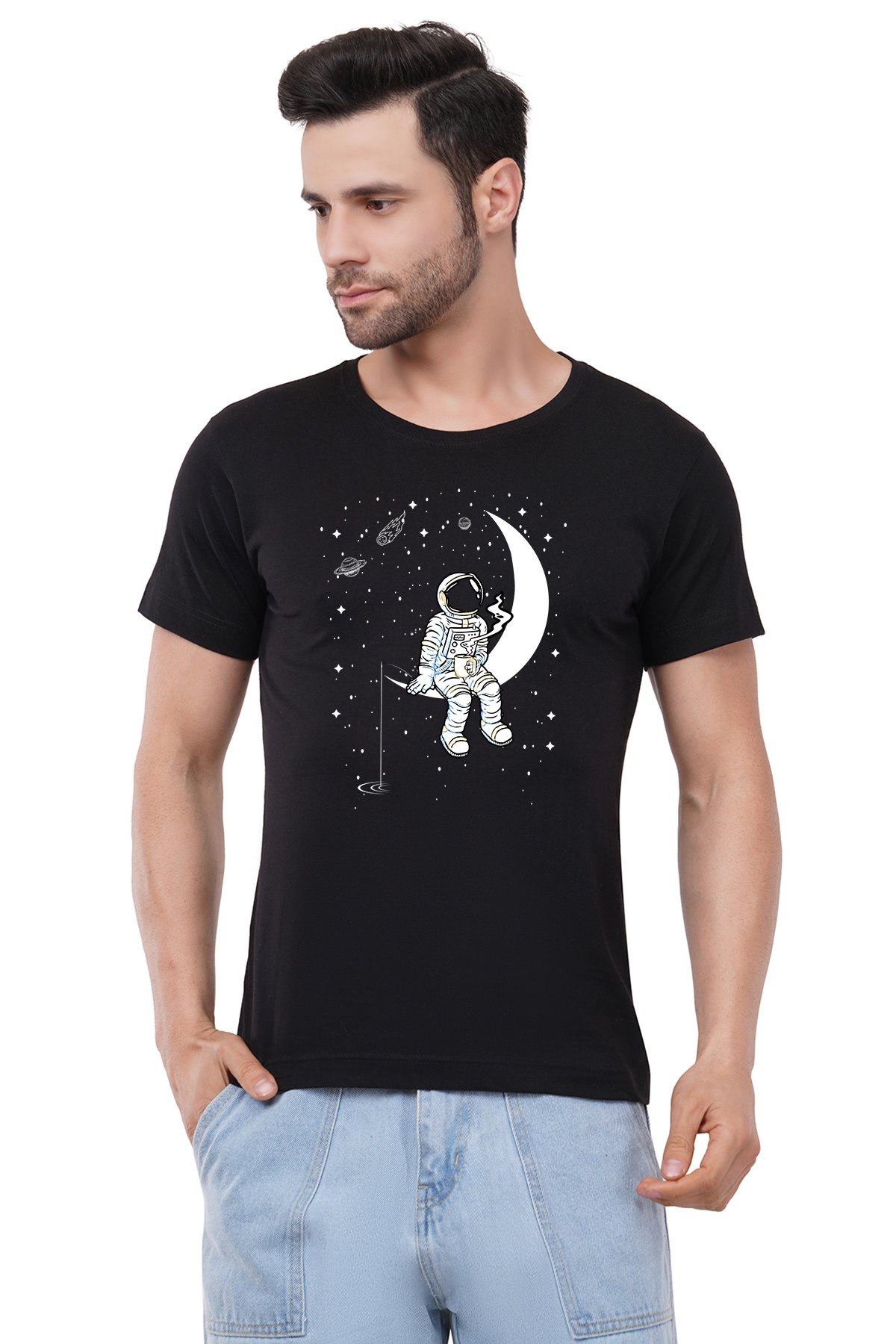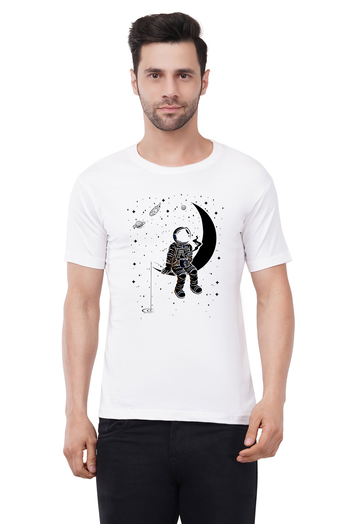 Caseria Men's Cotton Graphic Printed Half Sleeve T-Shirt - Moon Staring