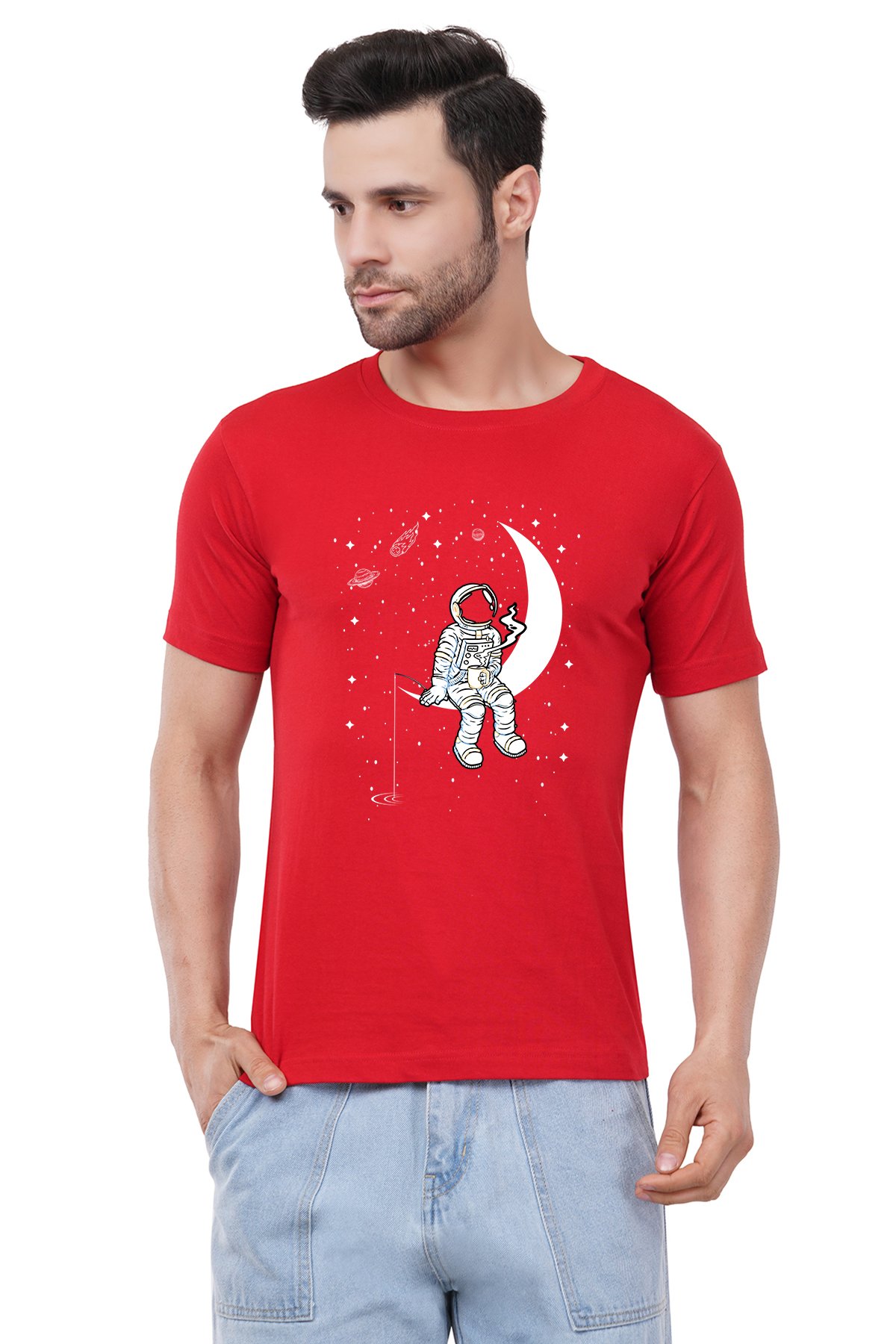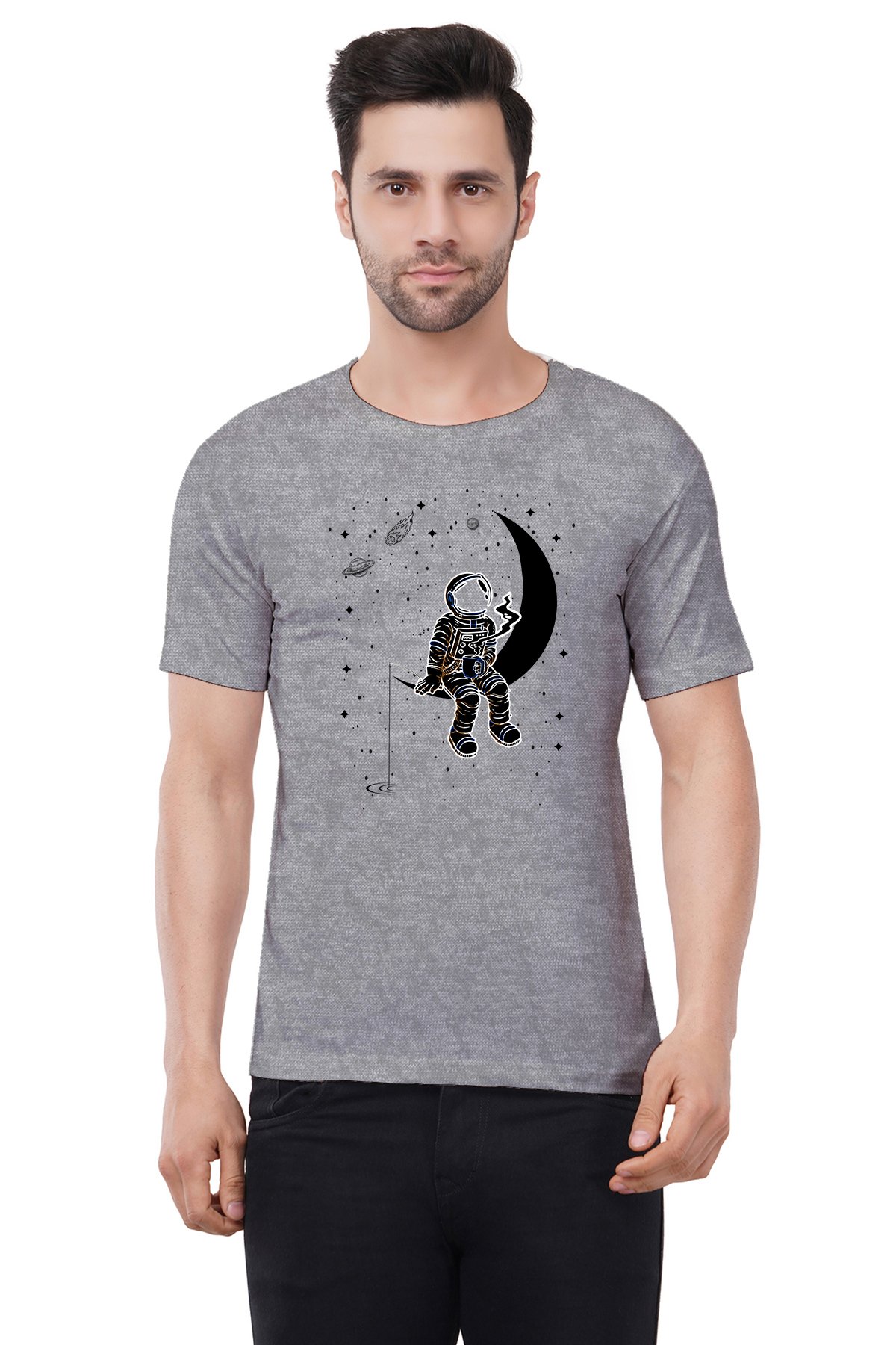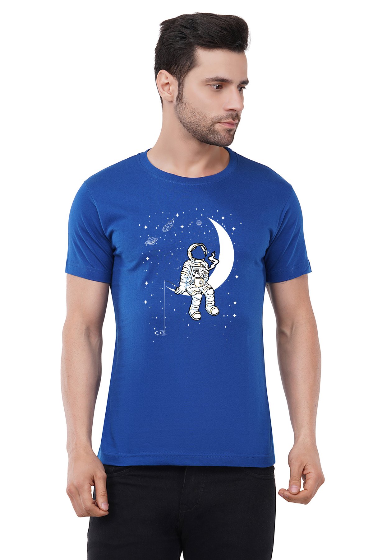 Caseria Men's Cotton Graphic Printed Half Sleeve T-Shirt - Moon Staring