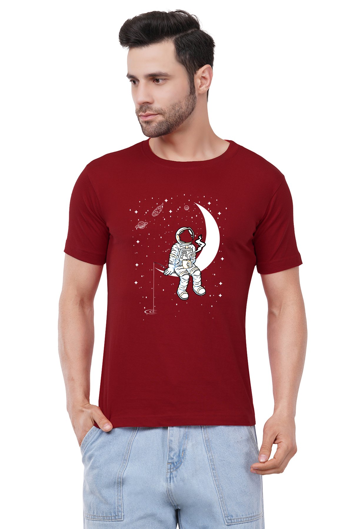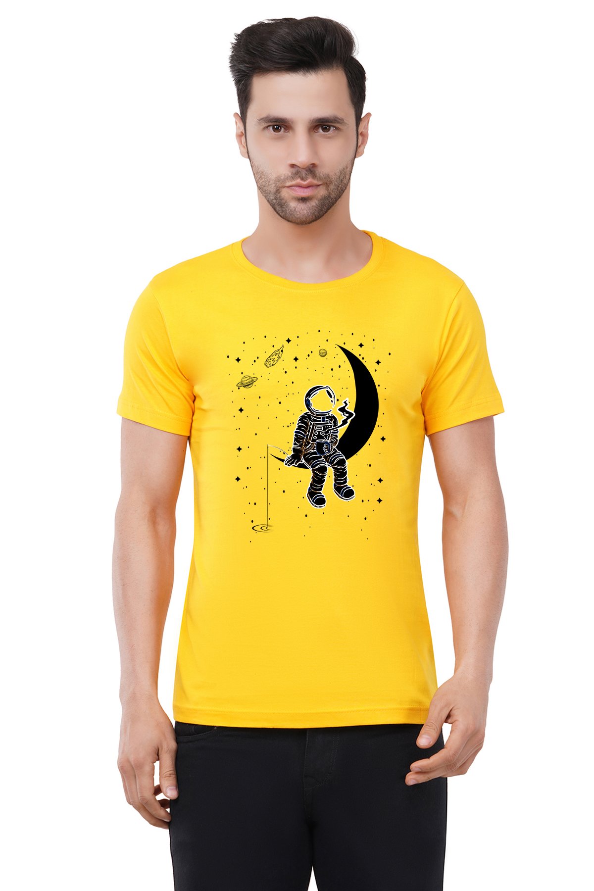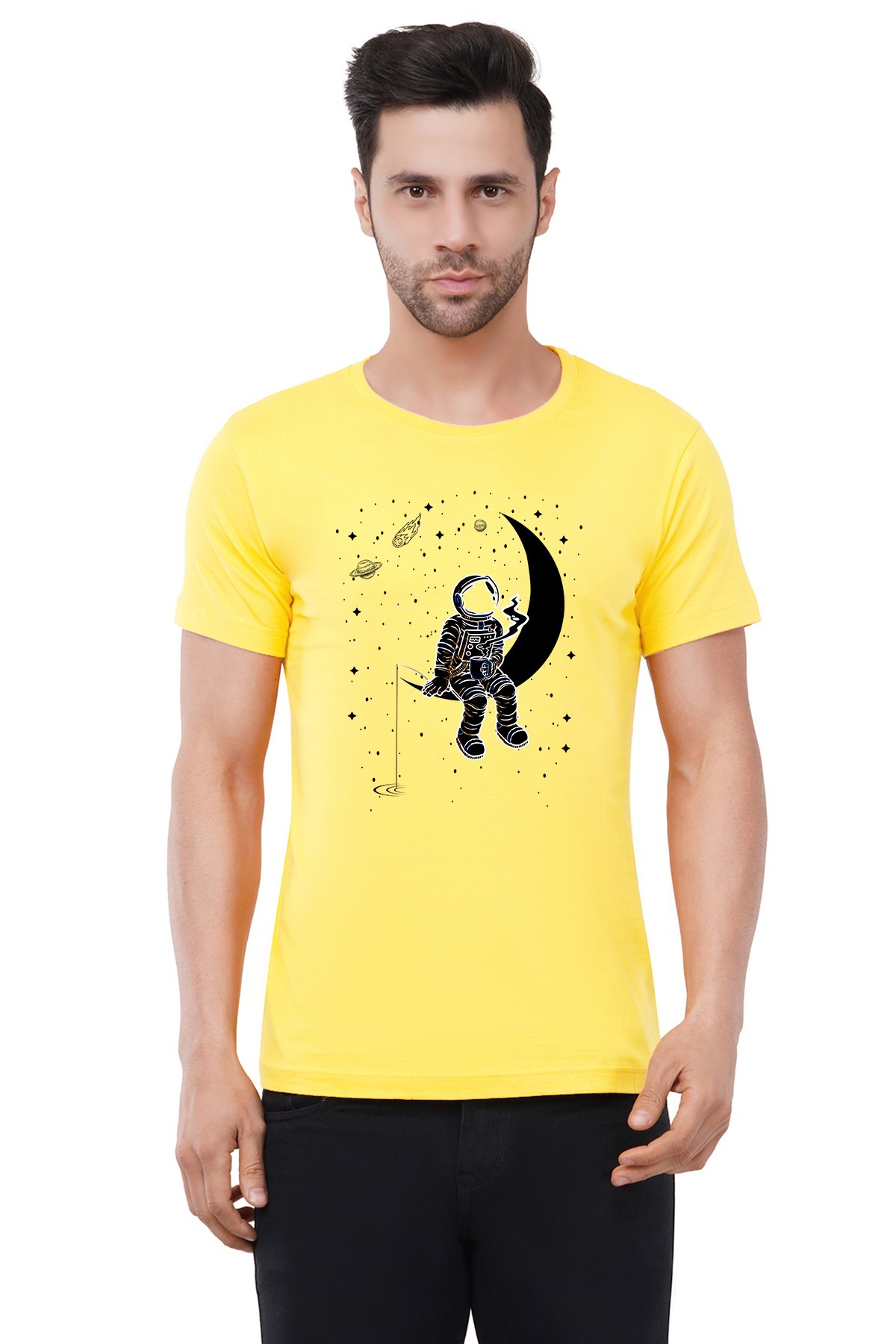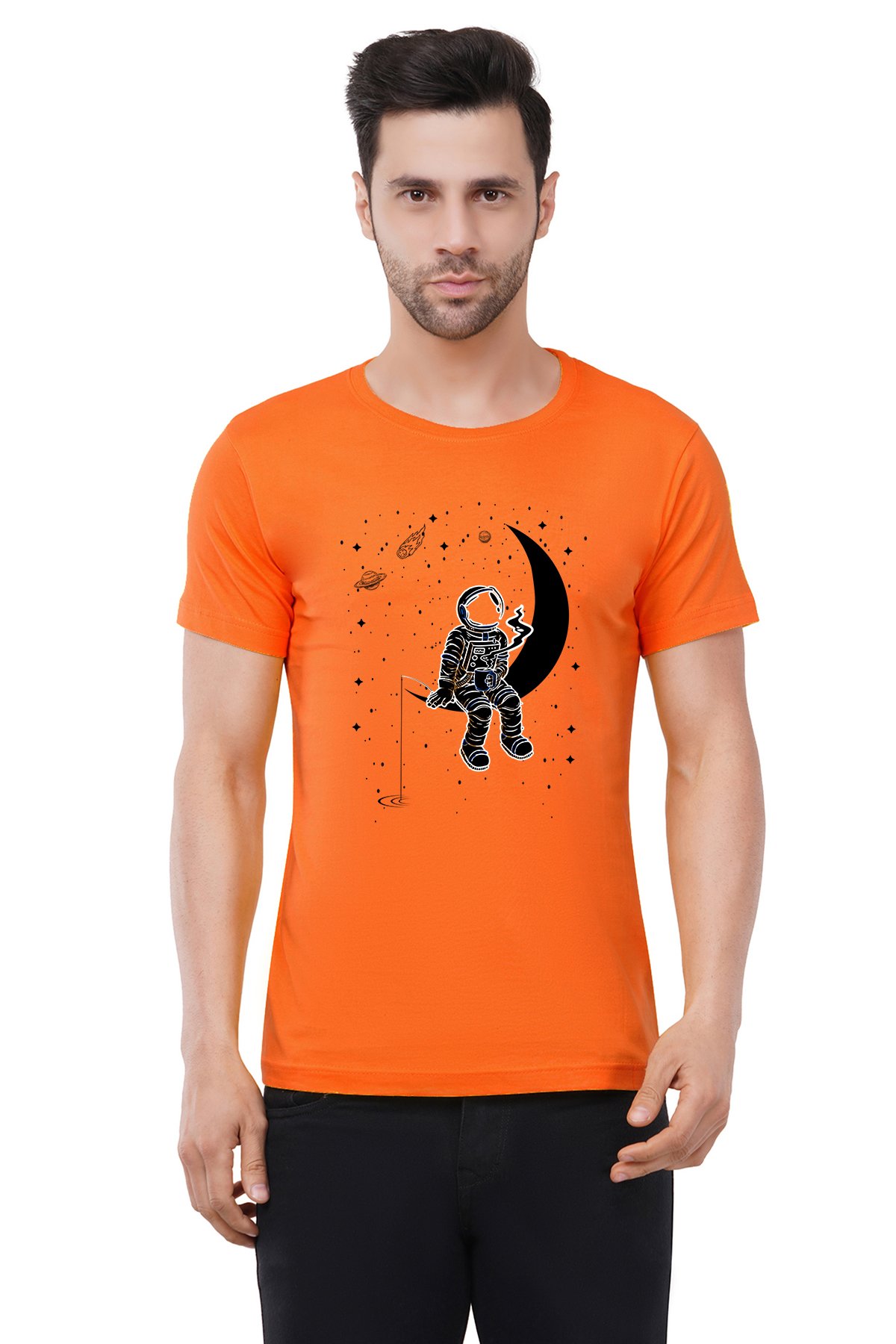 Caseria Men's Cotton Graphic Printed Half Sleeve T-Shirt - Moon Staring